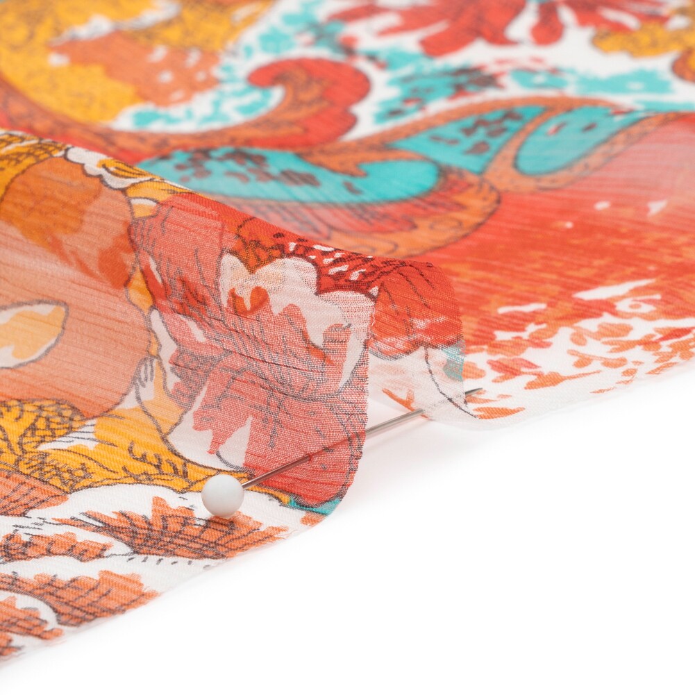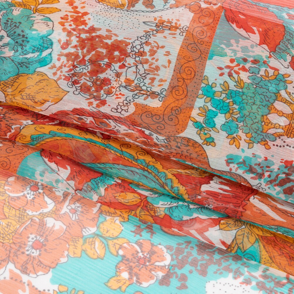 1 Yard Turquoise Peach and Orange Ornamental Gardens Crinkled Silk Chiffon Sheer Lightweight, 54 Inches Wide