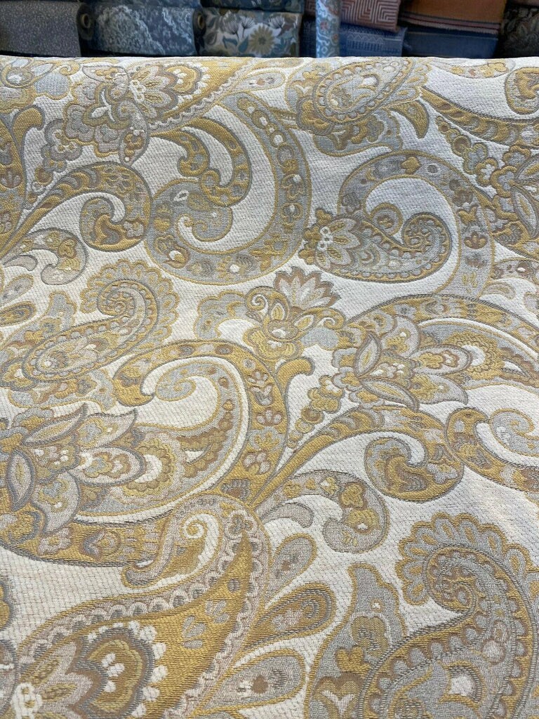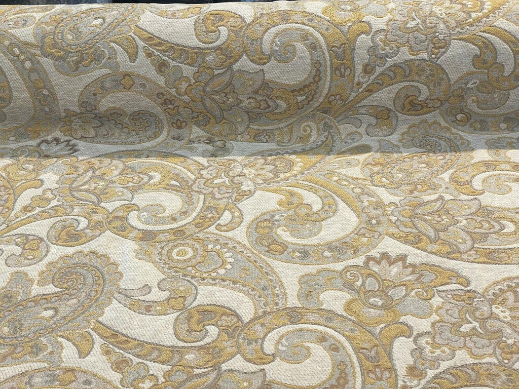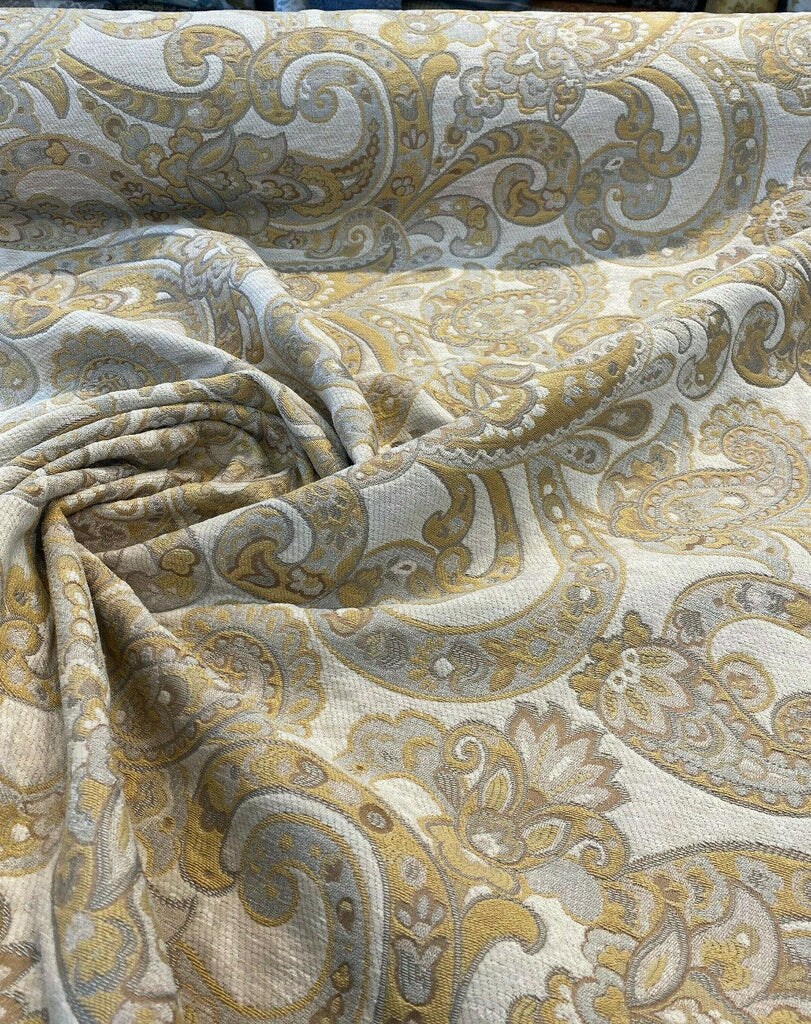 1 Yard Upholstery Chenille Fabric Barrow Porcelain Beige Paisley 69% Polyester 20% Cotton 11% Rayon
