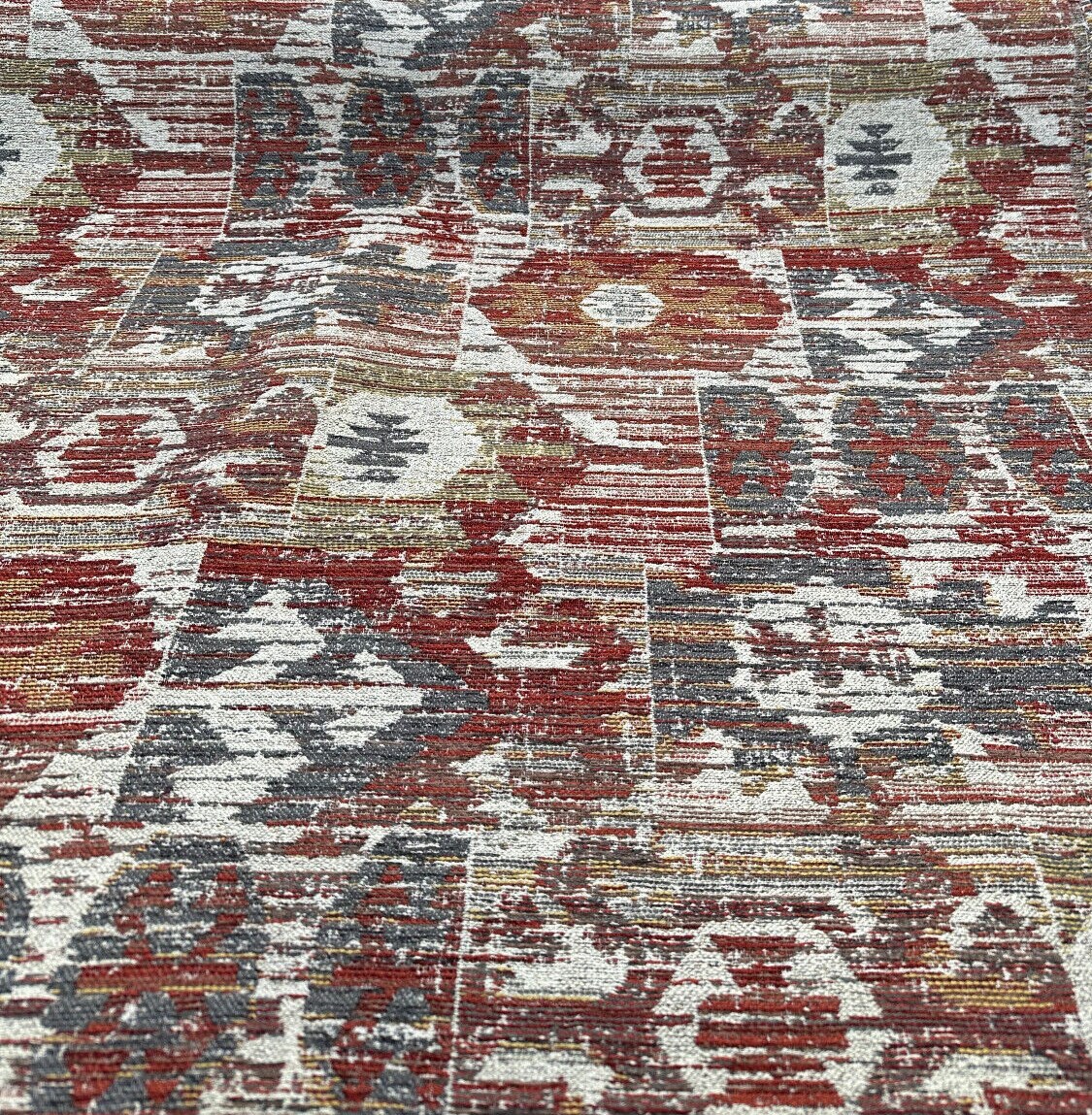1 Yard Upholstery Chenille Fabric Tahoma Flame Vintage Medallion & Floral 70% Polyester 30% Poly Chenille