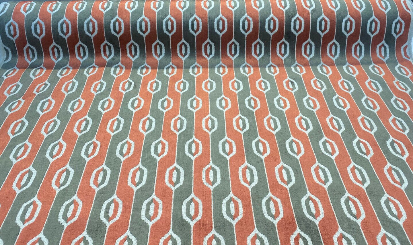 1 Yard Upholstery Velvet Fabric Belgian Paxton Bittersweet Stripe 49% Viscose 27% Polyester 24% Cotton 54 Inch Width