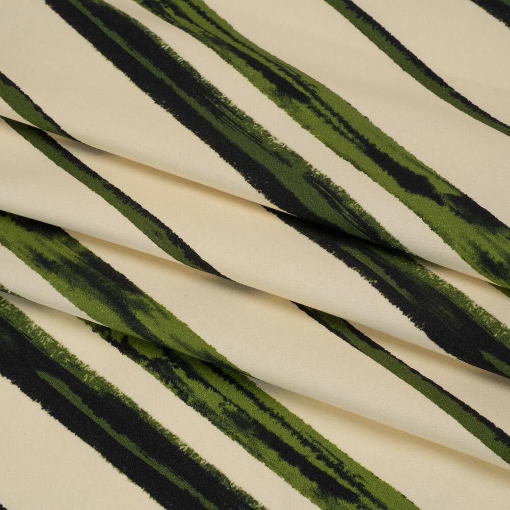 1 Yard Verdant Trail Stretch Cotton Sateen Cream and Green Painted Stripes Cotton Fabric
