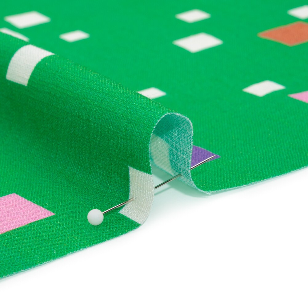 1 Yard Viscose and Linen Woven Fabric Green and Pink Squares Print 53 inch Width