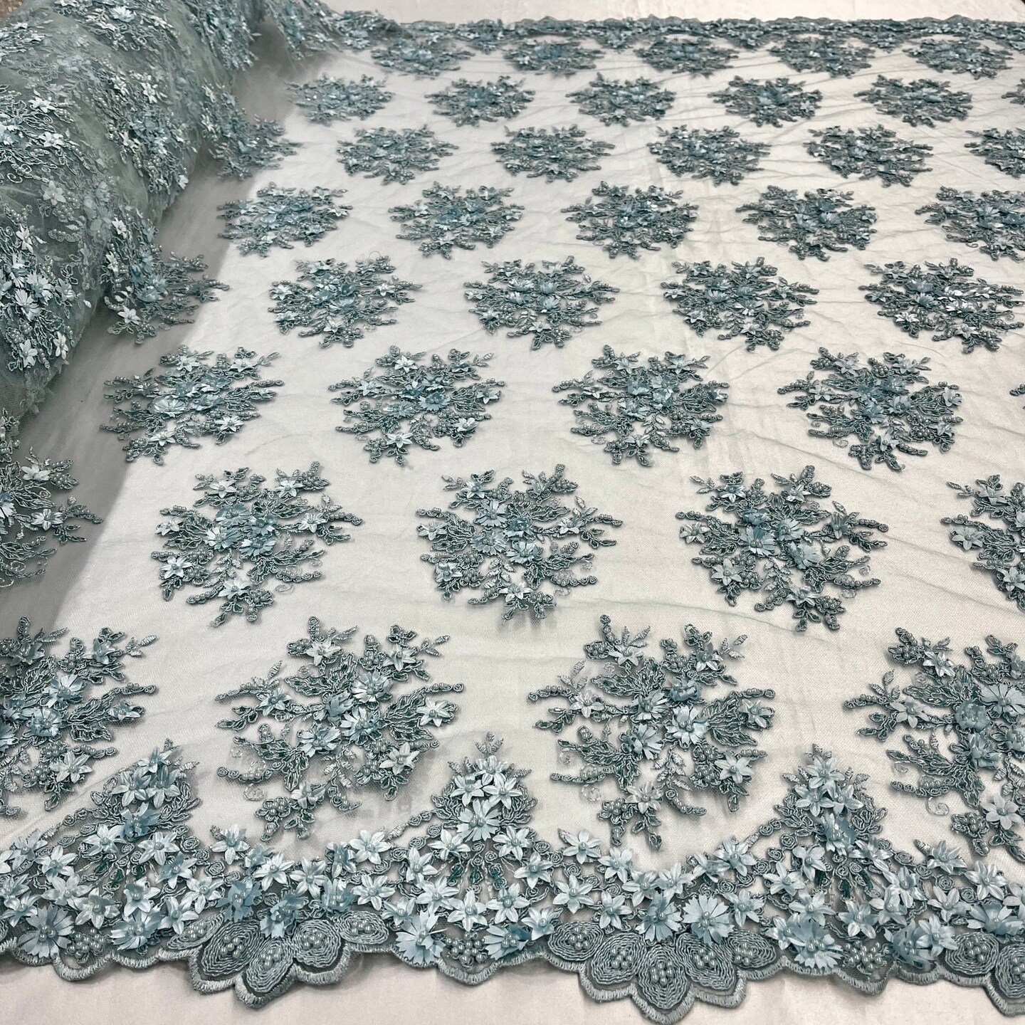1 Yard Whimsical Pink Beaded 3D Floral Lace Fabric on Net Mesh 50 inch Width