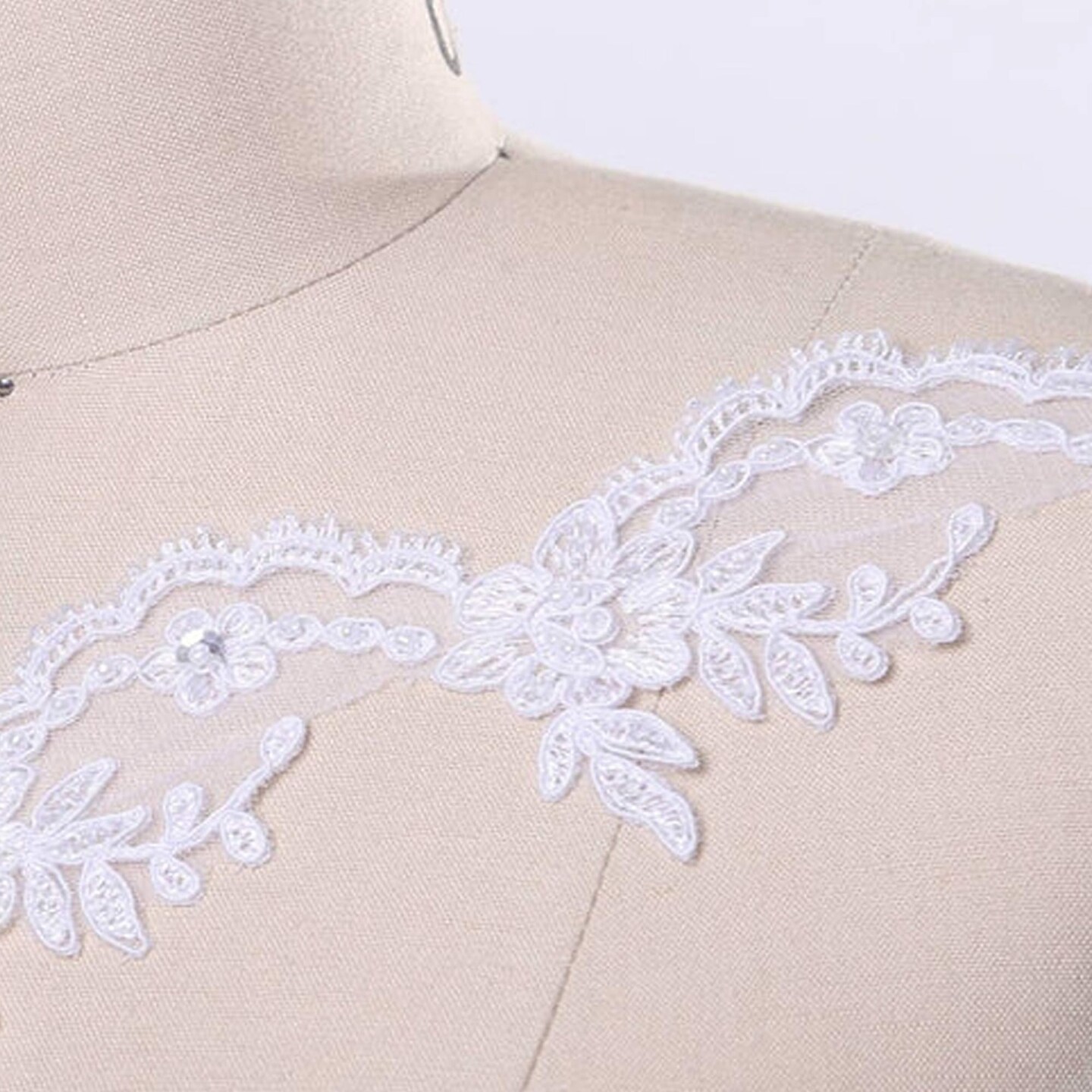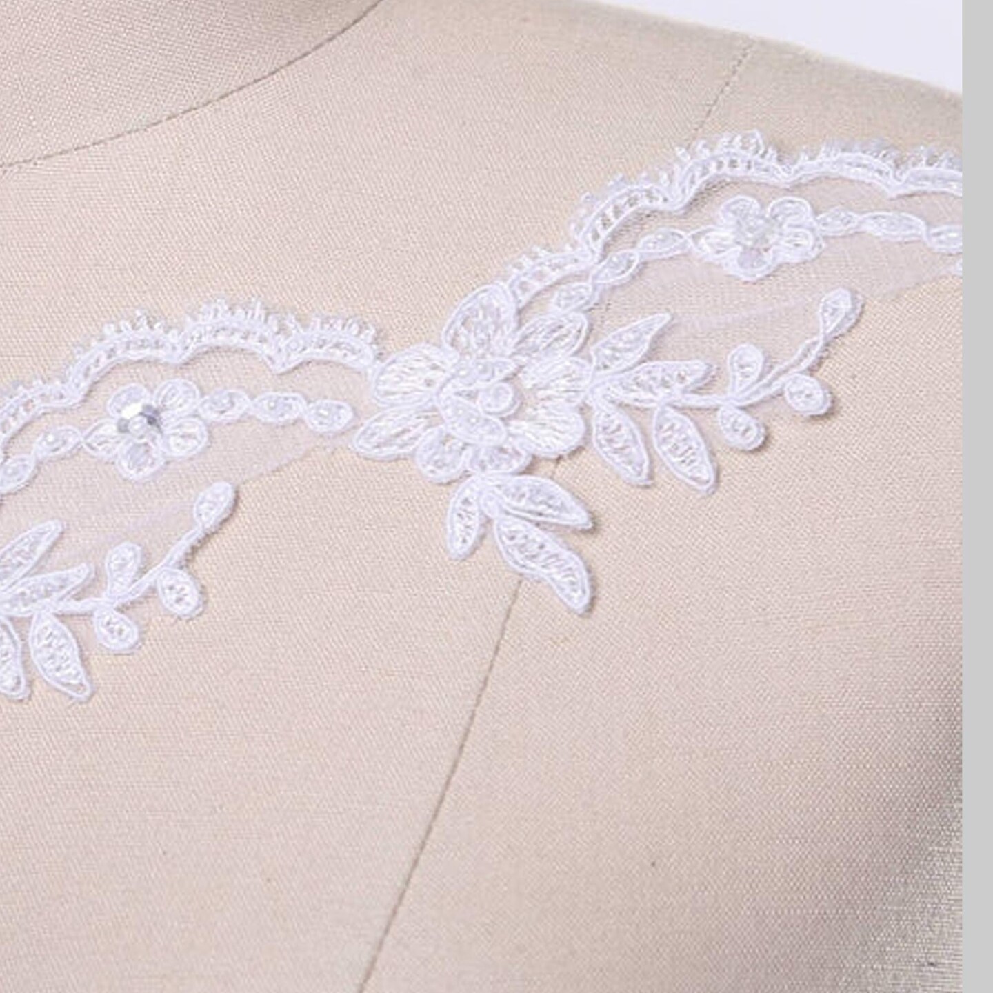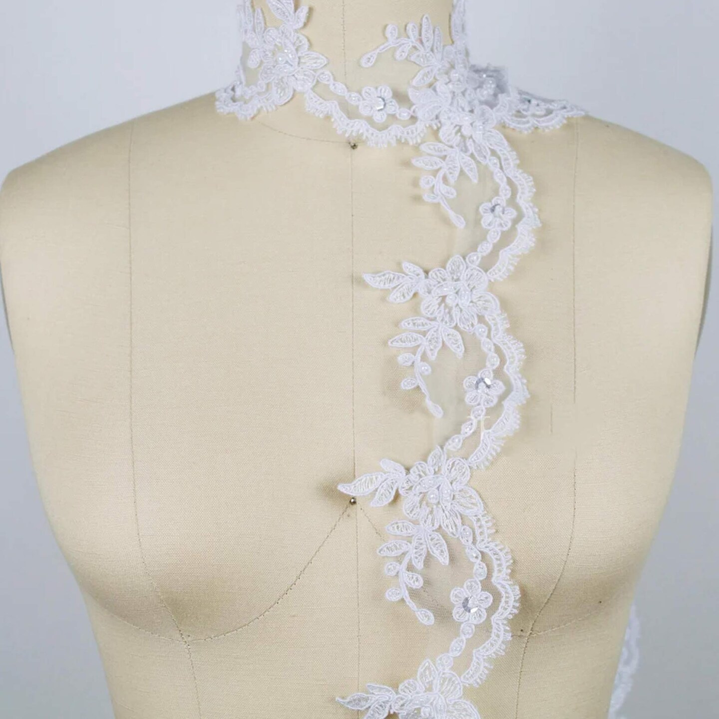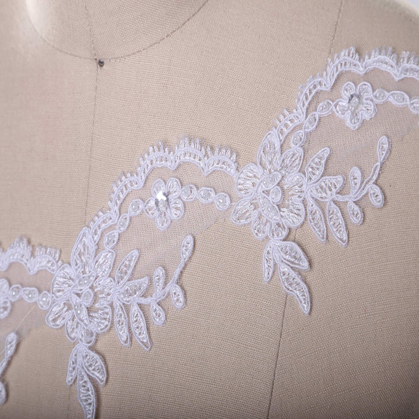 1 Yard White Beaded Lace Trim 2 Inch Width Metallic Thread Veil Embellishment