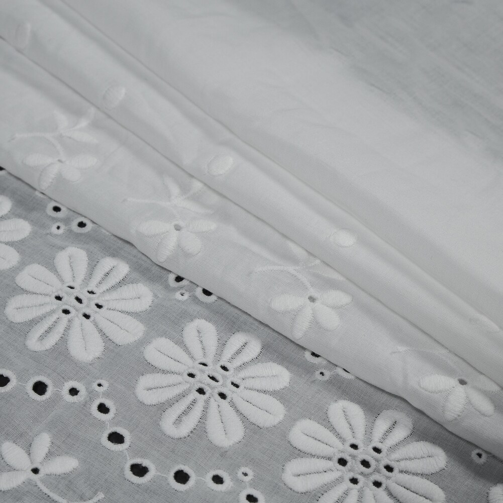 1 Yard White Bordered Embroidered Cotton Eyelet Fabric 56 inch Width