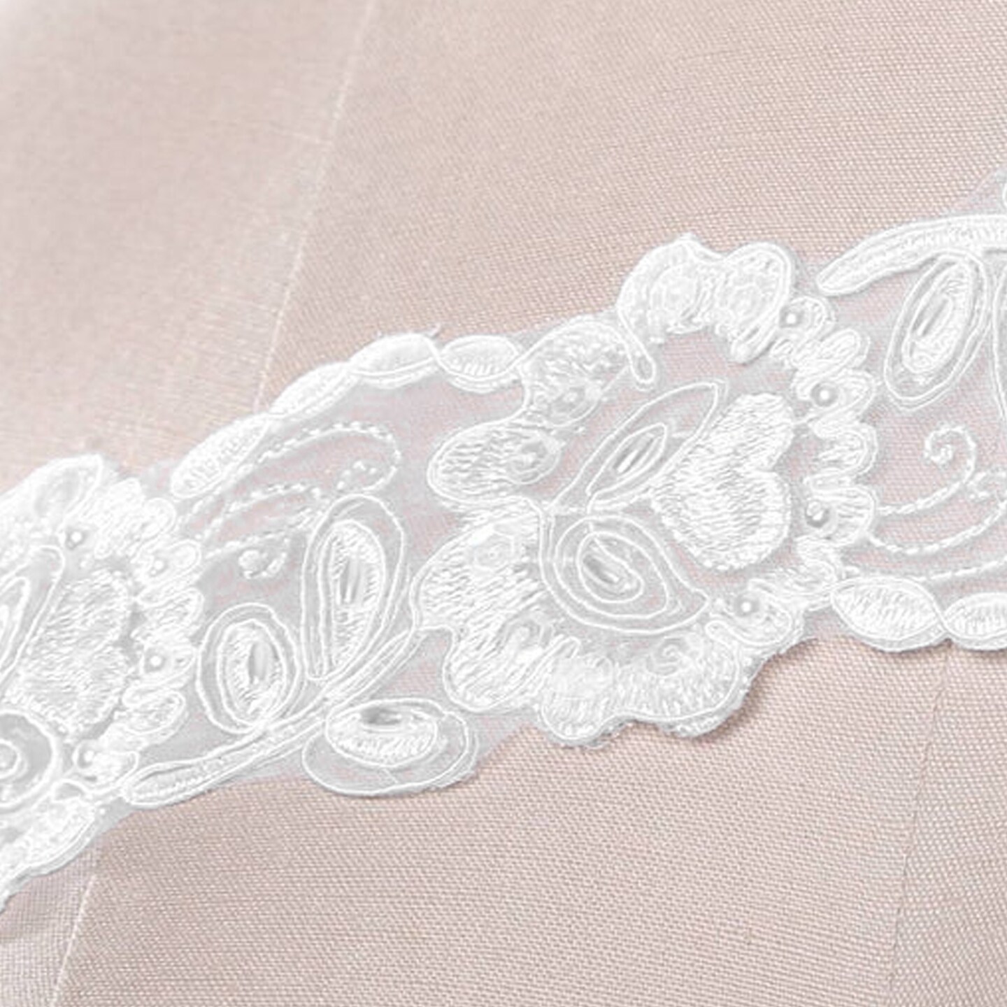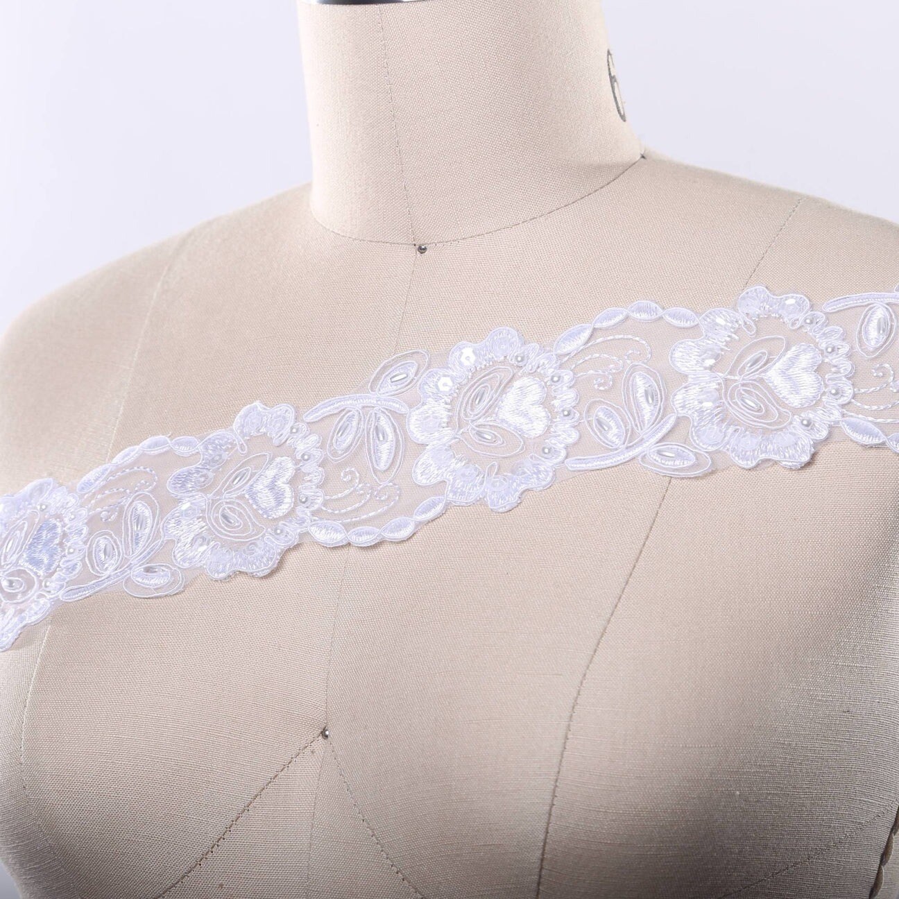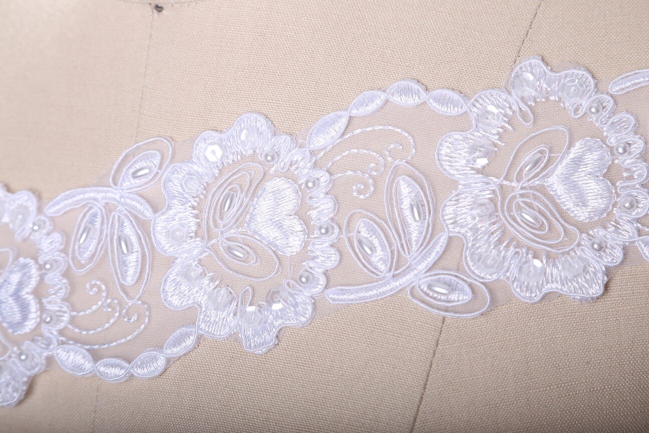 1 Yard White Chiffon Floral Beaded Bridal Ribbon Lace Trim