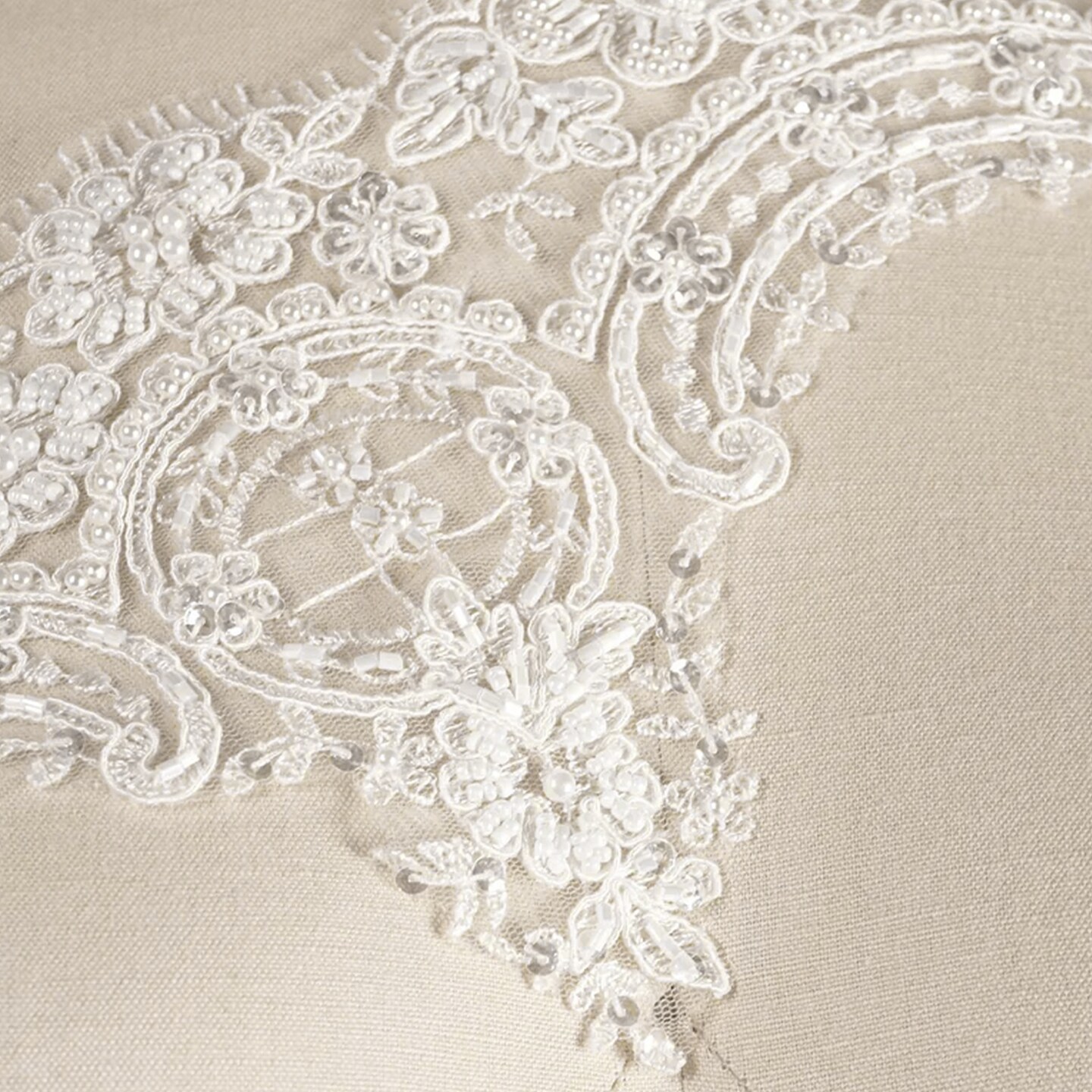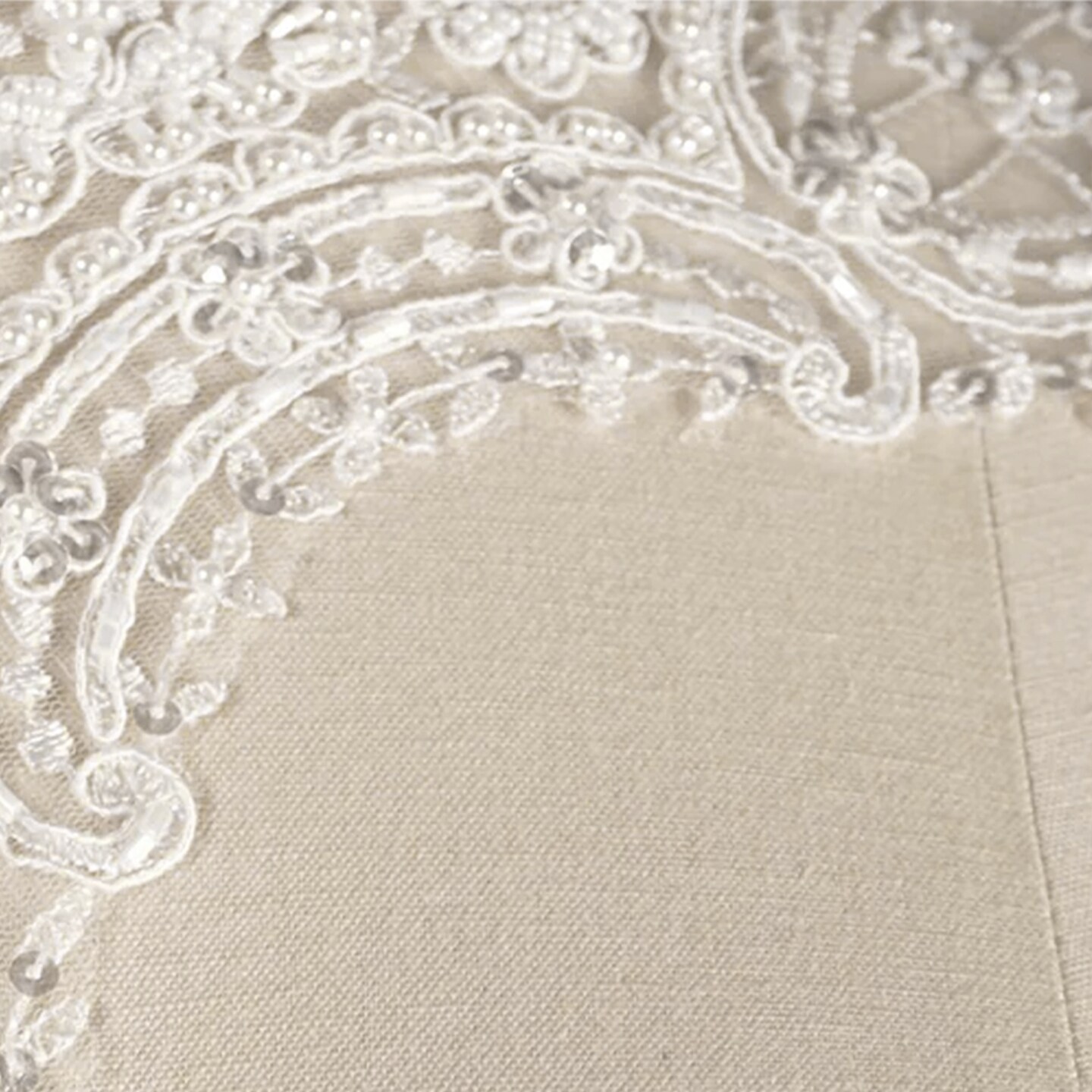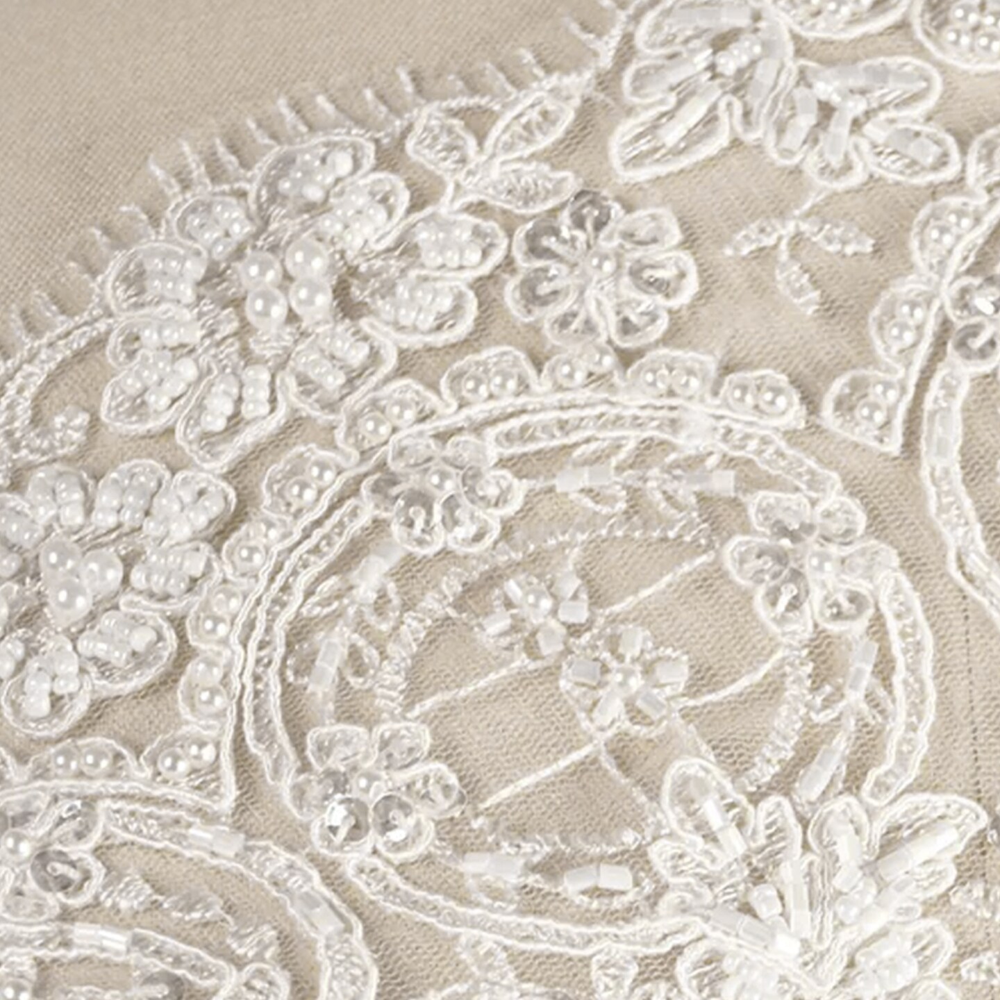 1 Yard white Flowers and Oval Shapes Scalloped Netted Beads and Sequins Bridal Veil Lace Trim