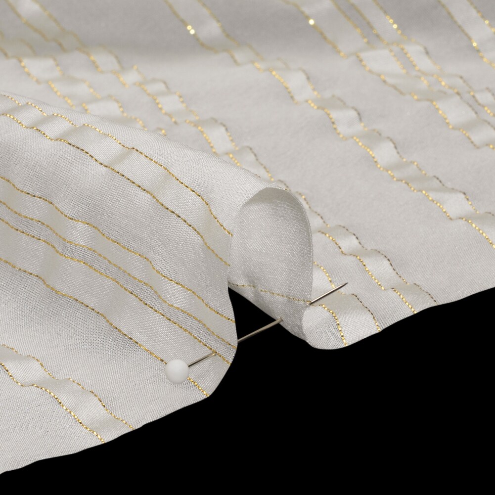 1 Yard White Gold Satin Burnout Stripe Silk Woven Fabric for Blouses Dresses 55" Width
