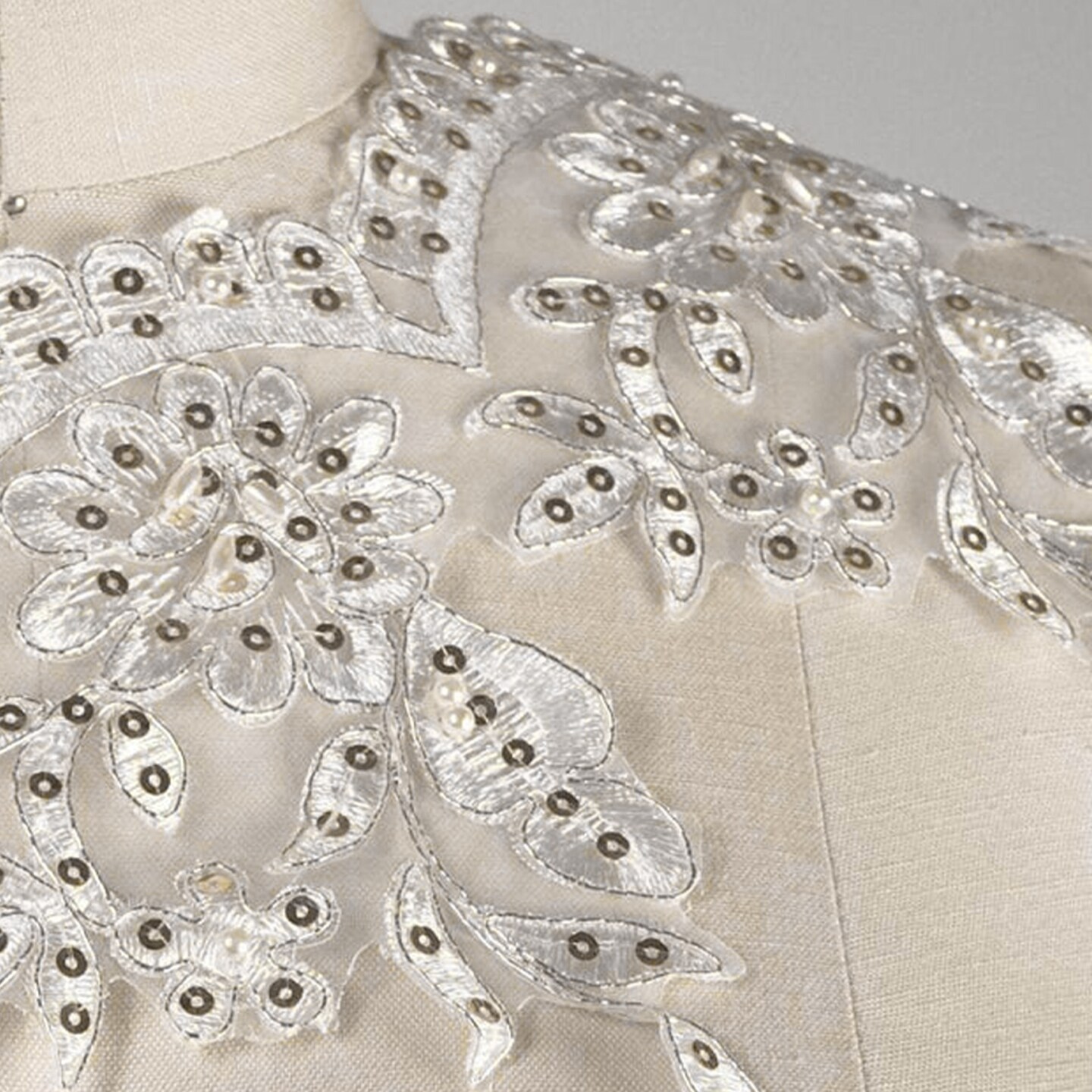 1 Yard White & Gold Scalloped Lace Trim With Beading Leaf Rose Bridal Veil Design 4 Inch