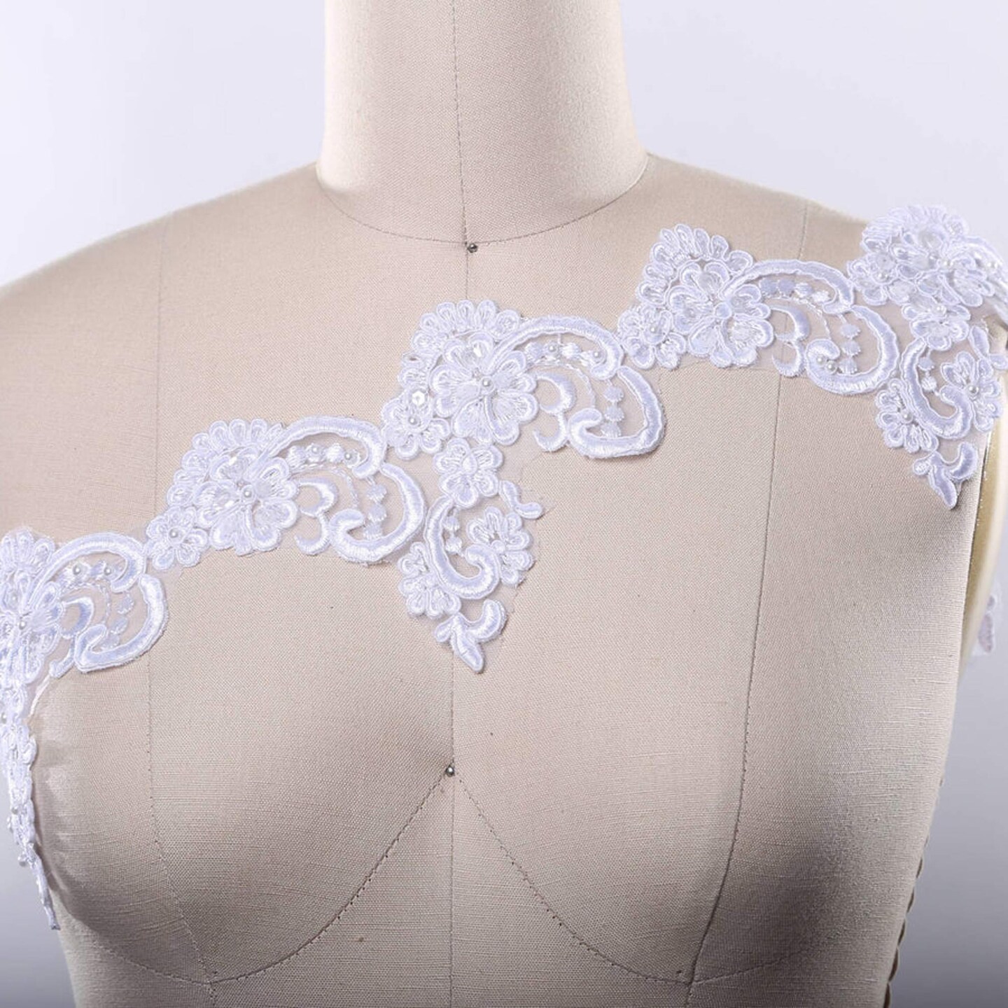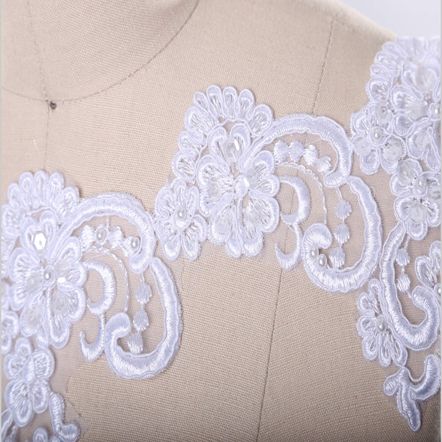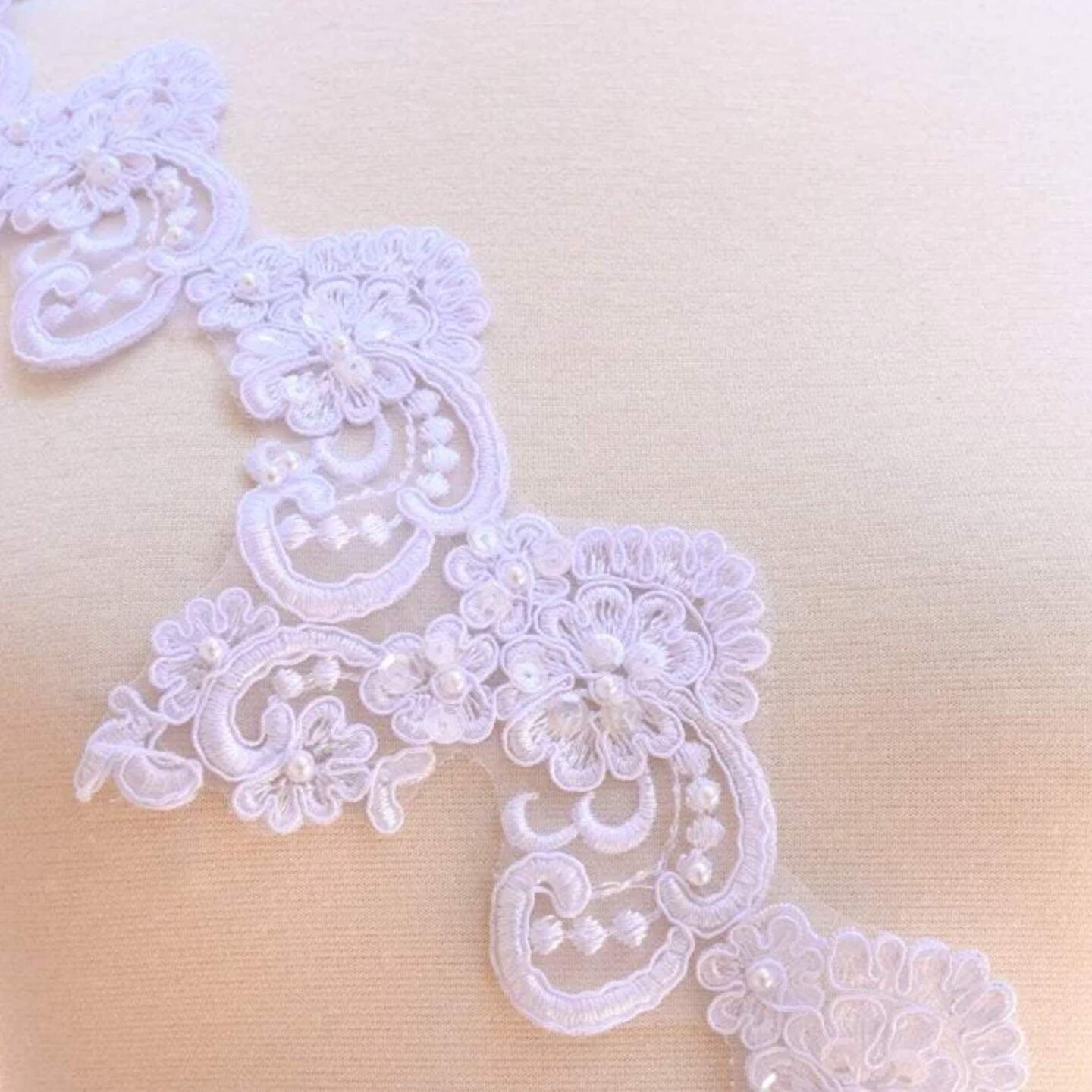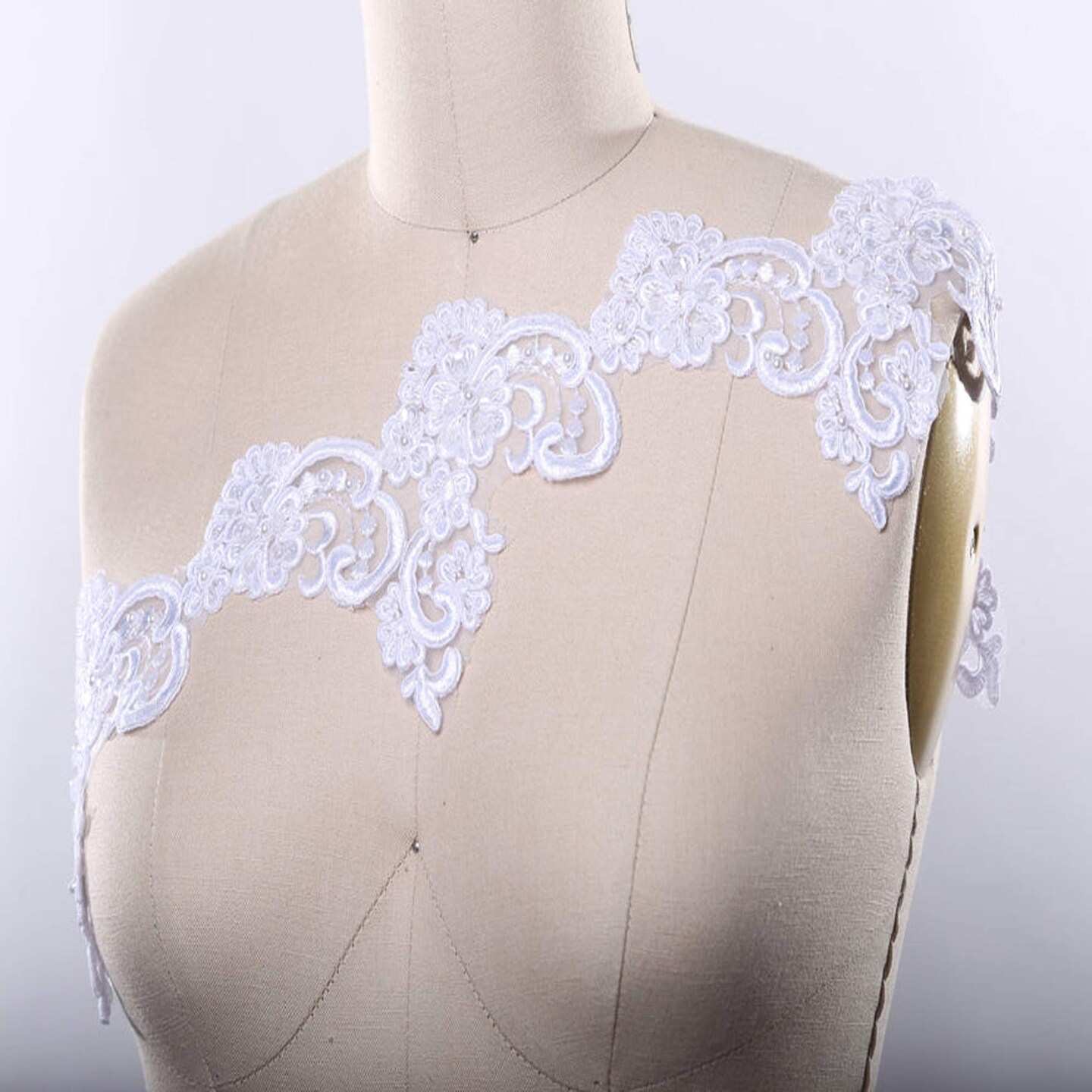 1 Yard White Lace Trim 3 Inch Beaded Bridal Veil Scalloped Edge Embellishment