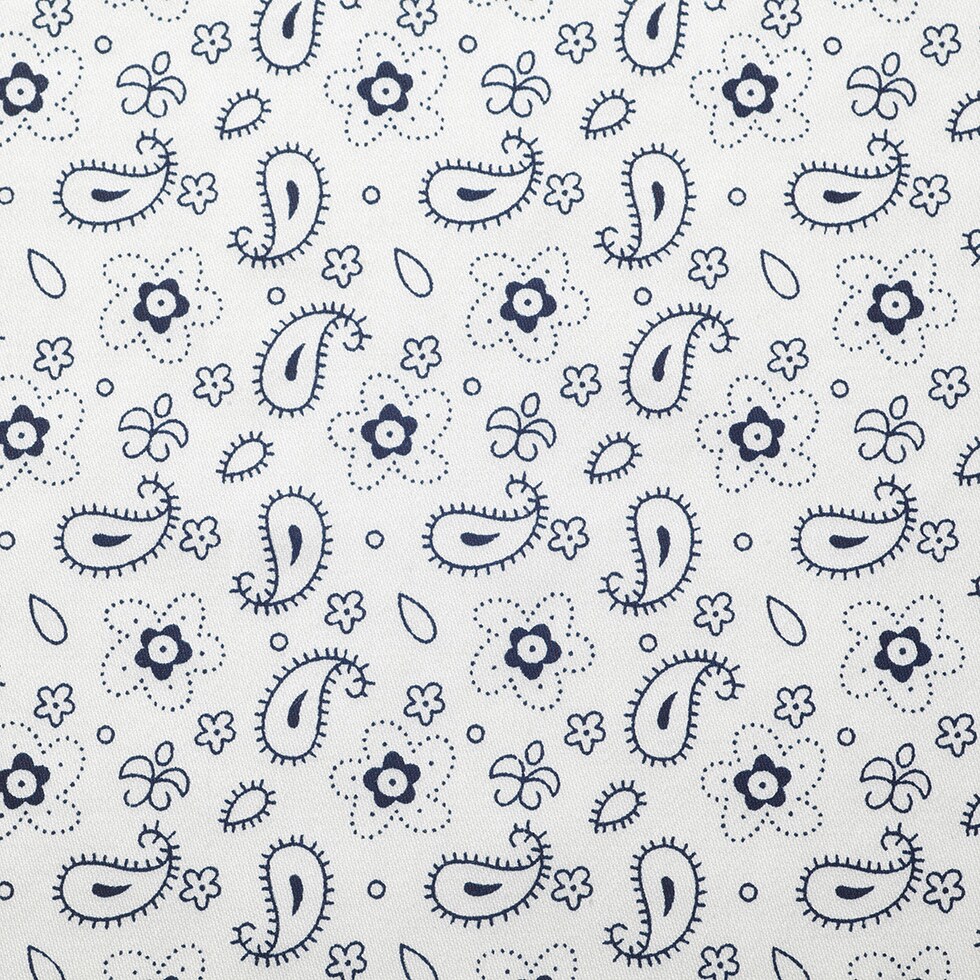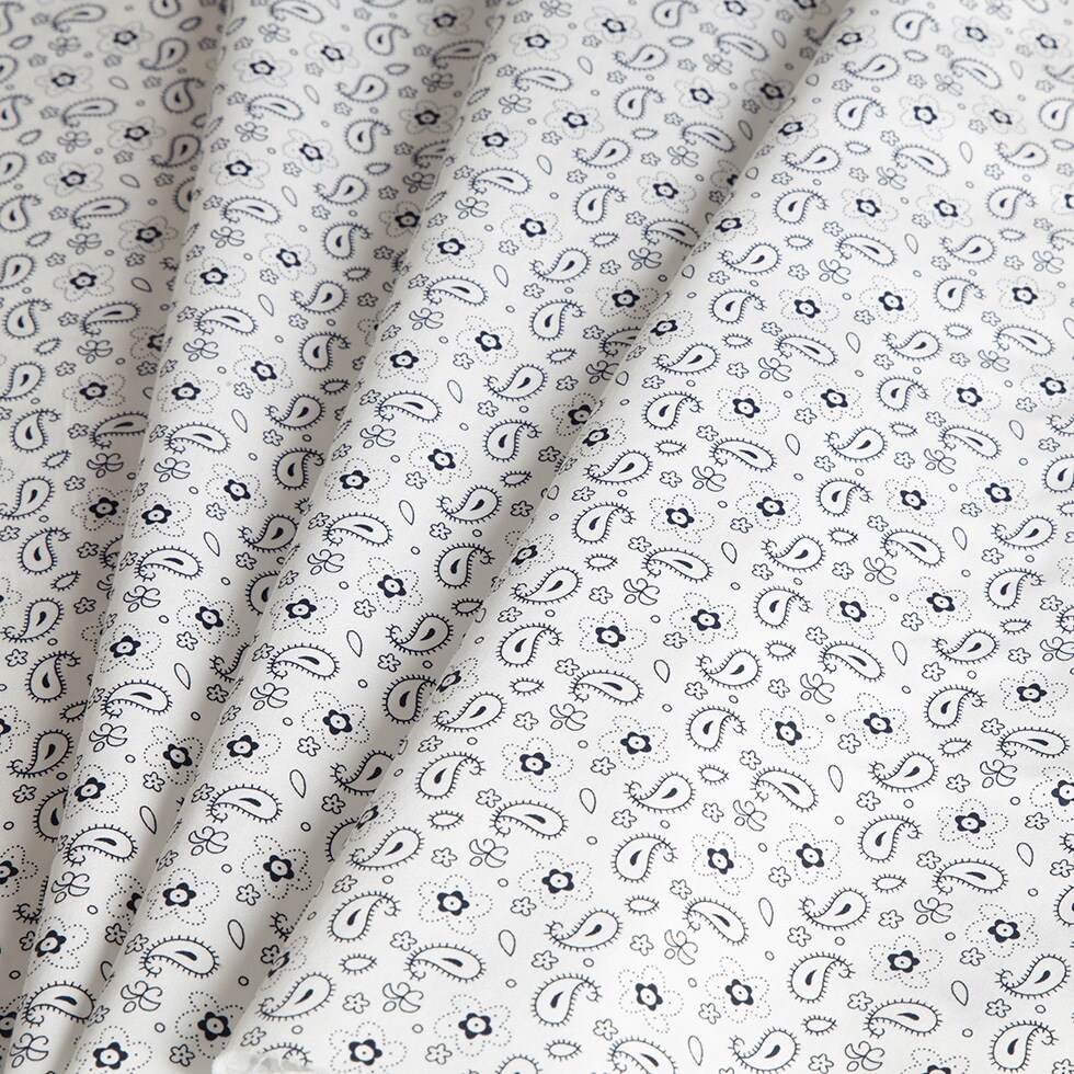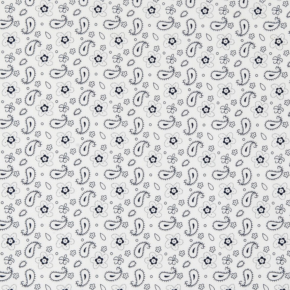 1 Yard White Navy Paisley Combed Cotton Sateen Fabric