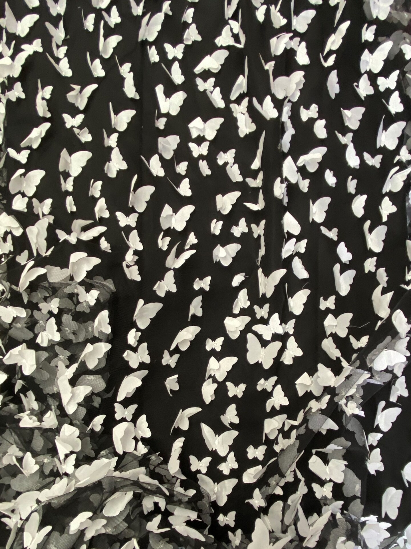 1 Yard White on Black 3D Butterfly Satin Mesh Fabric for Dresses, Skirts, and Costumes 54 Inch Wide