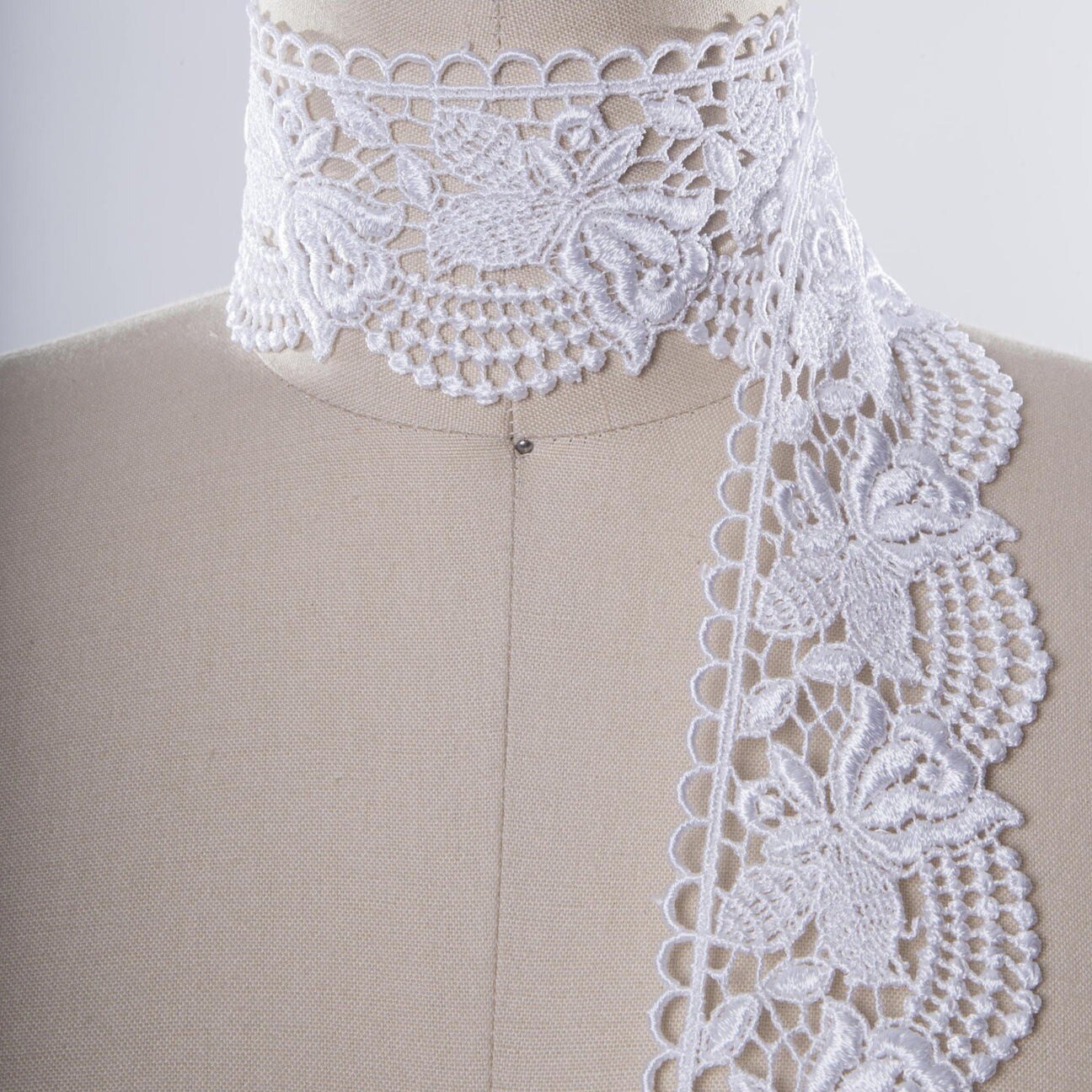 1 Yard White Rose Motif Venice Lace Trim with Rough Scalloped Edges for Elegant Sewing Projects 2.75 Inch Wide