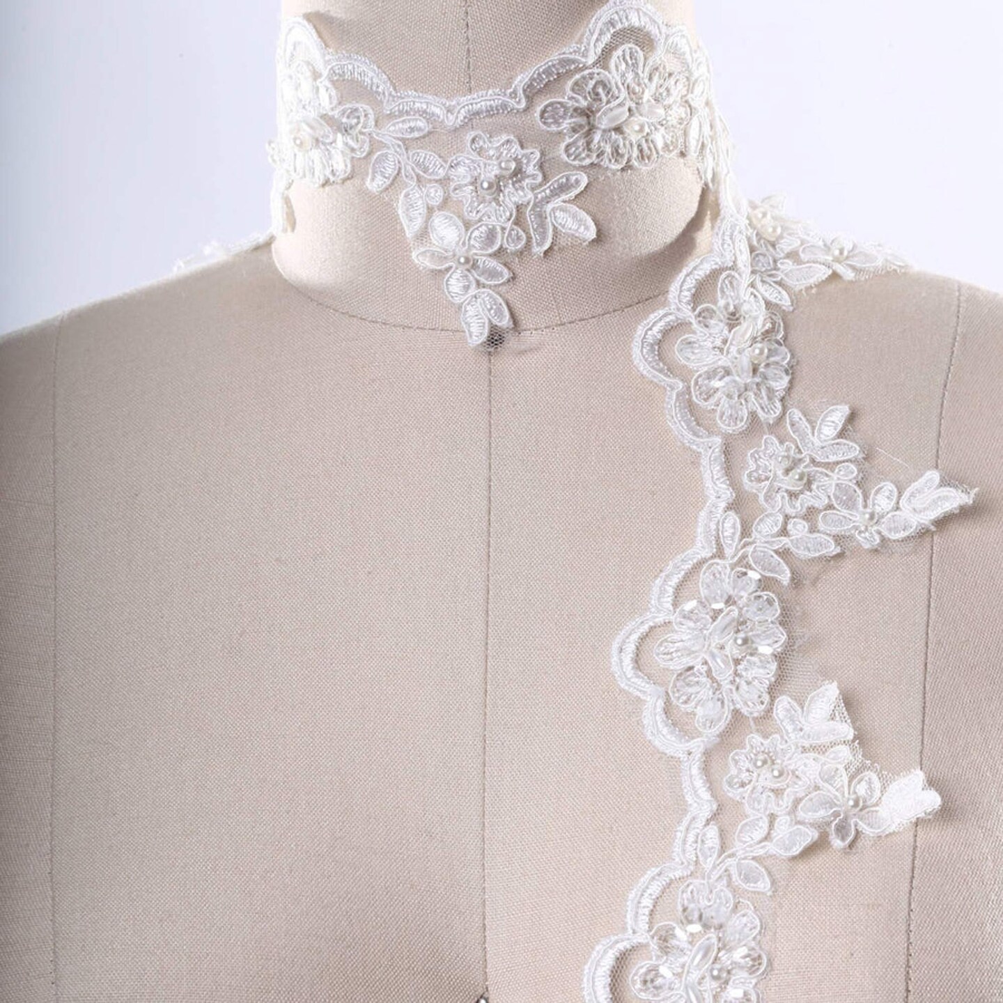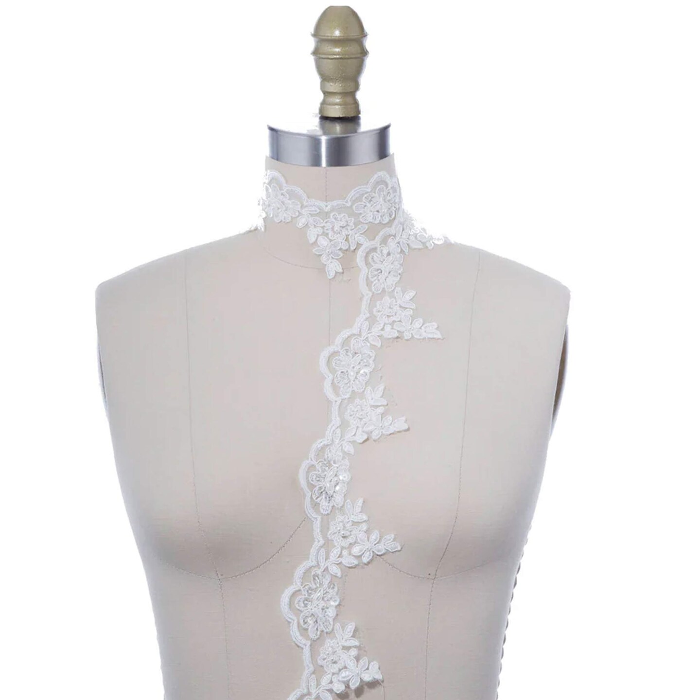1 Yard White Sequining Scalloped Subtle Bridal Lace Trim