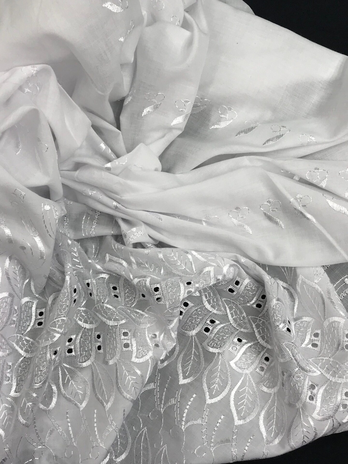 1 Yard White Single Side Embroidered Eyelet Fabric 80% Polyester 20% Cotton 43/44 Wide