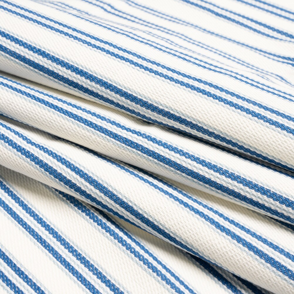1 Yard White Summer Blue and Sky Blue Modern Ticking Stripes Cotton Twill Fabric