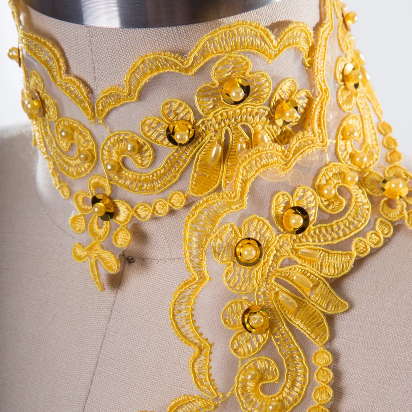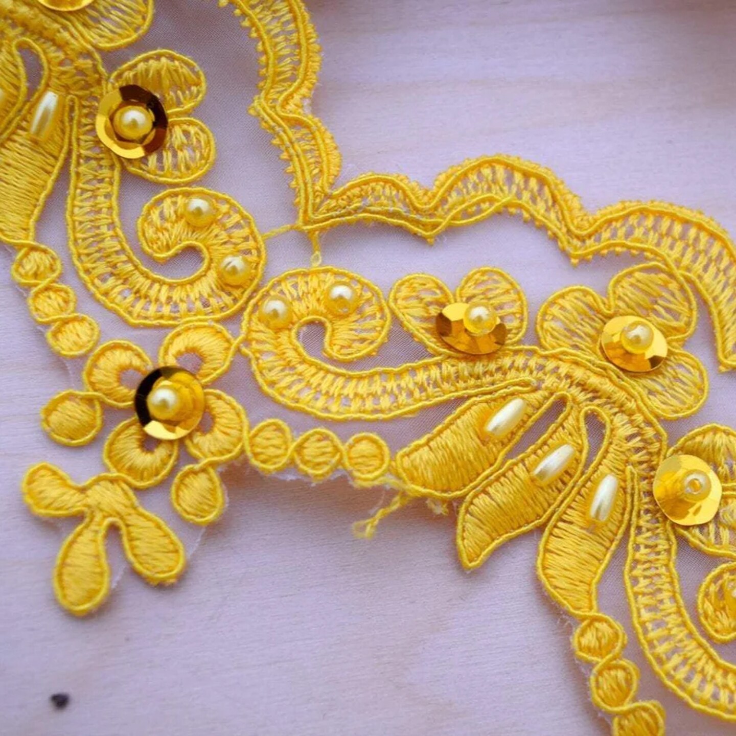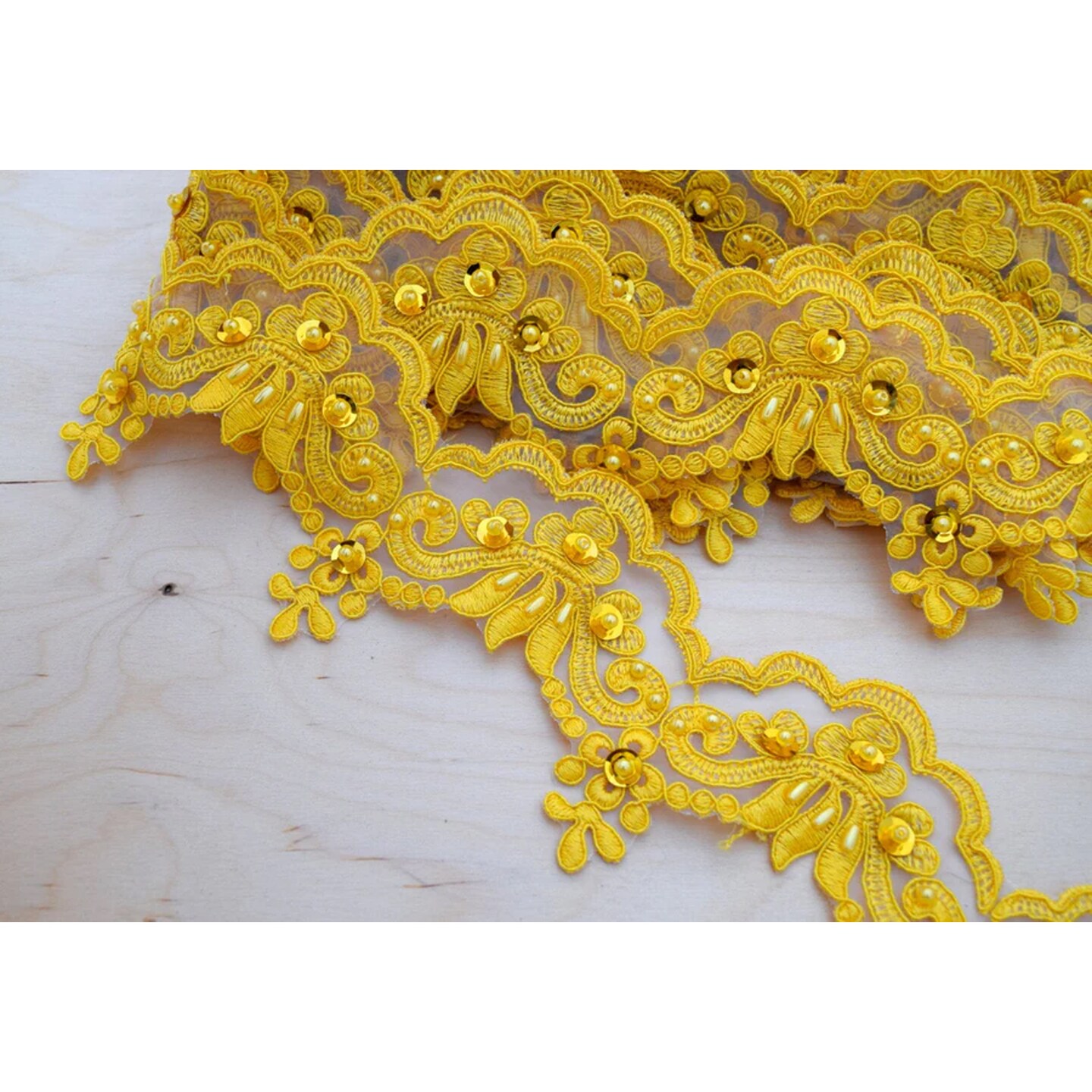 1 Yard Yellow Beaded Lace Trim 2.5" Height Boldly Glamorous with Tasteful Sequins Elegant Organza Embellishment