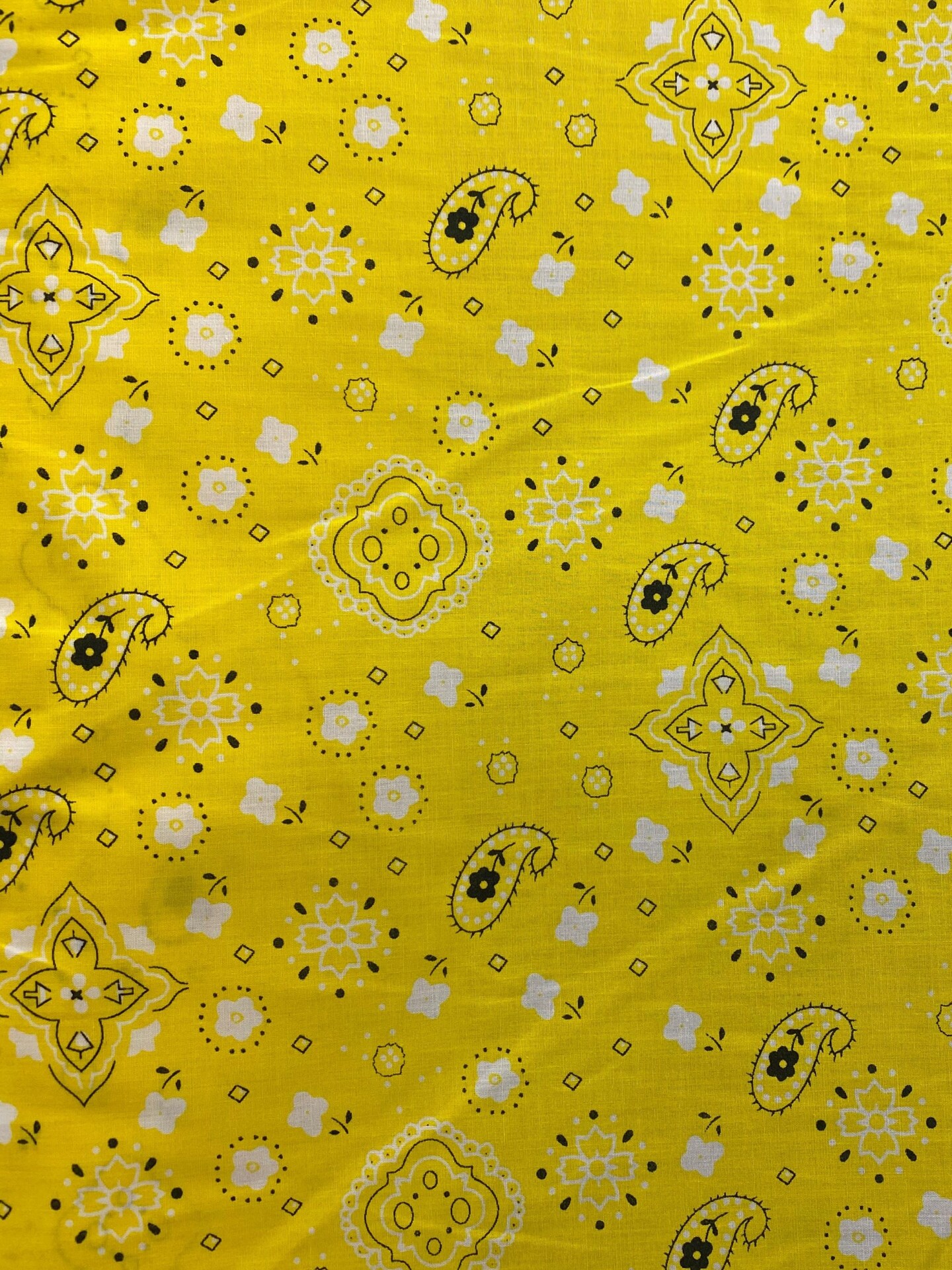 1 Yard Yellow Paisley Print Poly Cotton Blend Bandanna Fabric 59/60 Inch Wide
