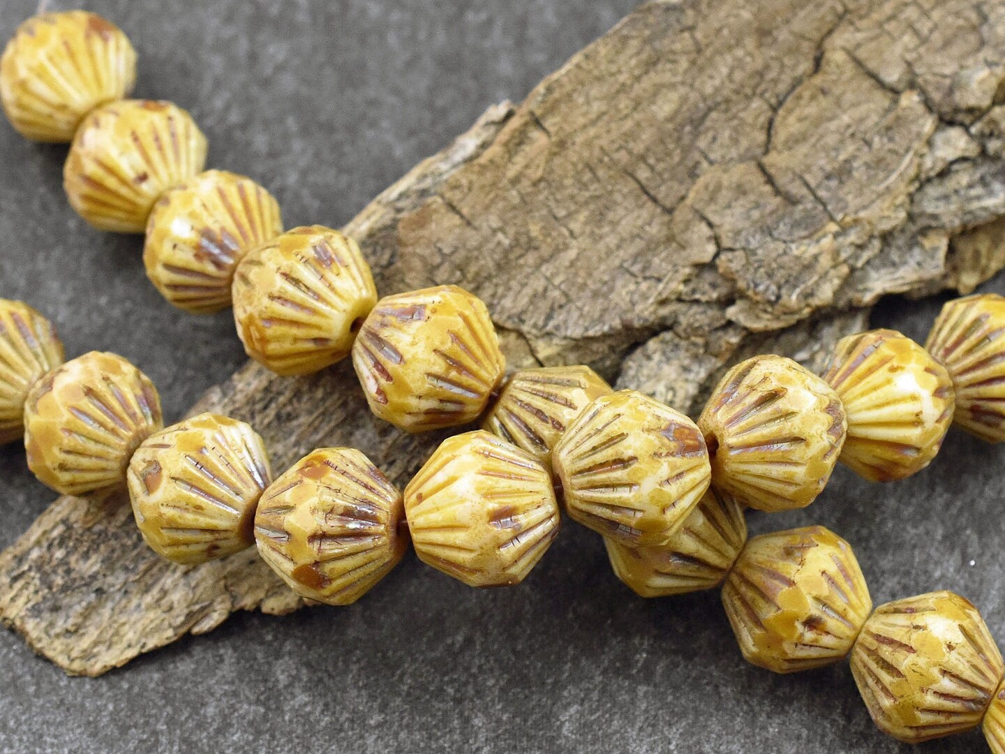 *10* 10mm Antique Ivory Picasso Central Cut Bicone Beads