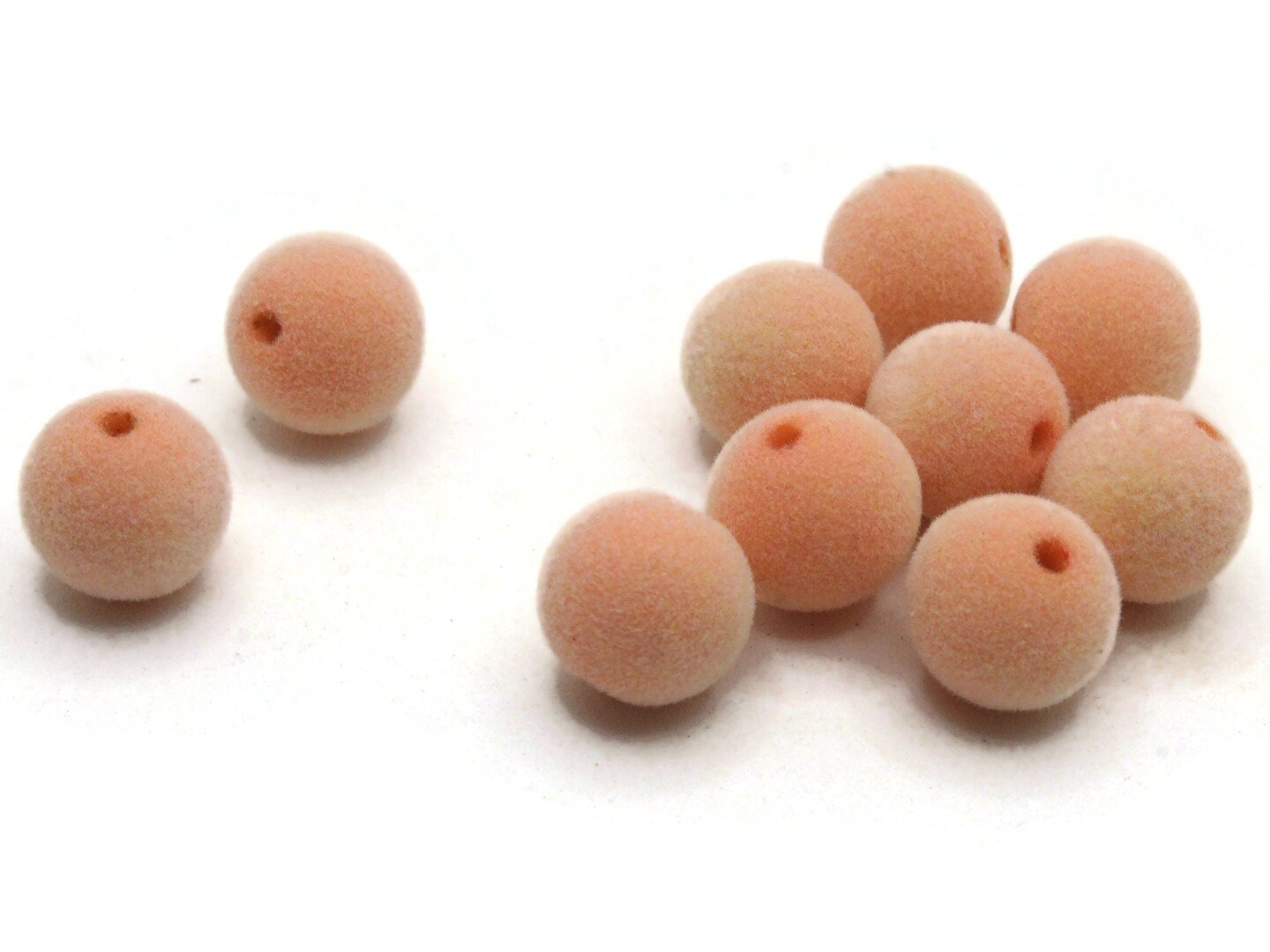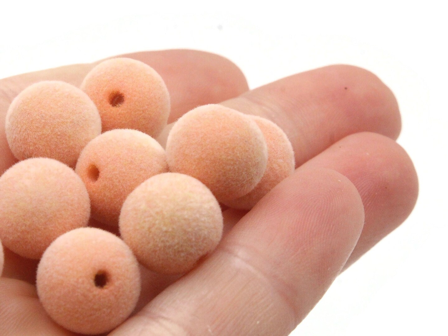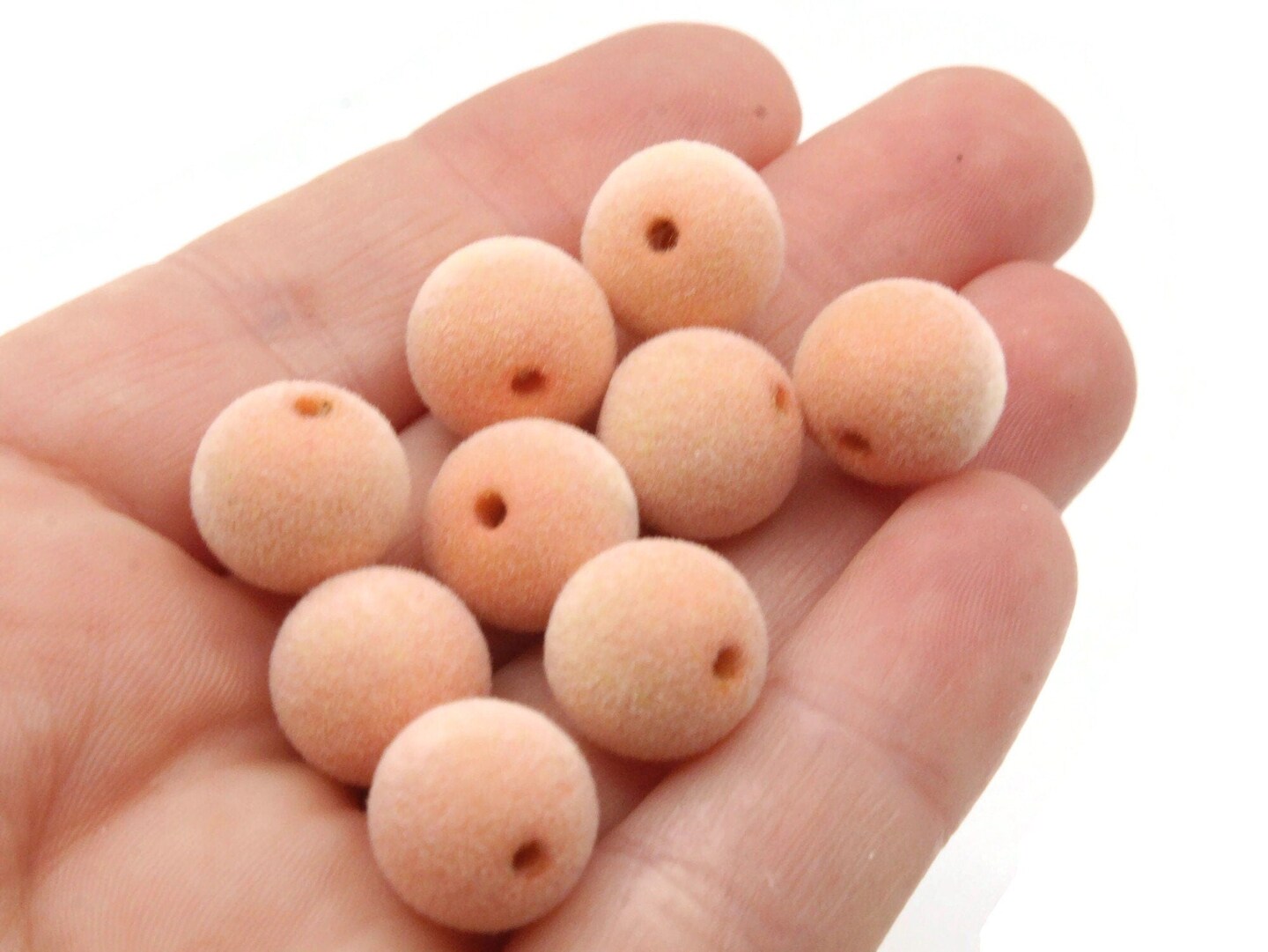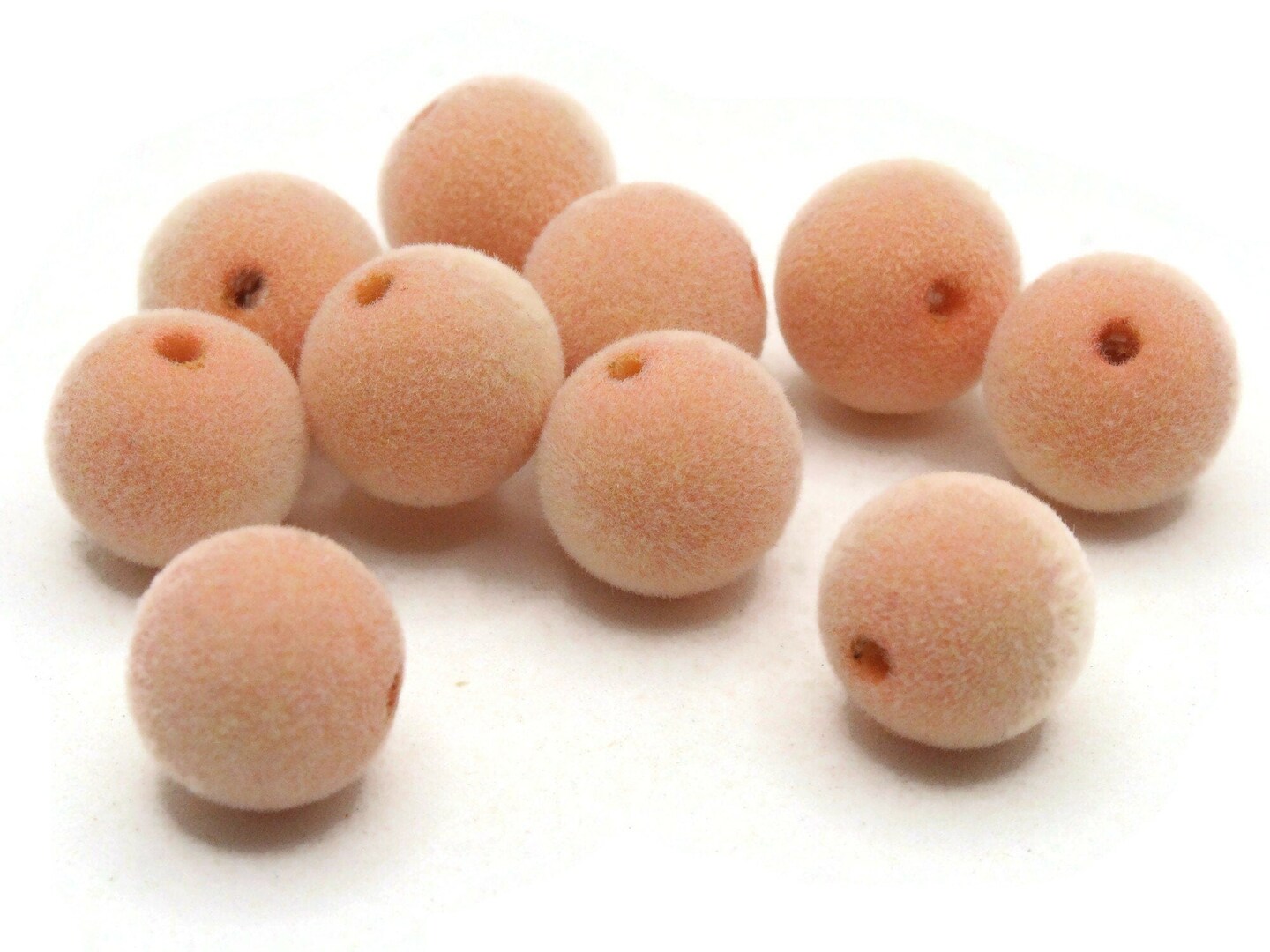 10 12mm Velvet Round Pink Flocked Acrylic Beads