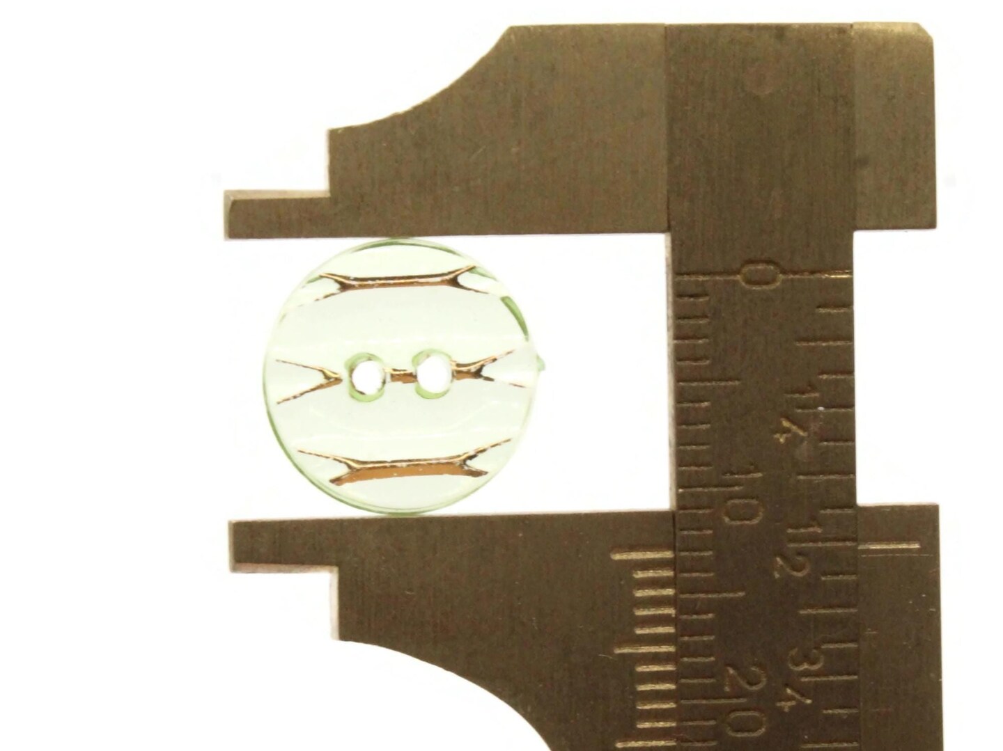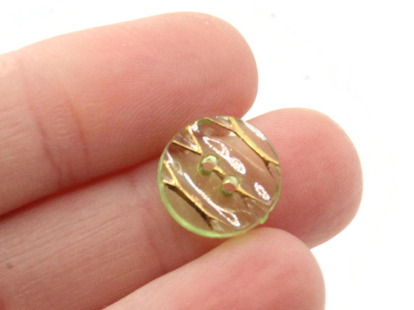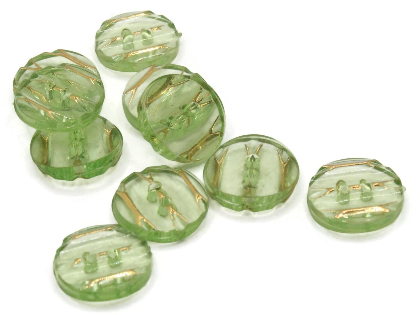 10 13mm Green Plastic Two Hole Buttons with Gold Stripes