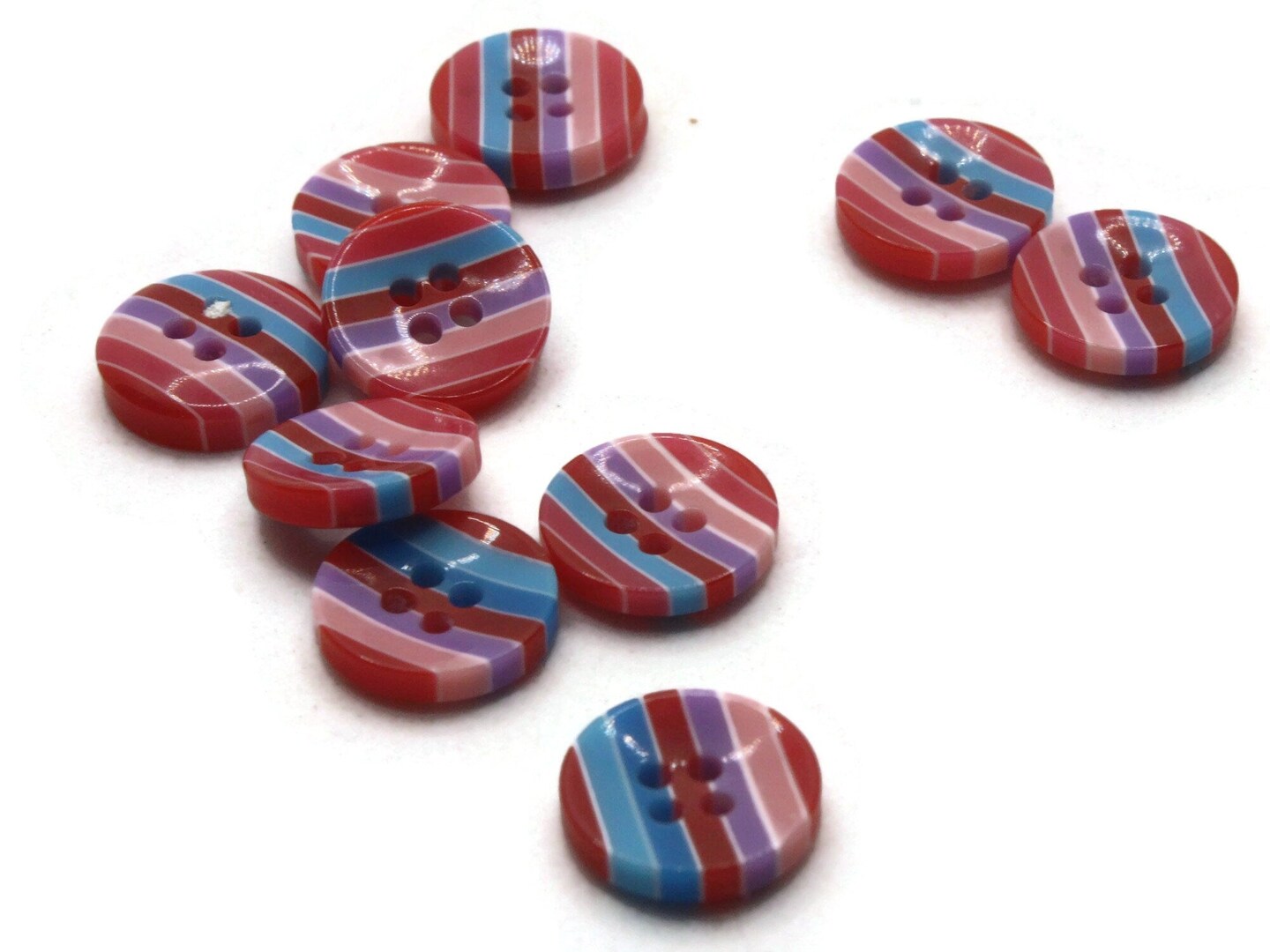 10 13mm Red Pink Blue and Purple Striped Resin Flat Round Plastic Four Hole Buttons