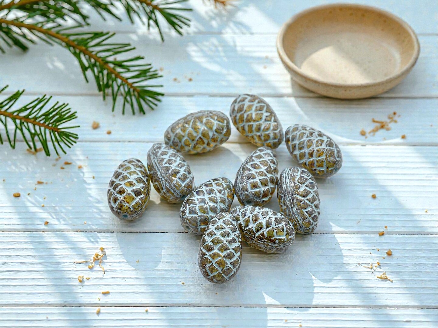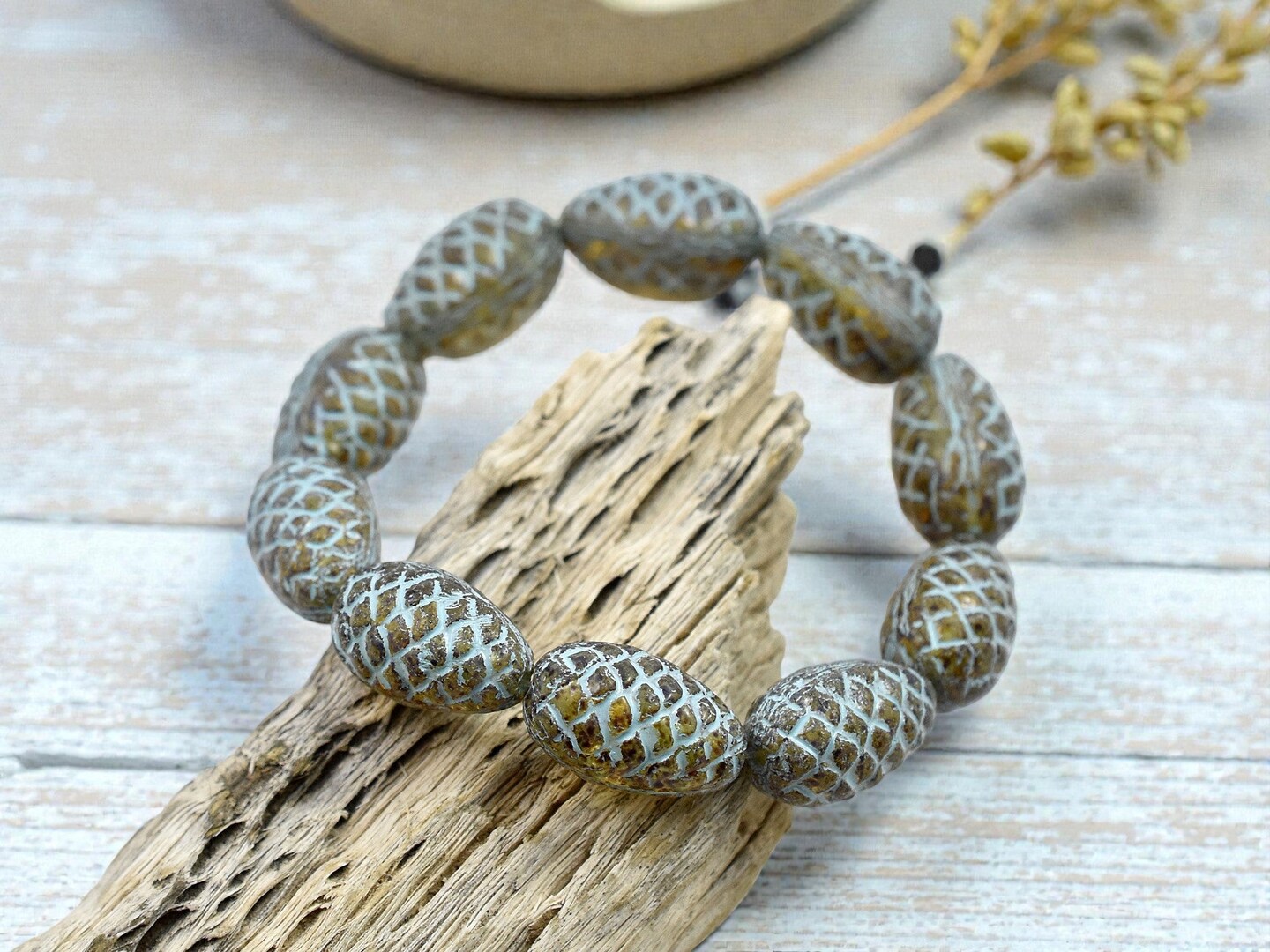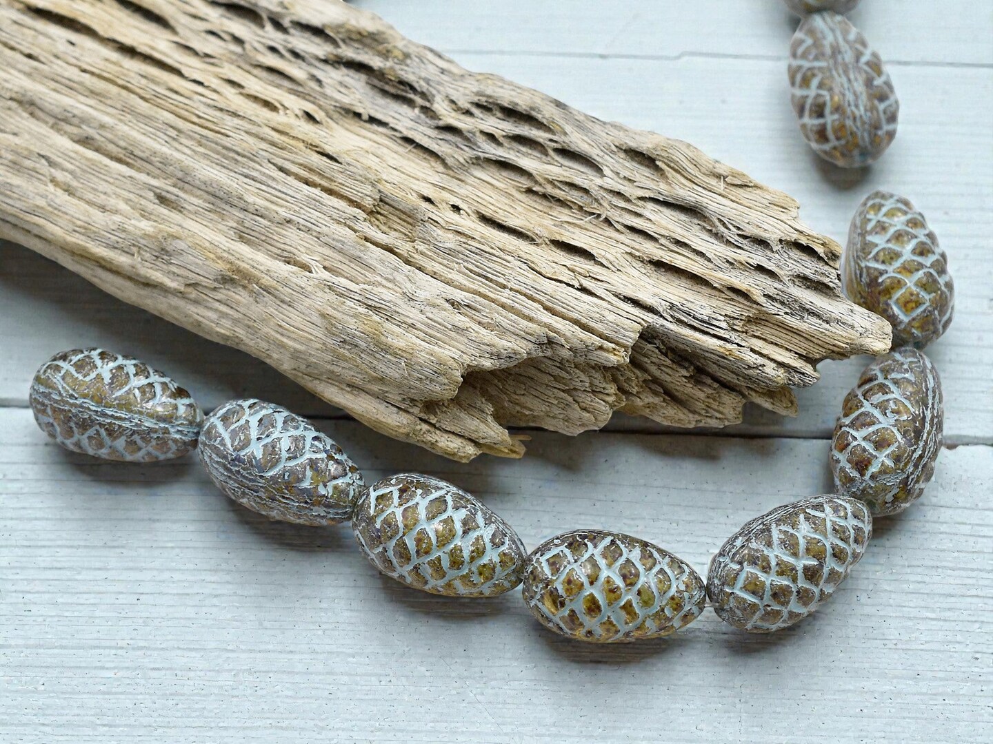 *10* 13x8mm Turquoise Washed Amber Pine Cone Beads