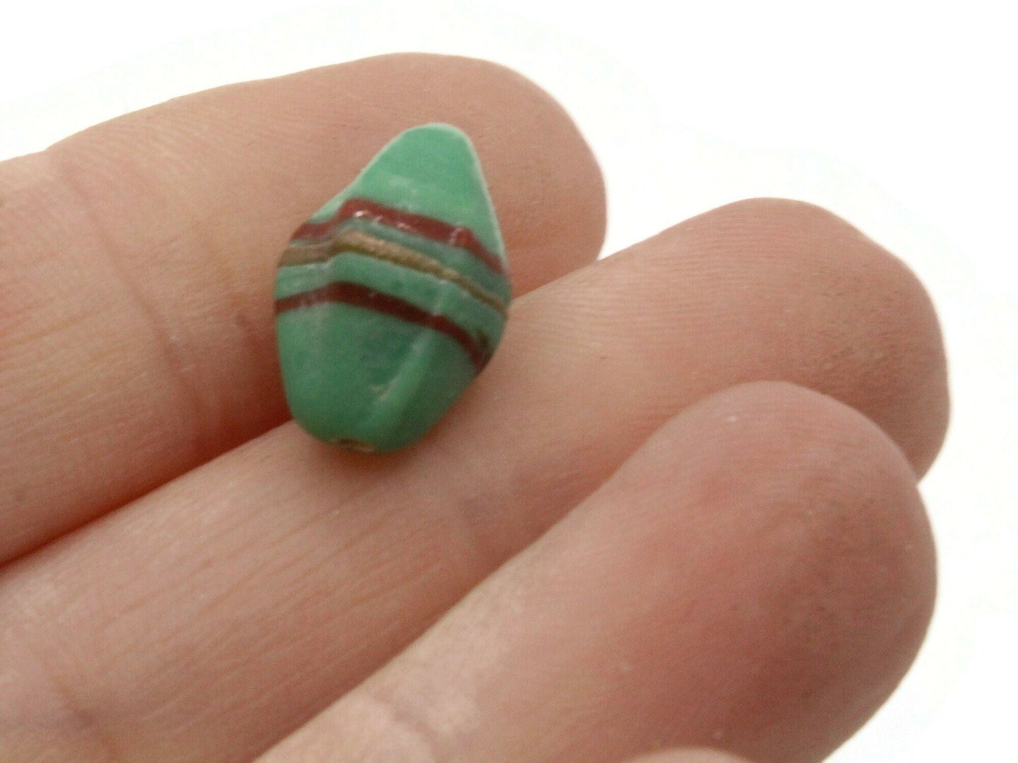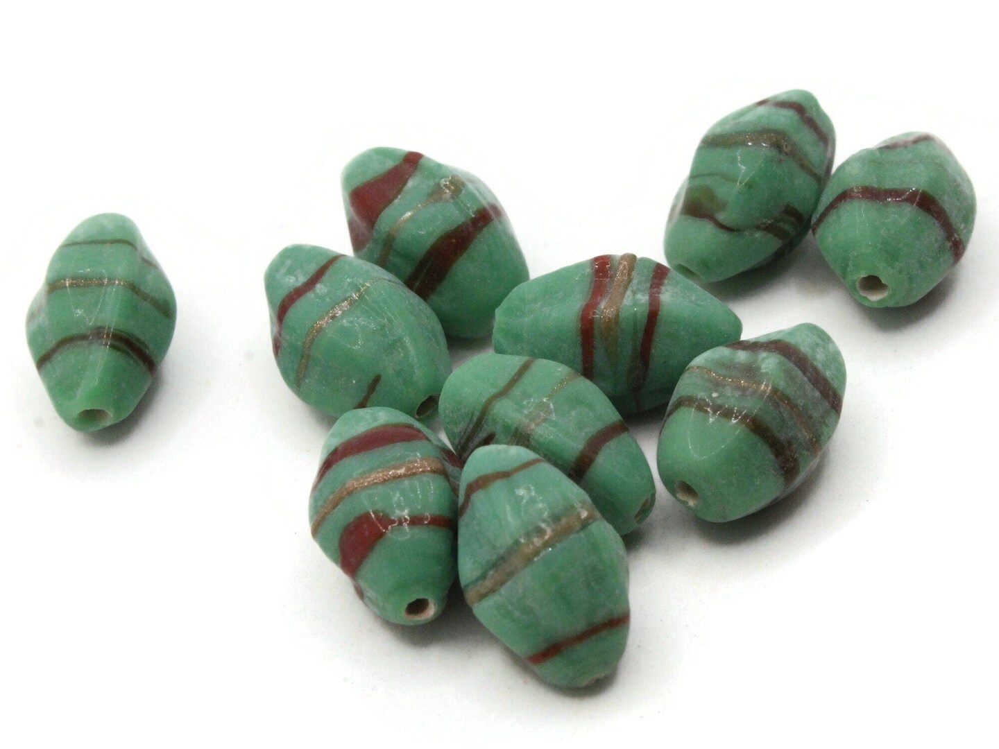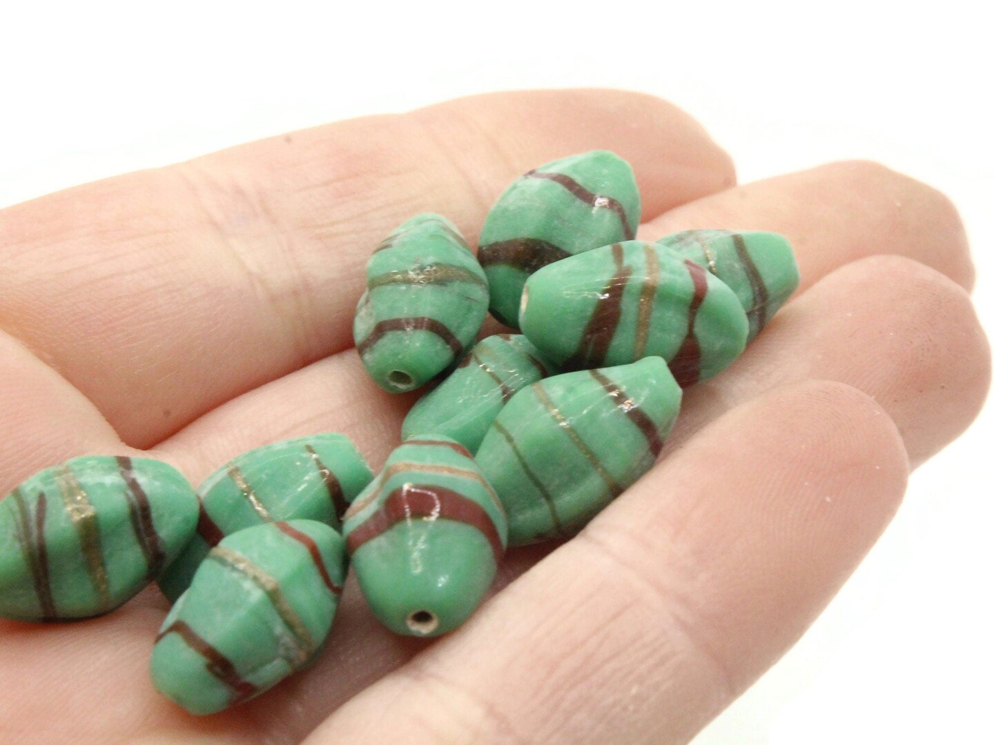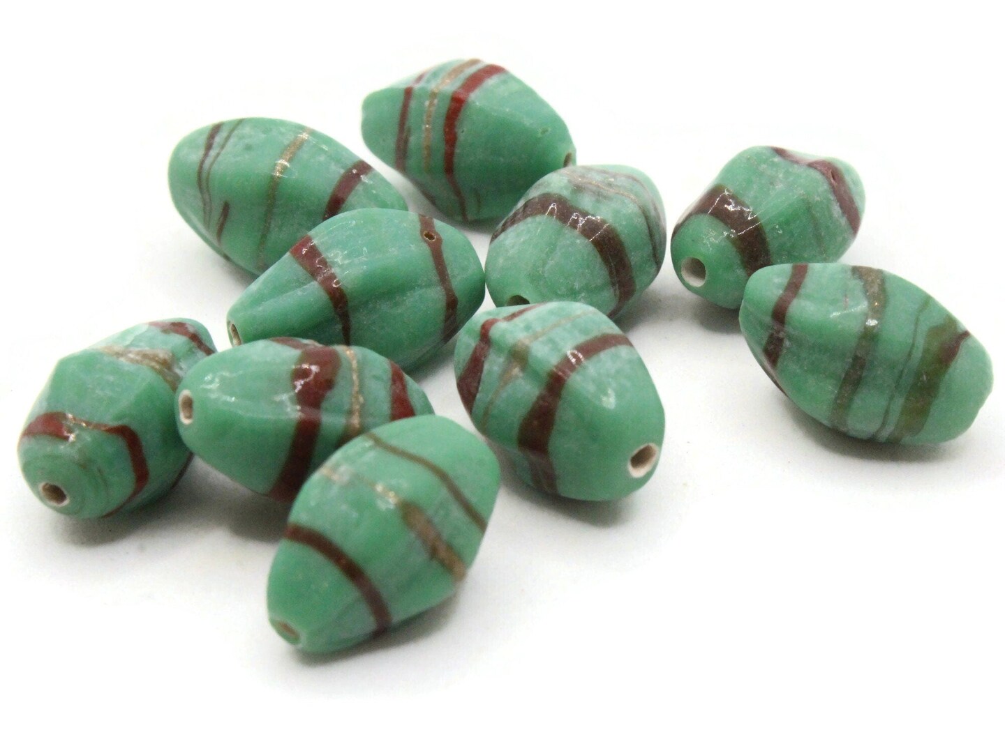 10 15mm Teal Green Ridged Oval Striped Glass Beads