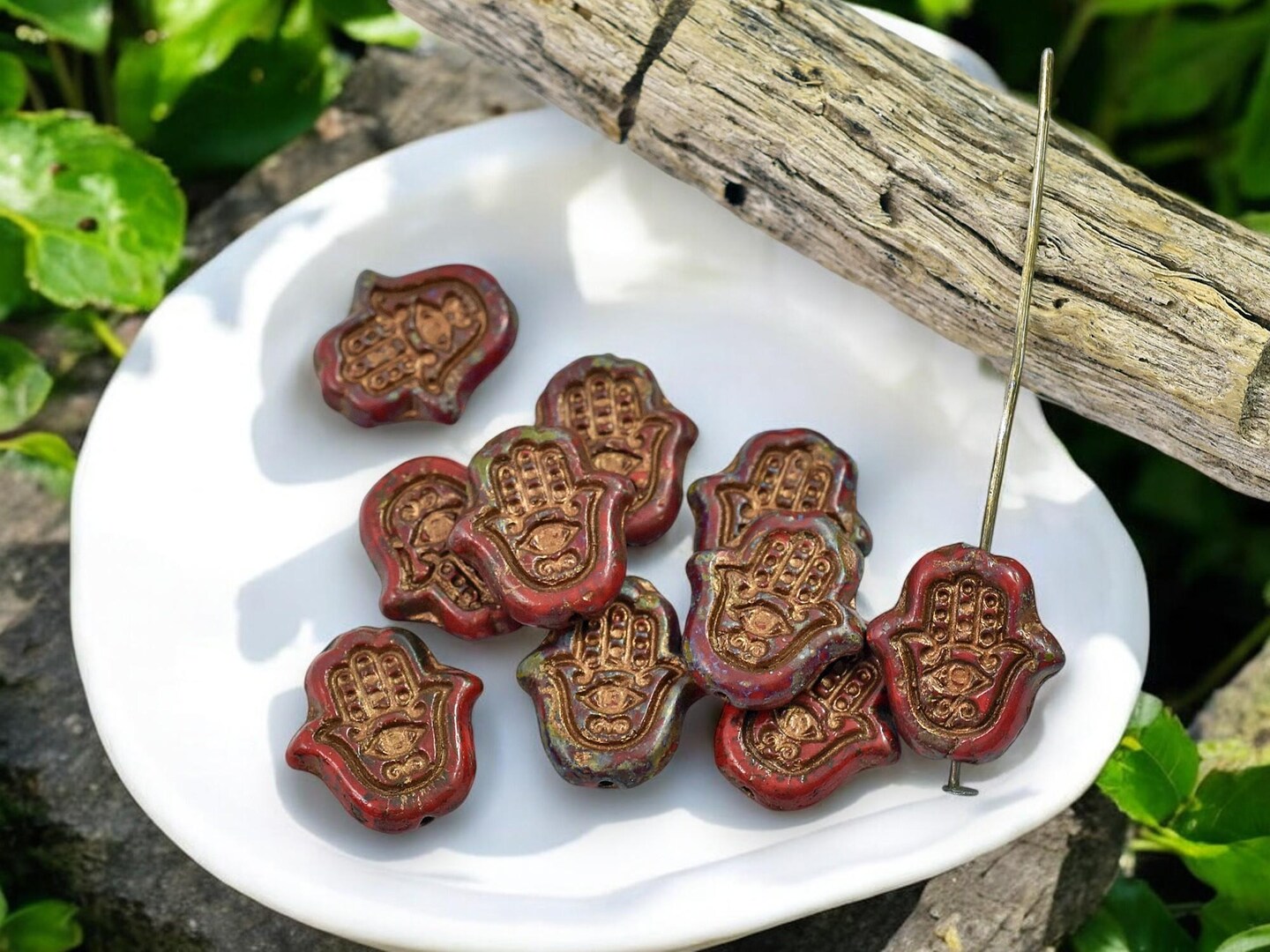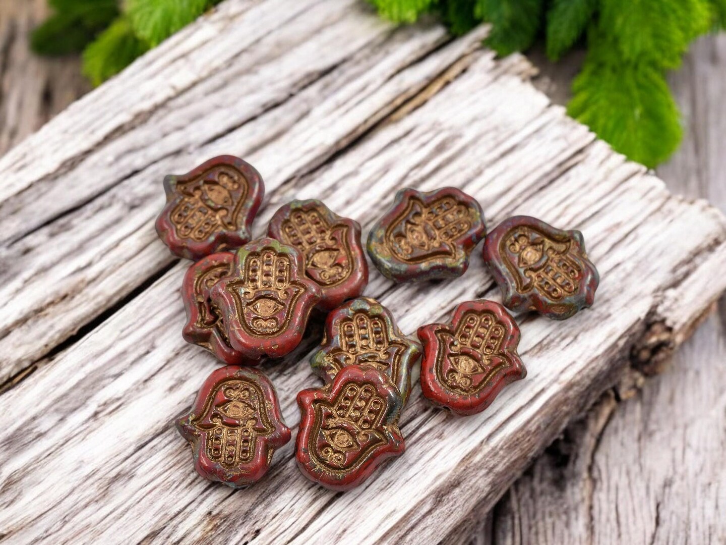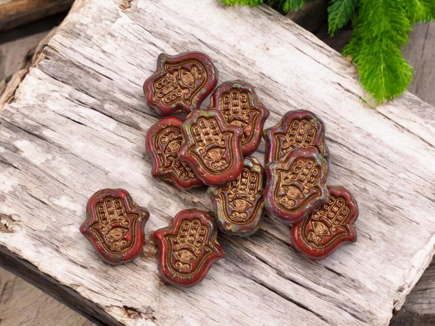 *10* 15x10mm Copper Washed Red Picasso Hamsa Hand Beads
