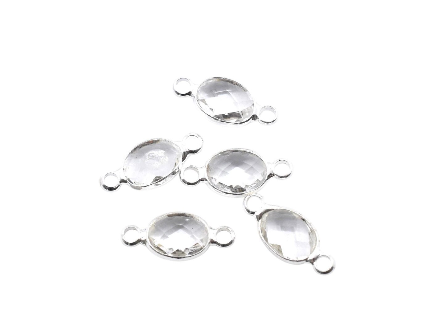 *10* 15x7mm Silver Plated Brass Surrounded Clear Glass Connectors