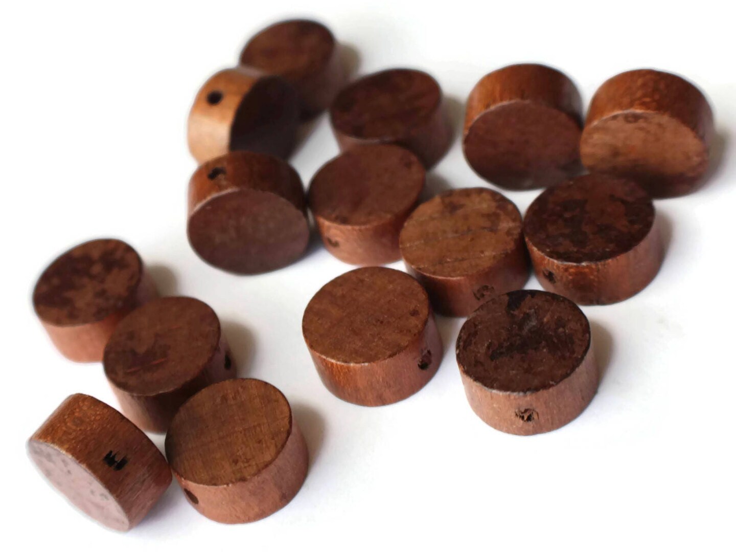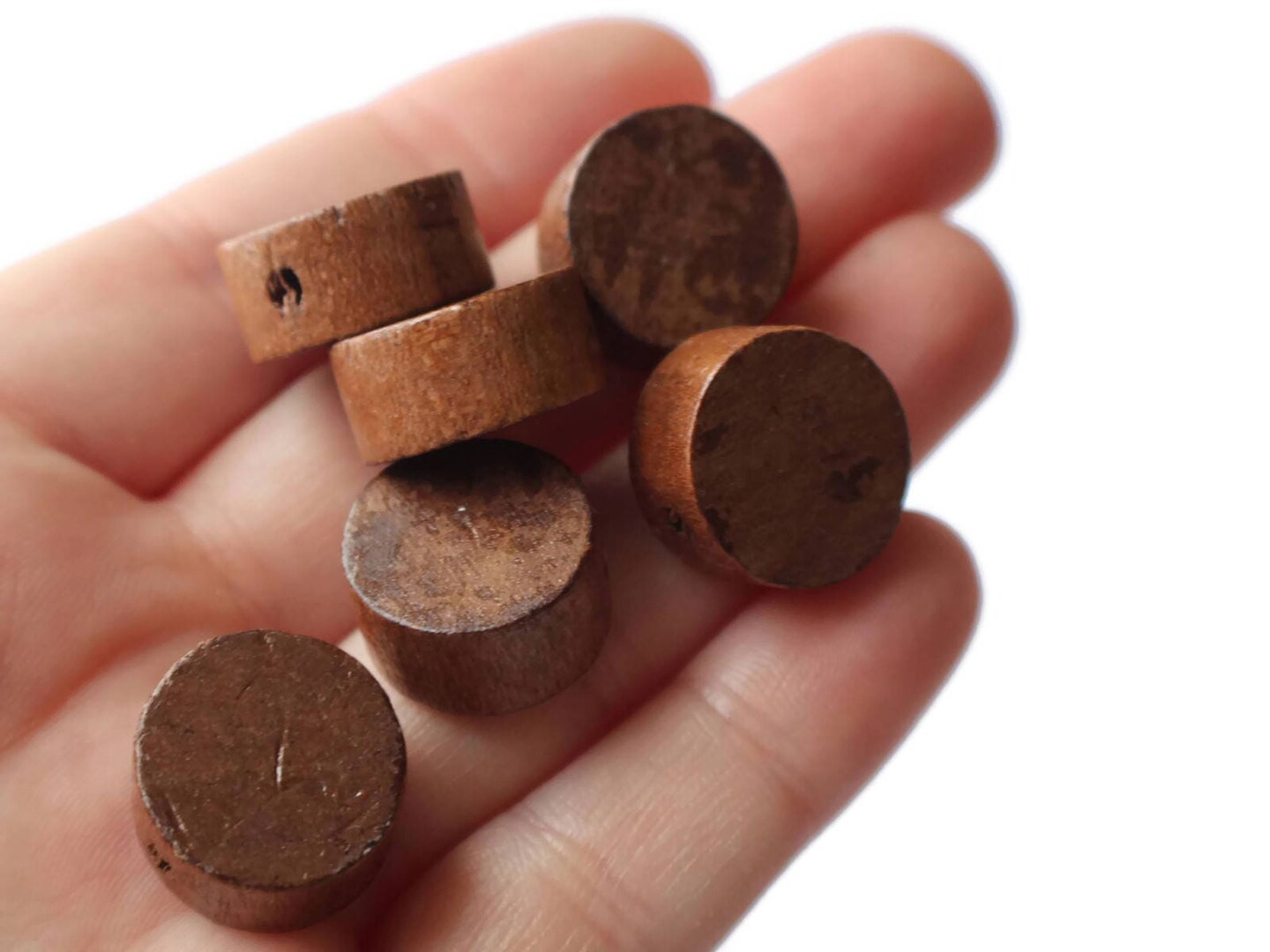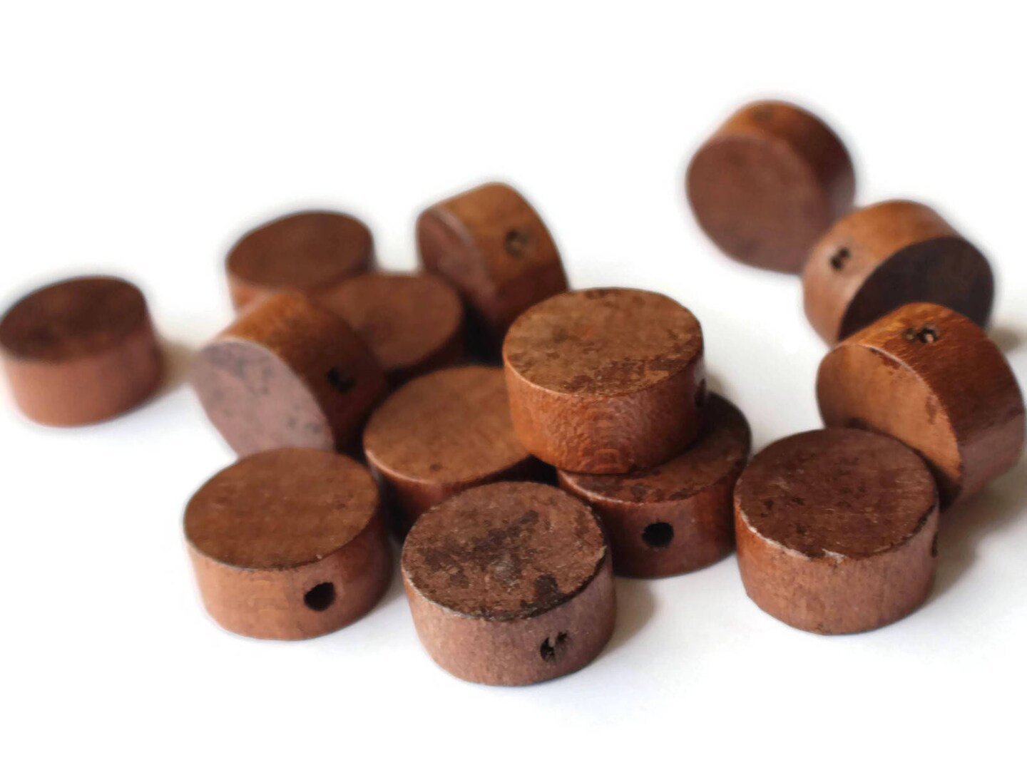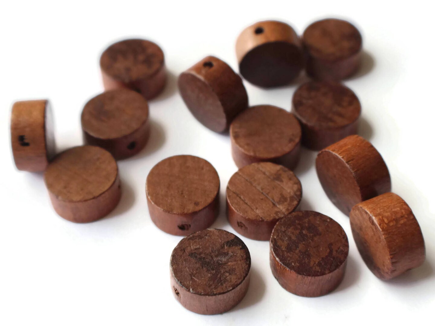 10 16mm Vintage Brown Wood Coin Beads