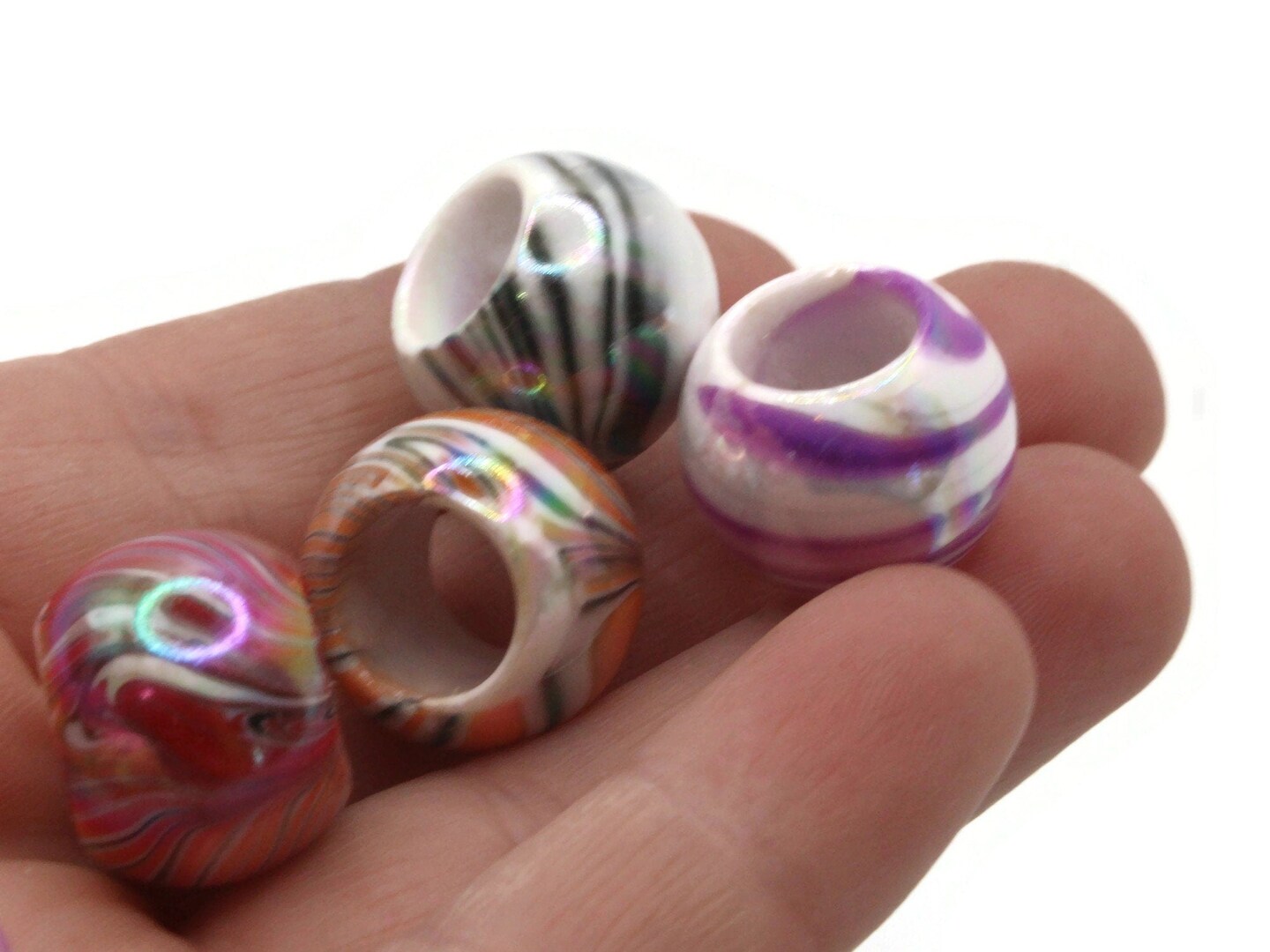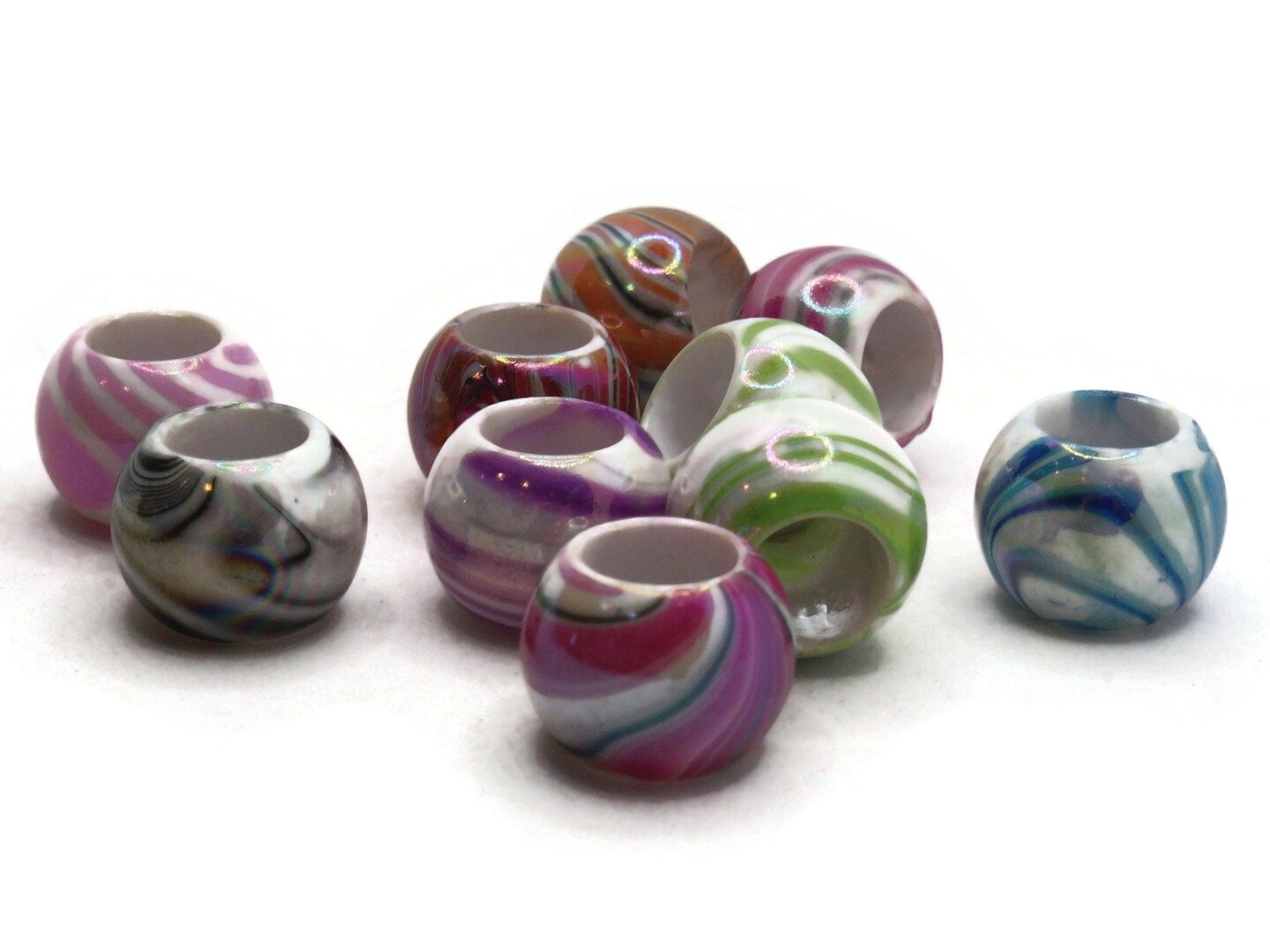 10 17mm Large Hole Macrame Mixed Marbleized Round Acrylic Beads bF1