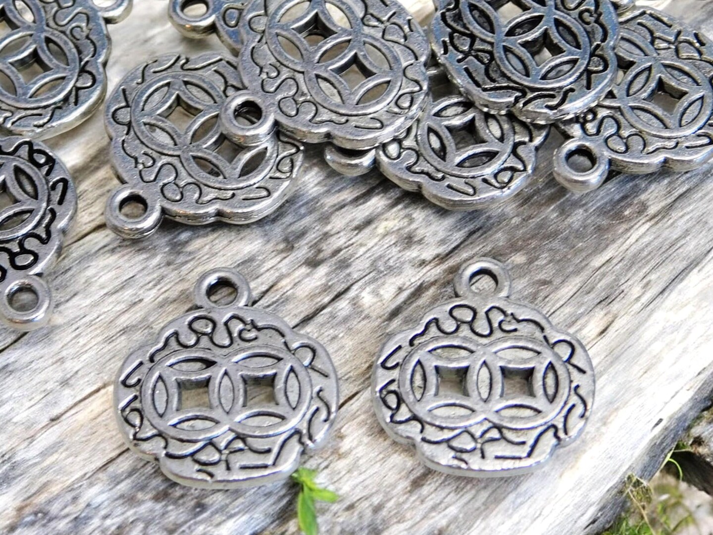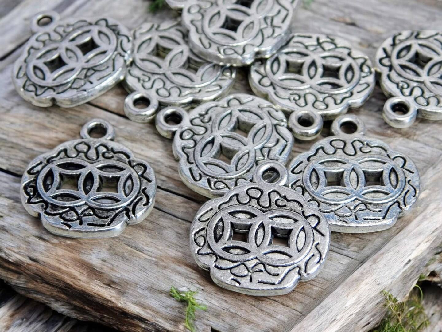 *10* 17x16mm Antique Silver Chinese Coin Charms