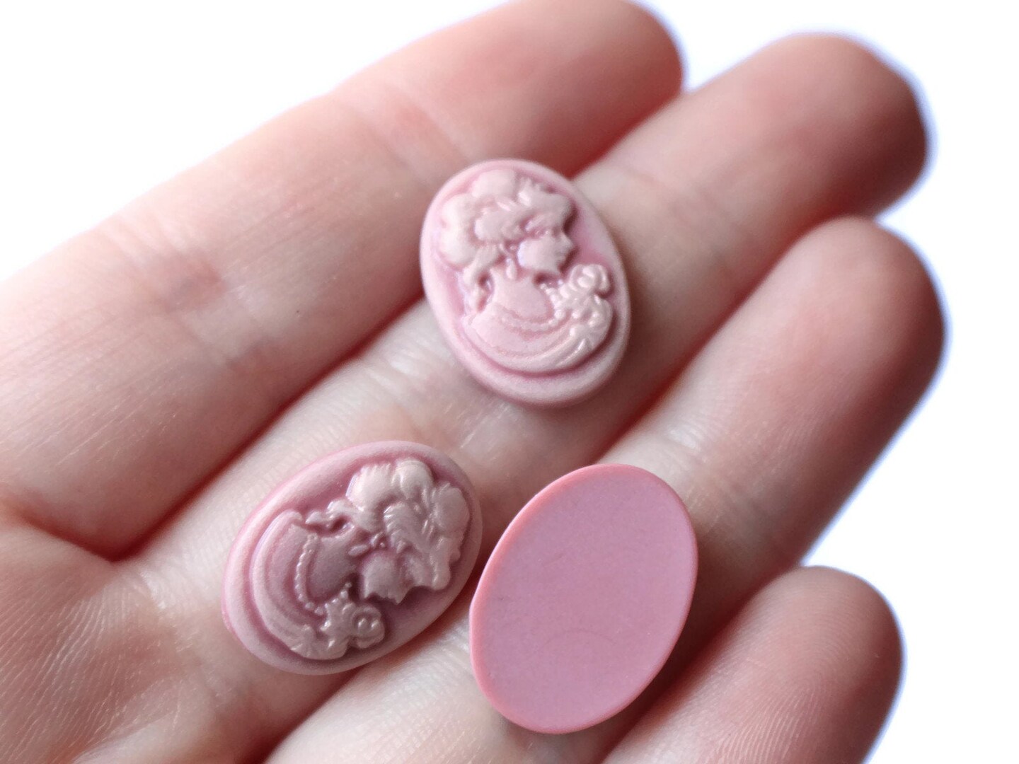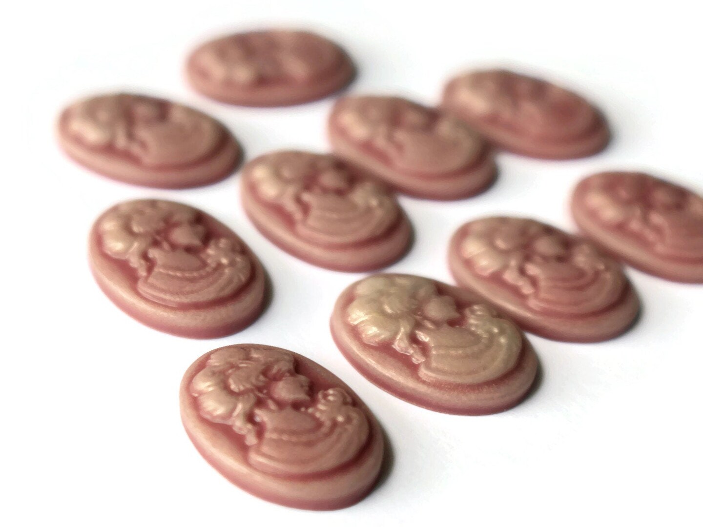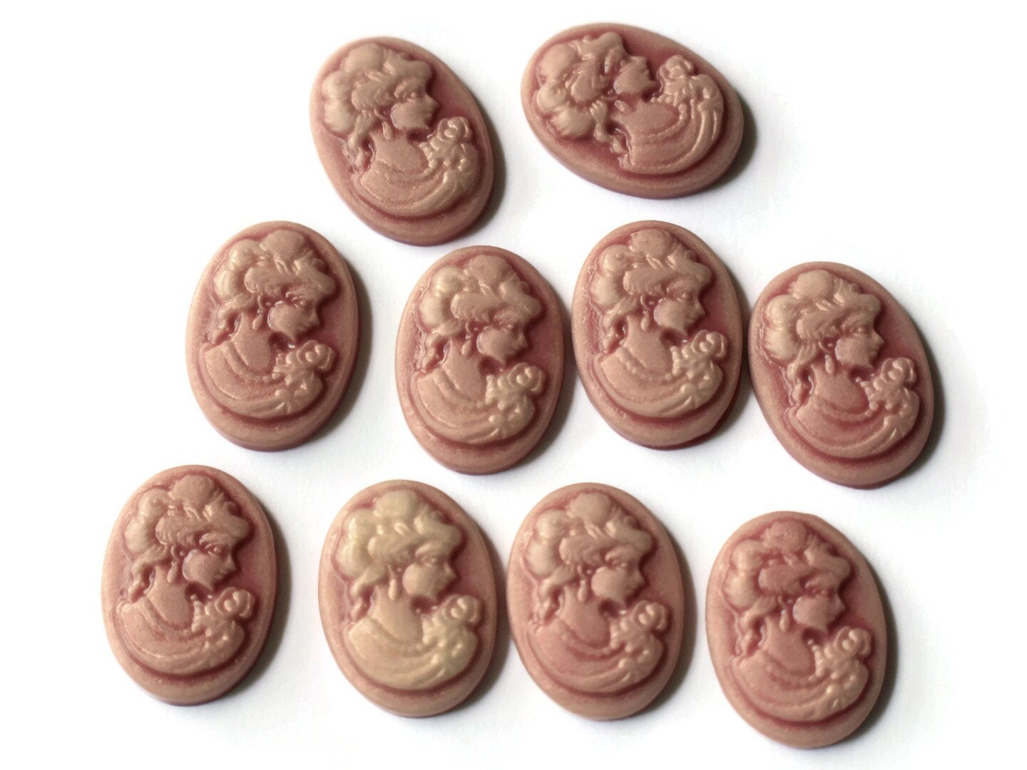 10 18mm x 13mm Dusty Pink Cameo Cabochons Victorian Woman's Face Cameo Cabochons