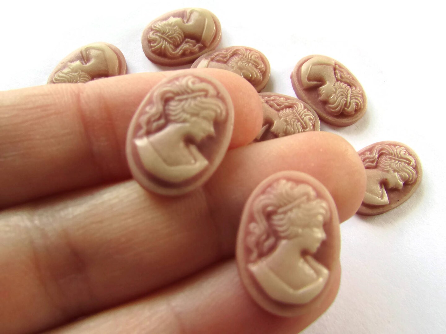 10 18mm x 13mm Dusty Rose Cameo Cabochons Resin Greek Cameo