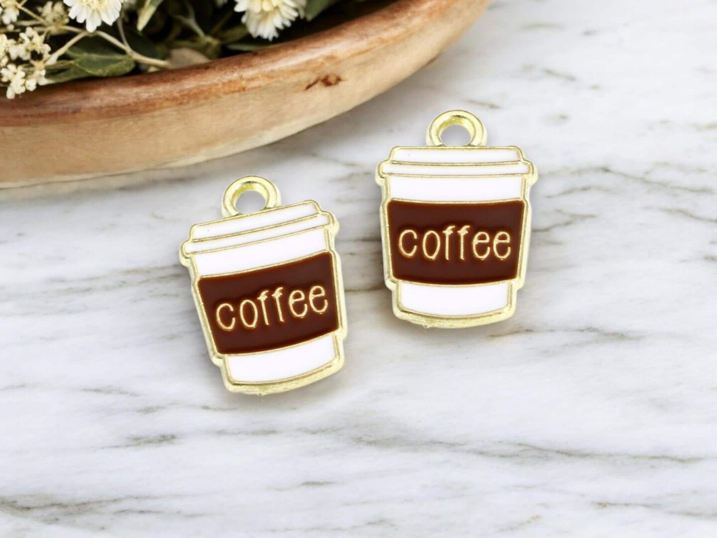 *10* 18x11mm Gold Plated "Coffee" Enamel Charms