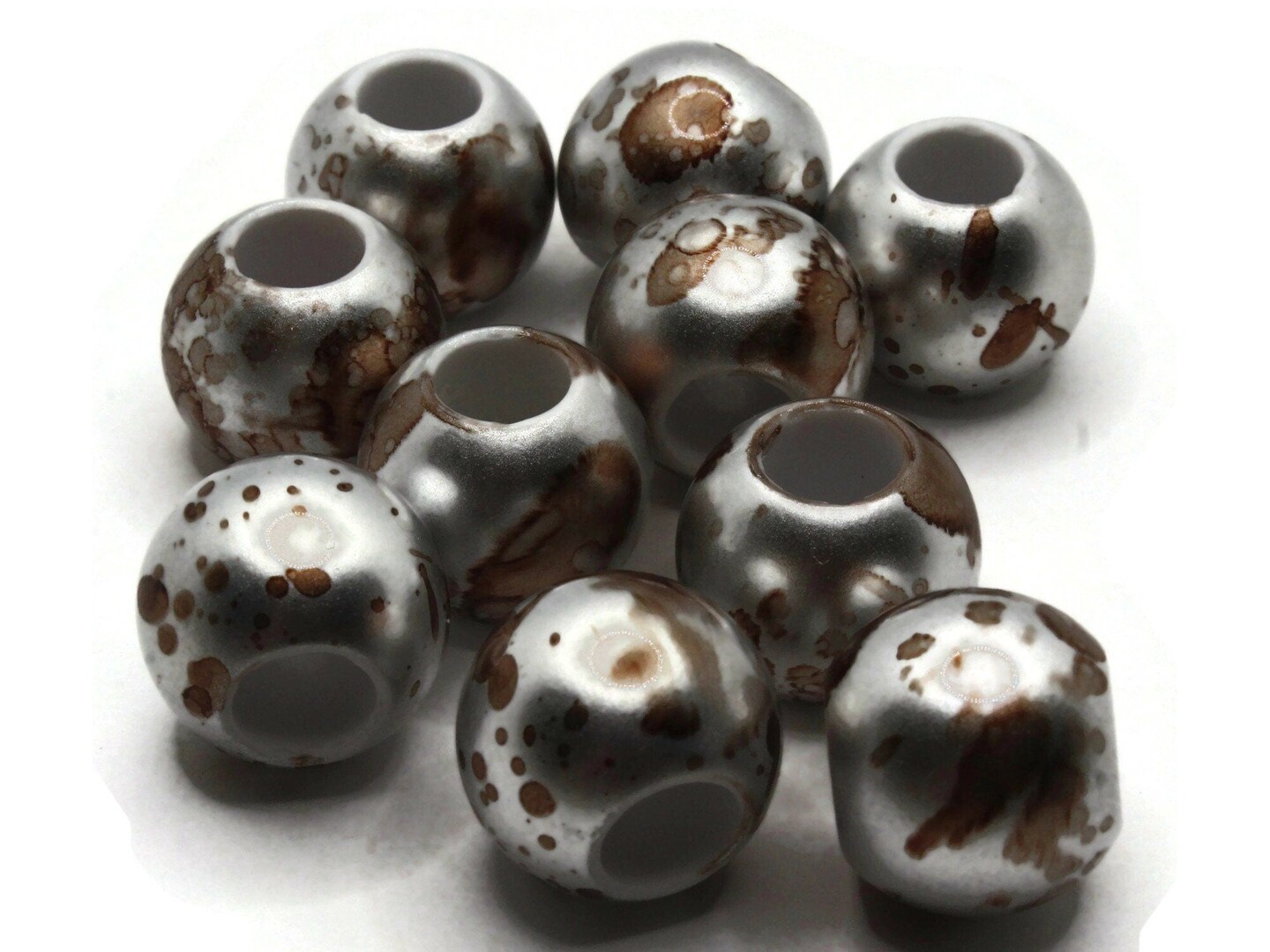 10 20mm Large Hole Macrame Silver and Brown Spatter Paint Round Plastic Beads