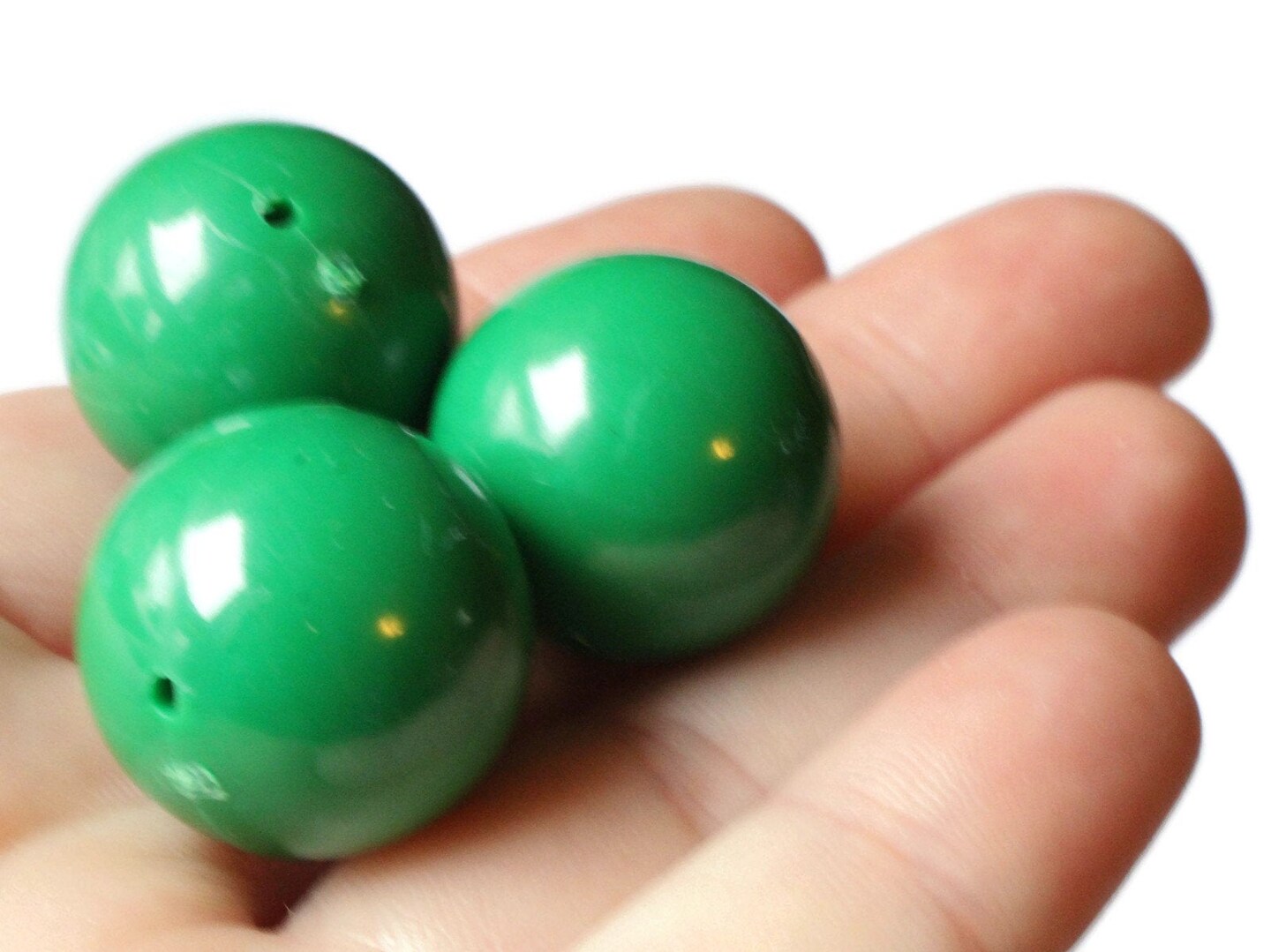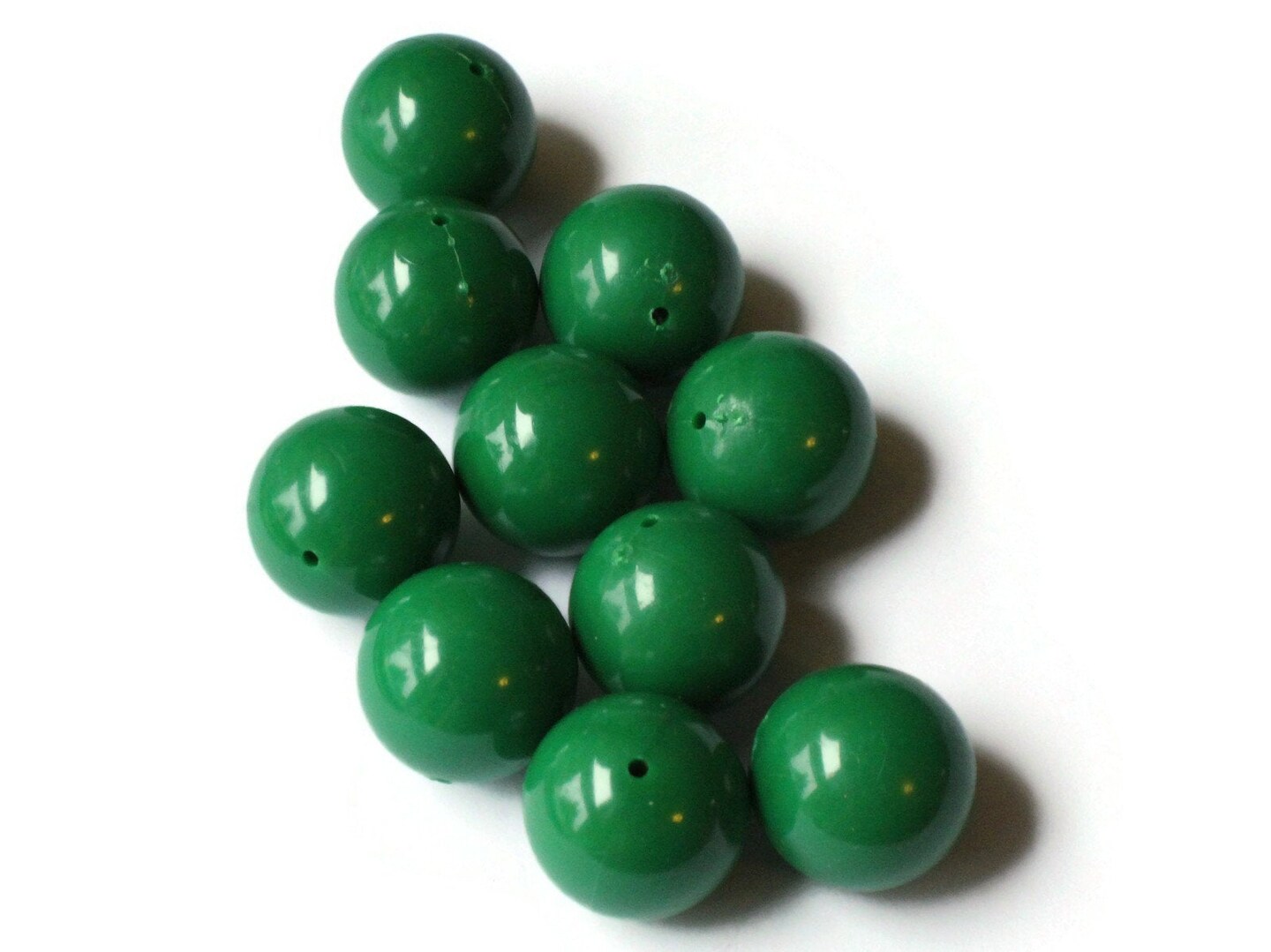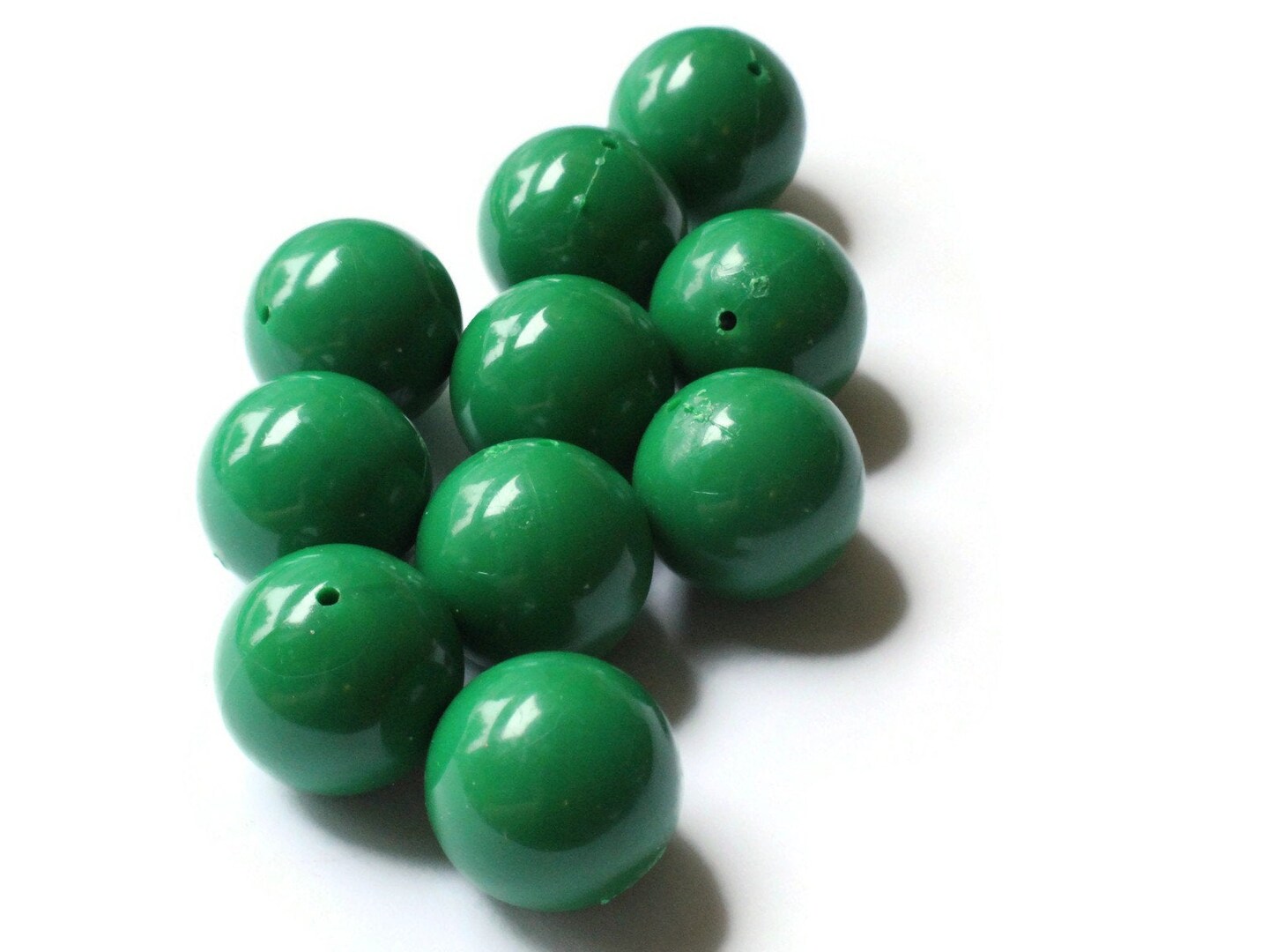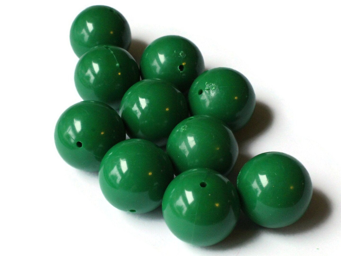 10 20mm Smooth Round Dark Green Beads Vintage Plastic Beads Lightweight Sturdy Beads