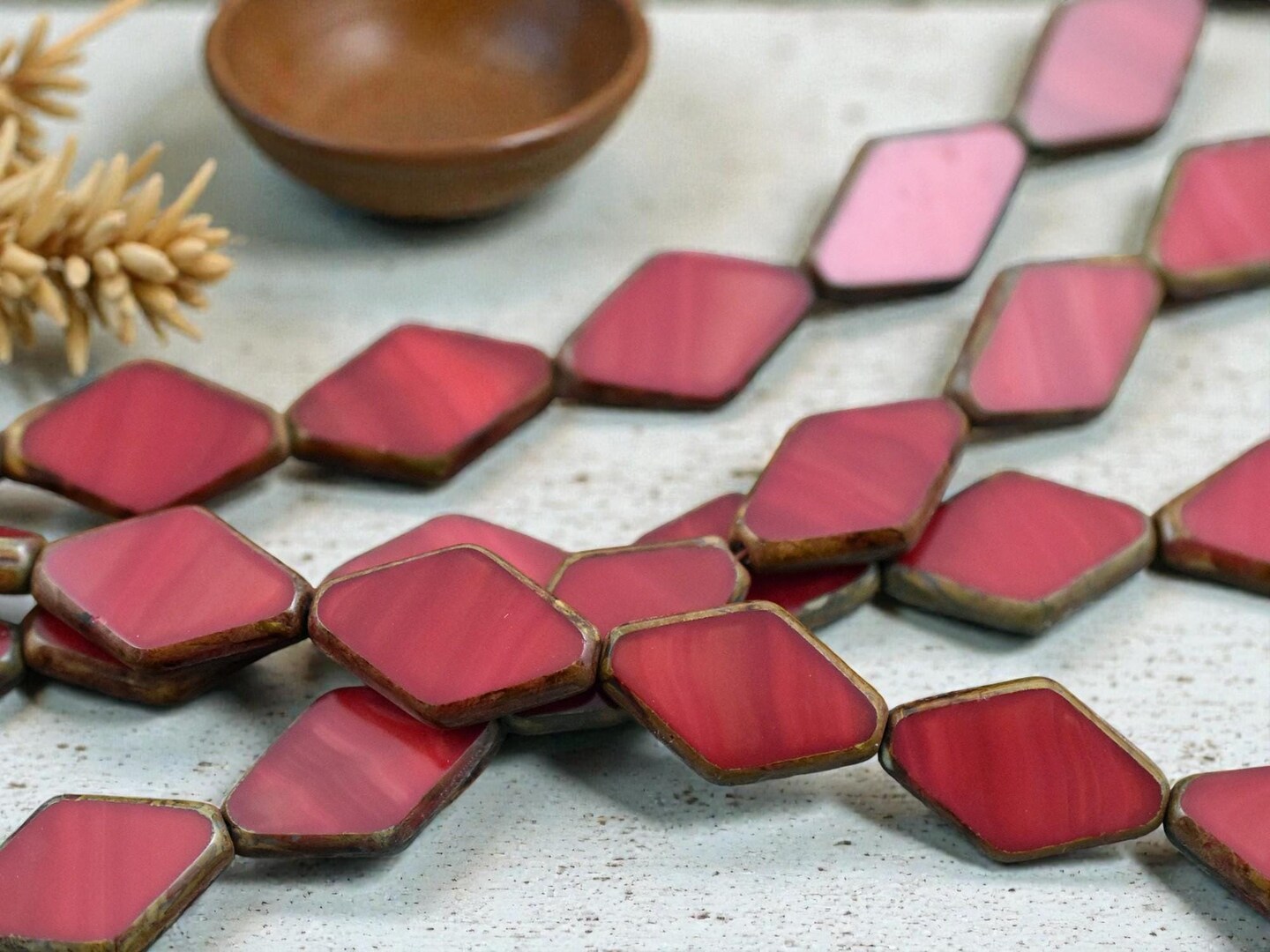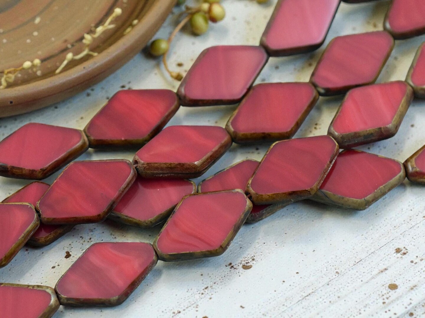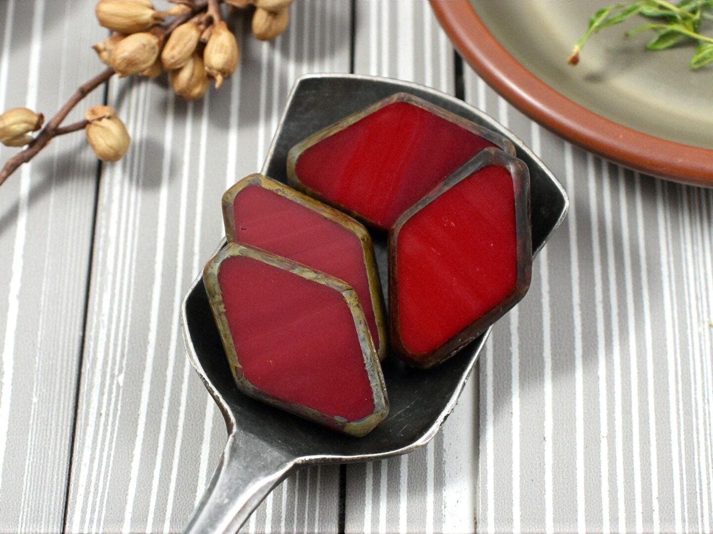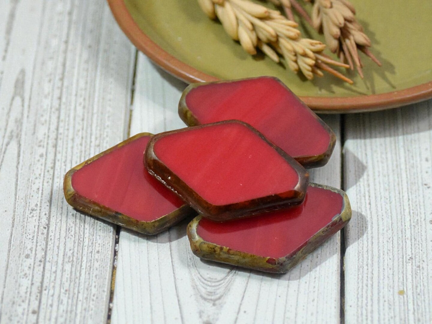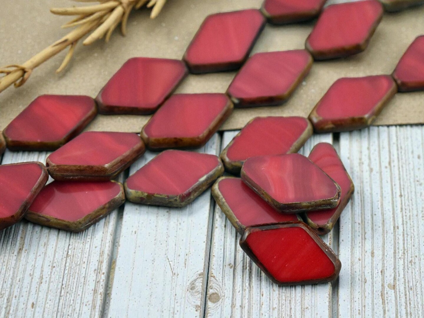 *10* 20x13mm Opaque Red Picasso Table Cut Diamond Beads