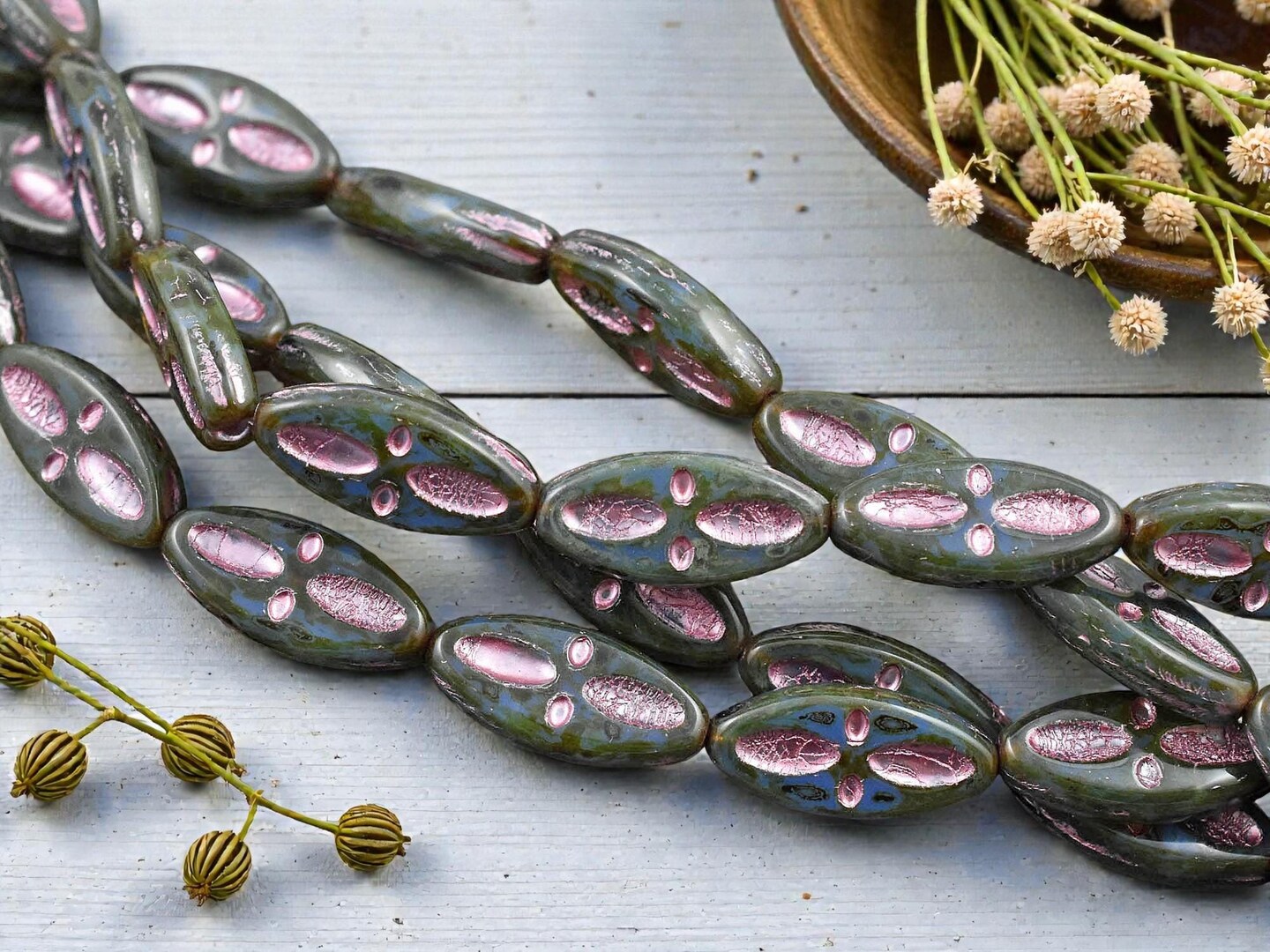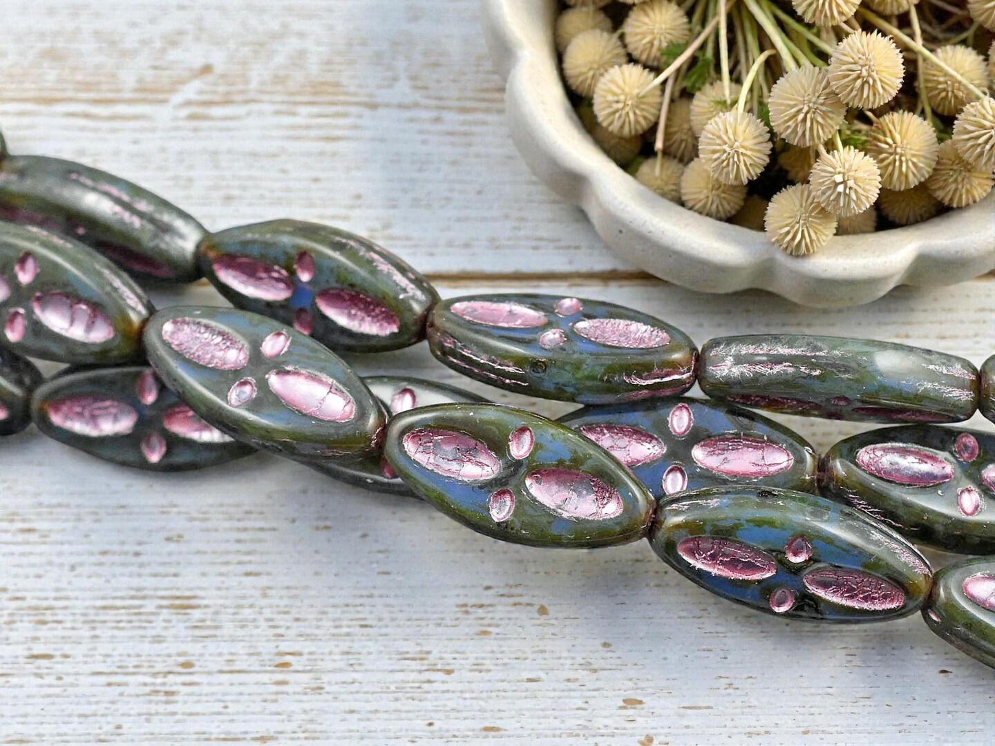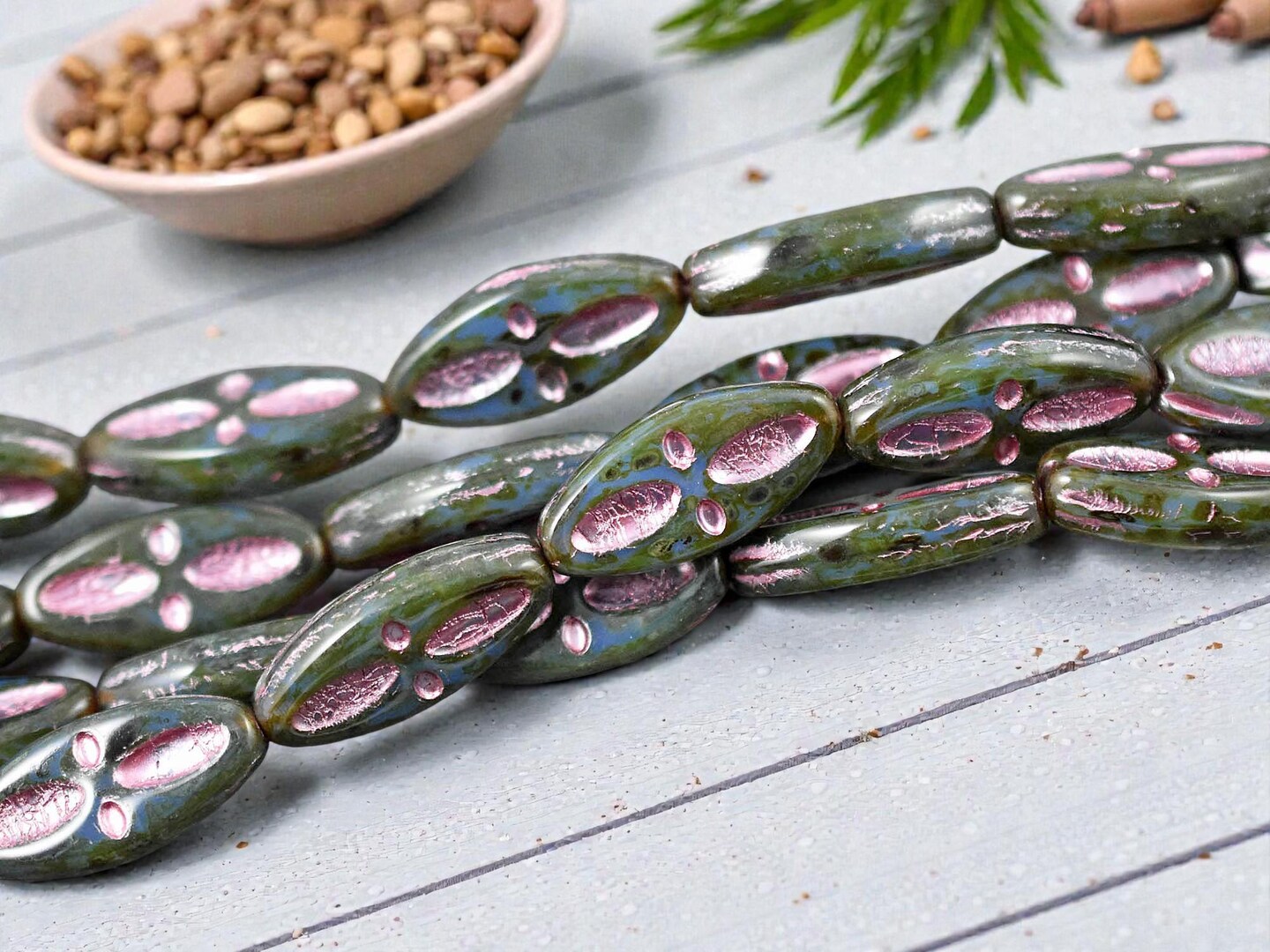 *10* 20x9mm Metallic Pink Washed Blue Aqua Picasso Marquise Oval Beads