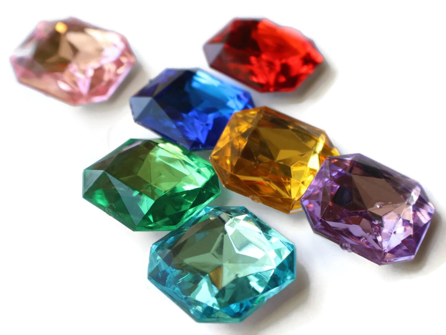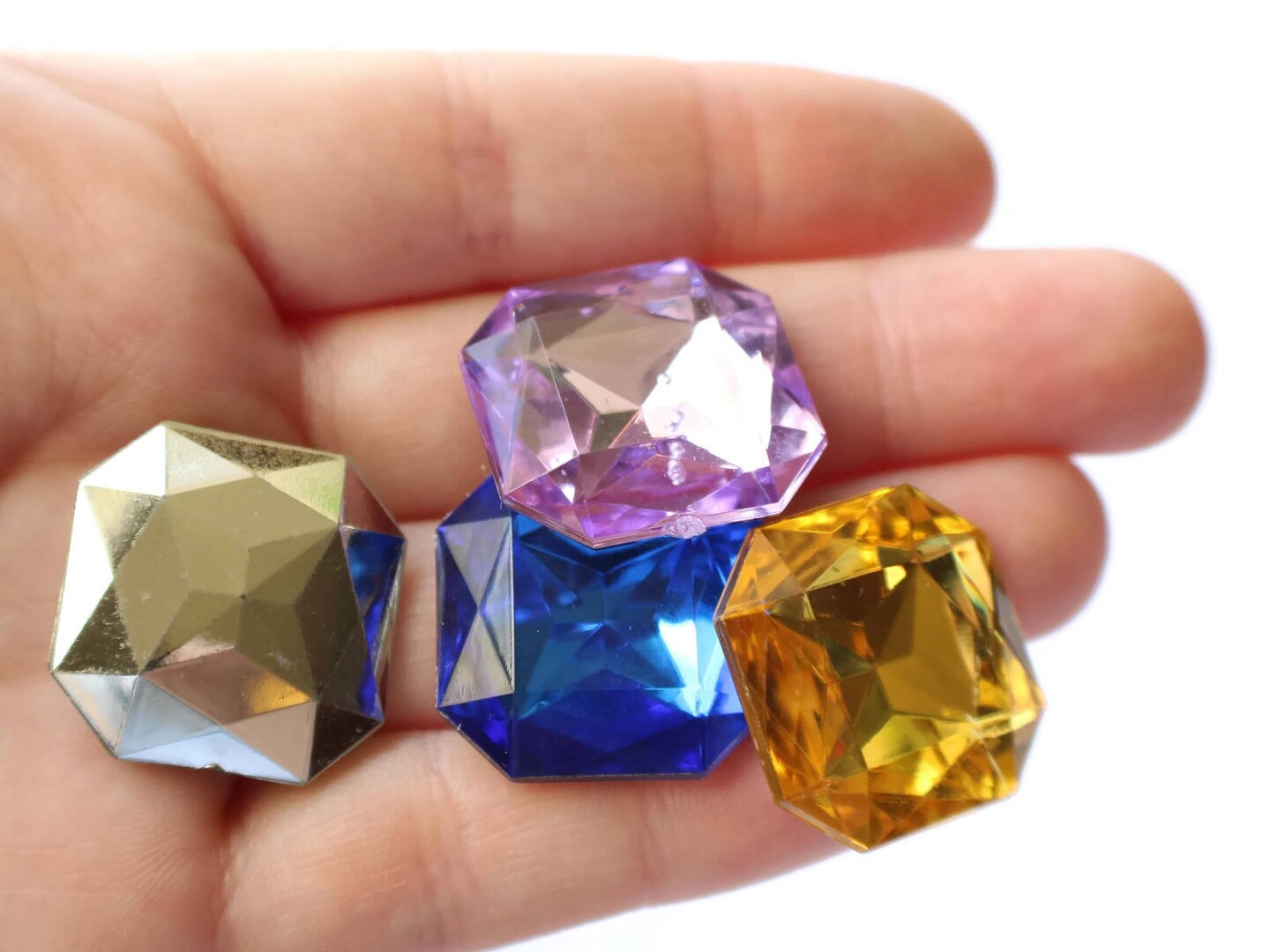 10 23mm Mixed Color Square Jewel Plastic Gems Silver Foil Back Cabochons