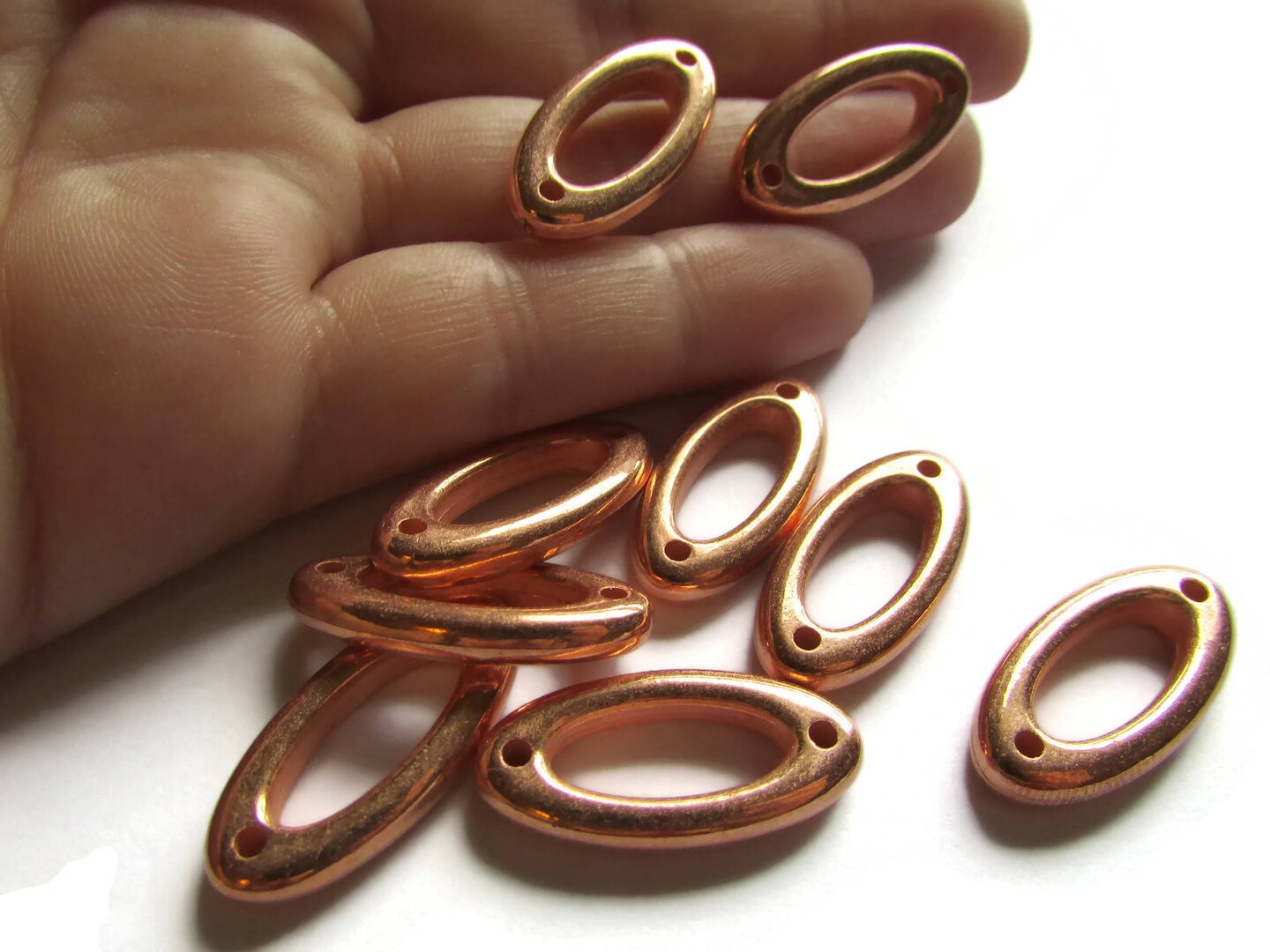 10 25mm Vintage Red Copper Ellipse Donut Beads - Copper Plated Plastic Oval Ring Beads