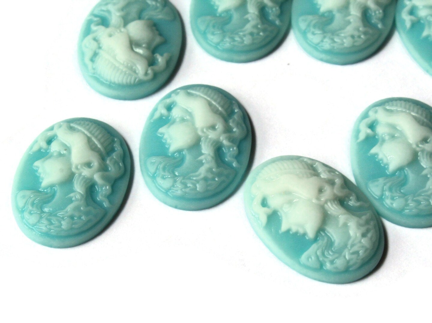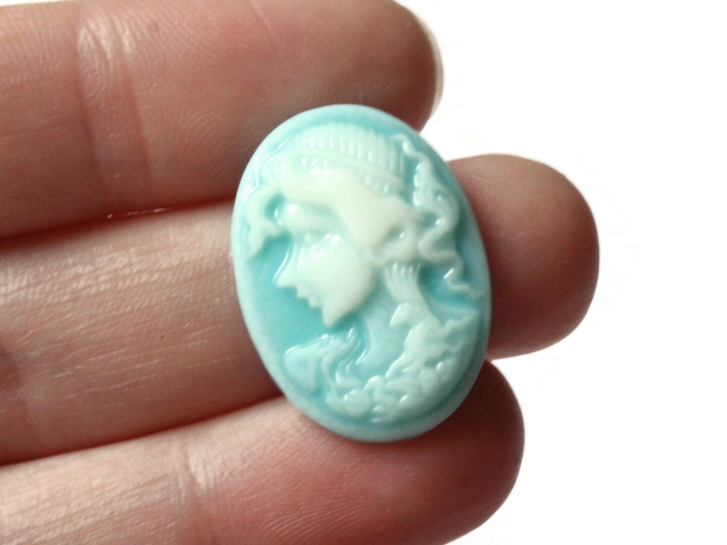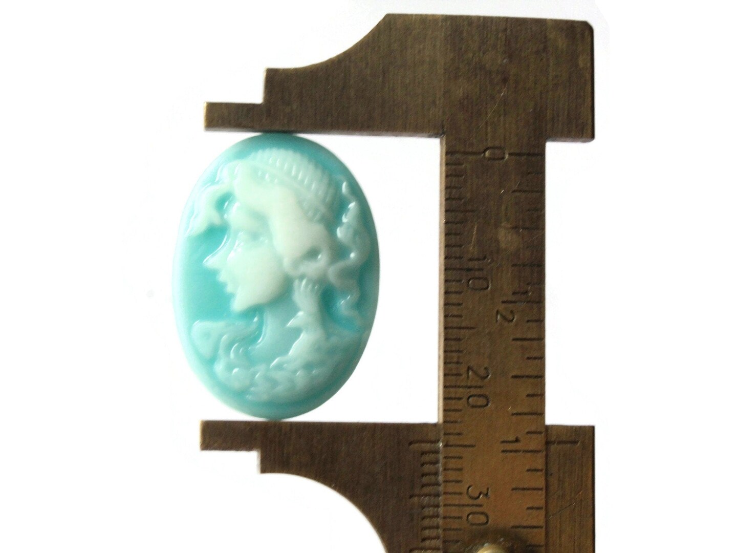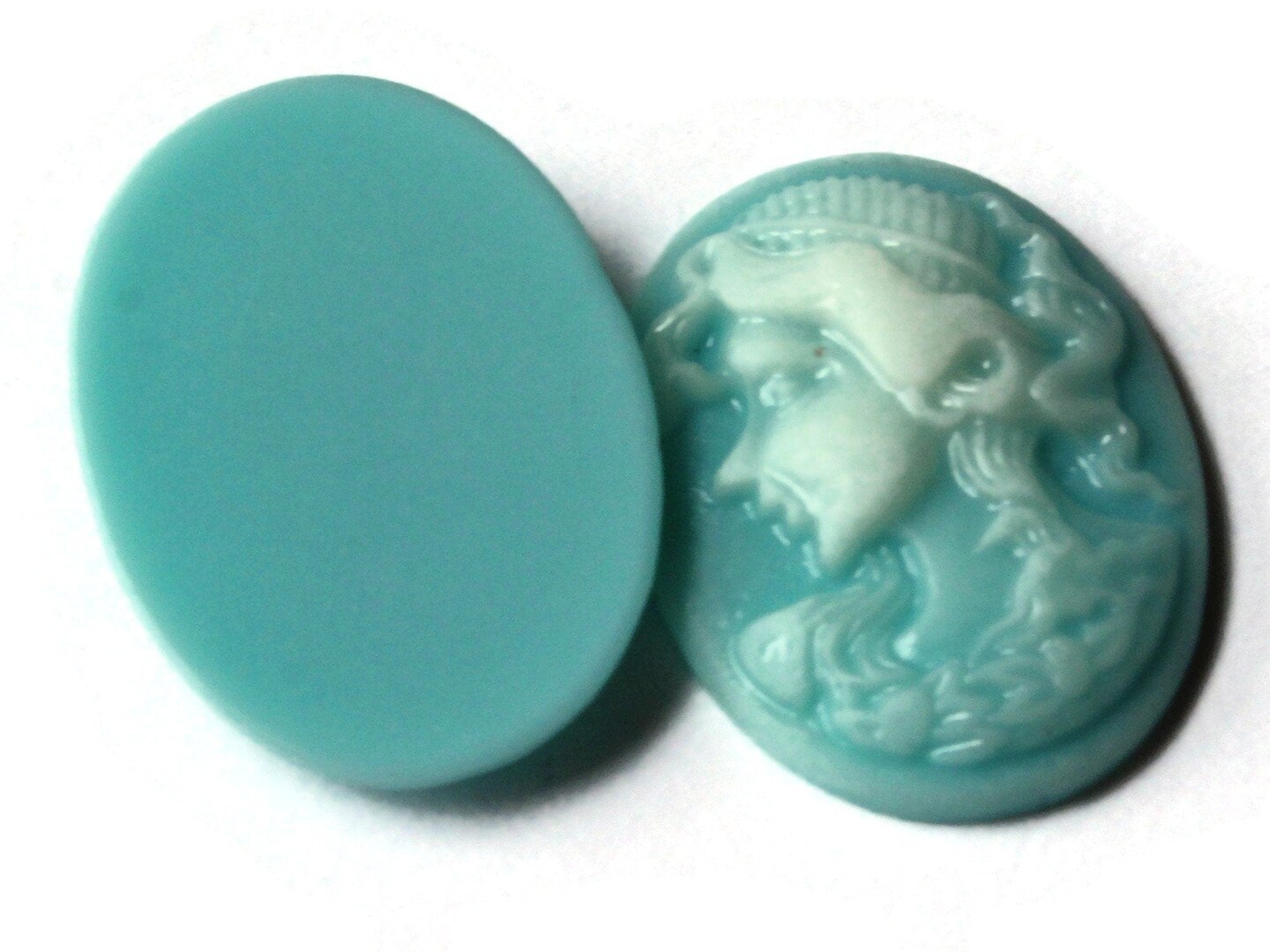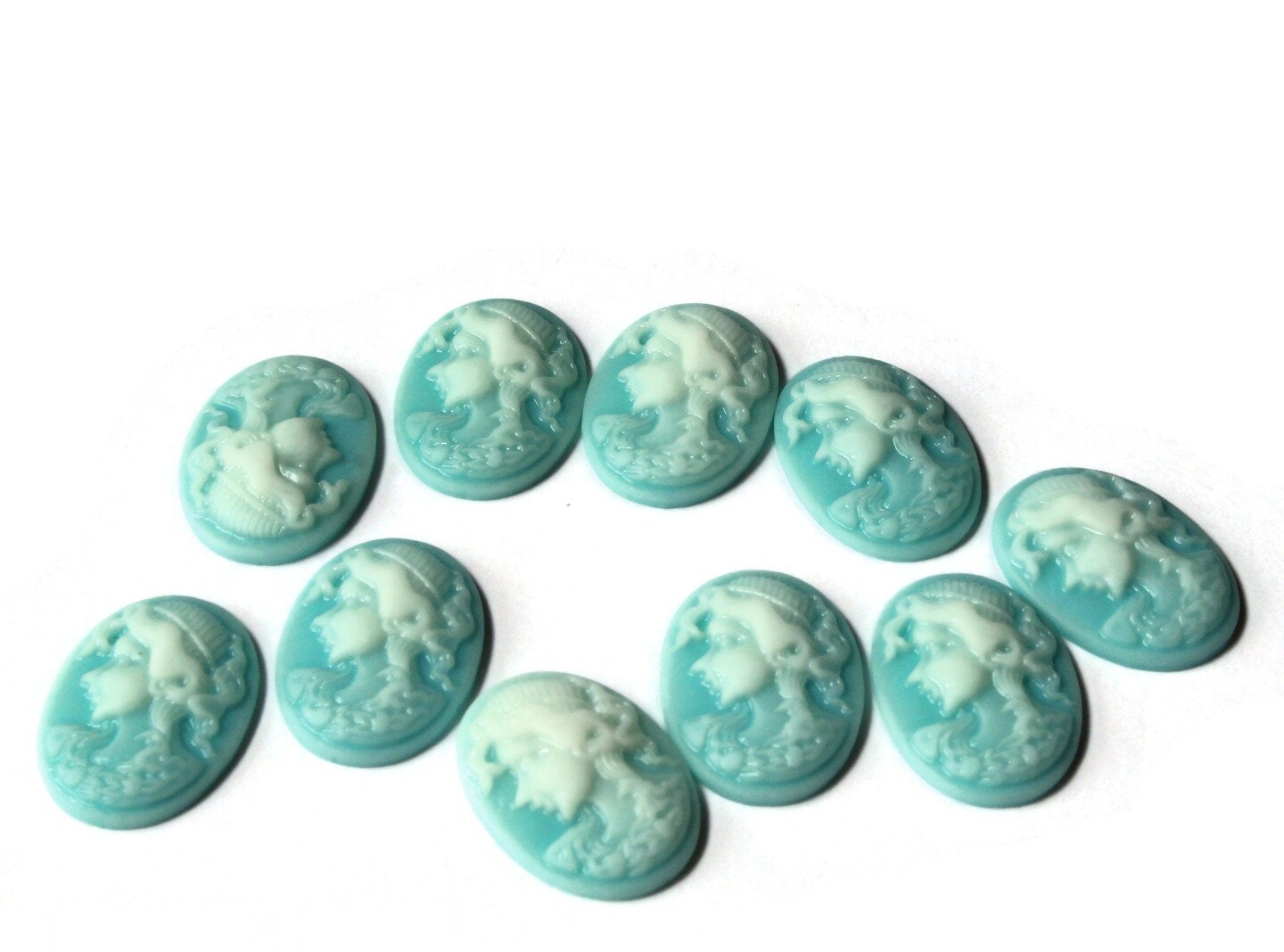 10 25mm x 18mm Sky Blue Woman's Face Resin Cameo Cabochons