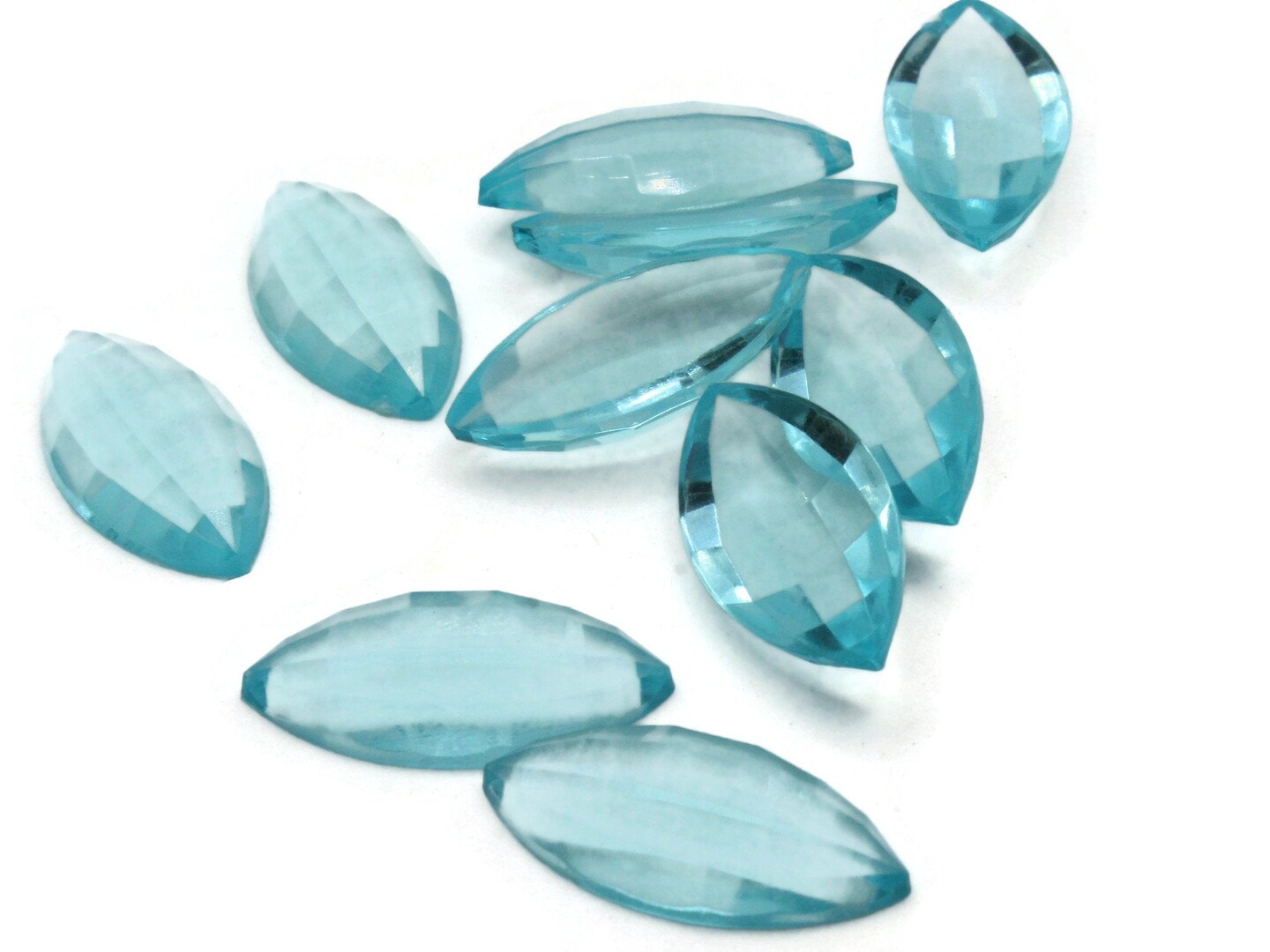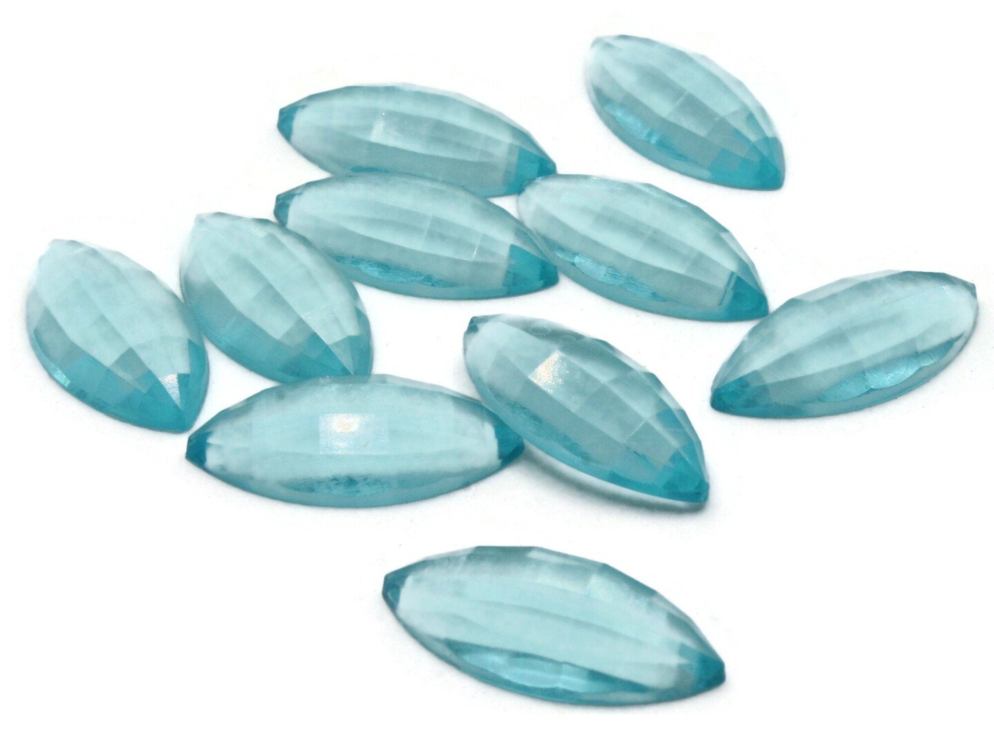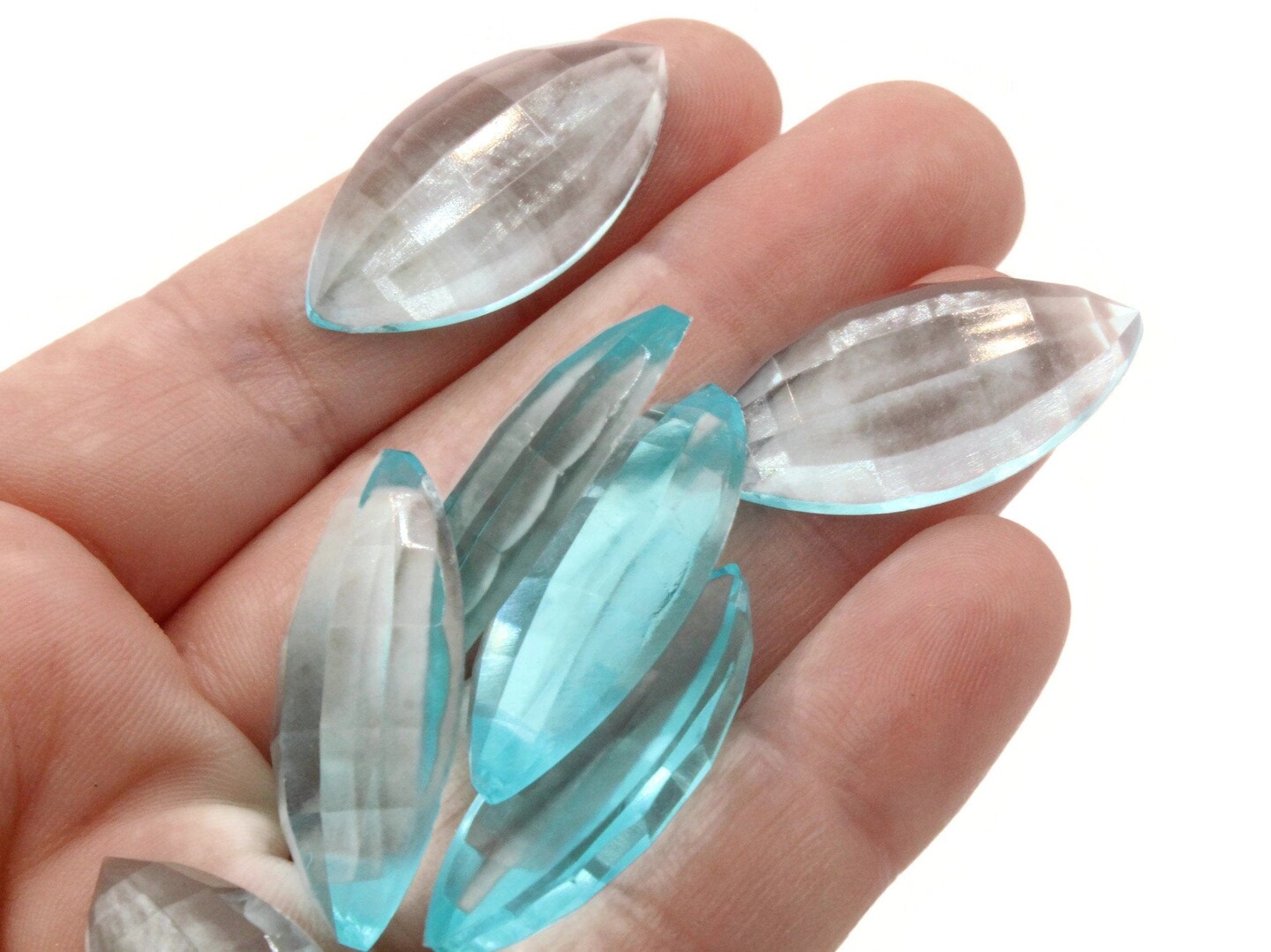 10 30mm Faceted Marquis Clear Blue Vintage Plastic Cabochons