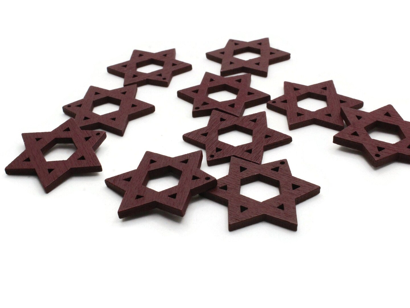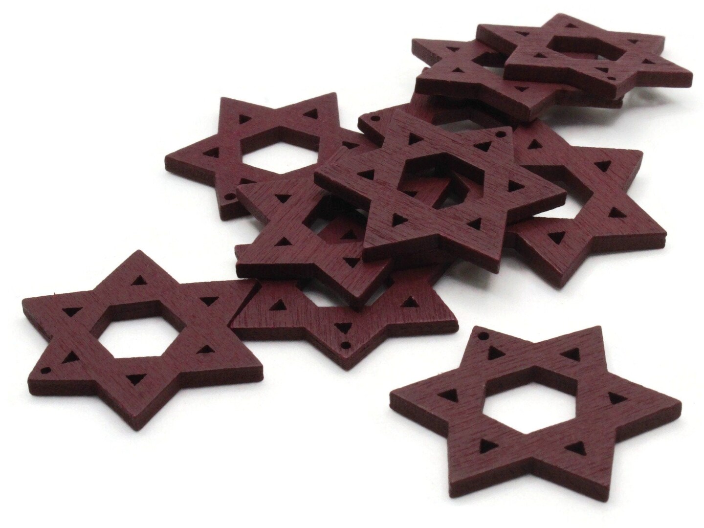 10 32mm Dark Brown Star of David Wood Pendants - Wooden Beads