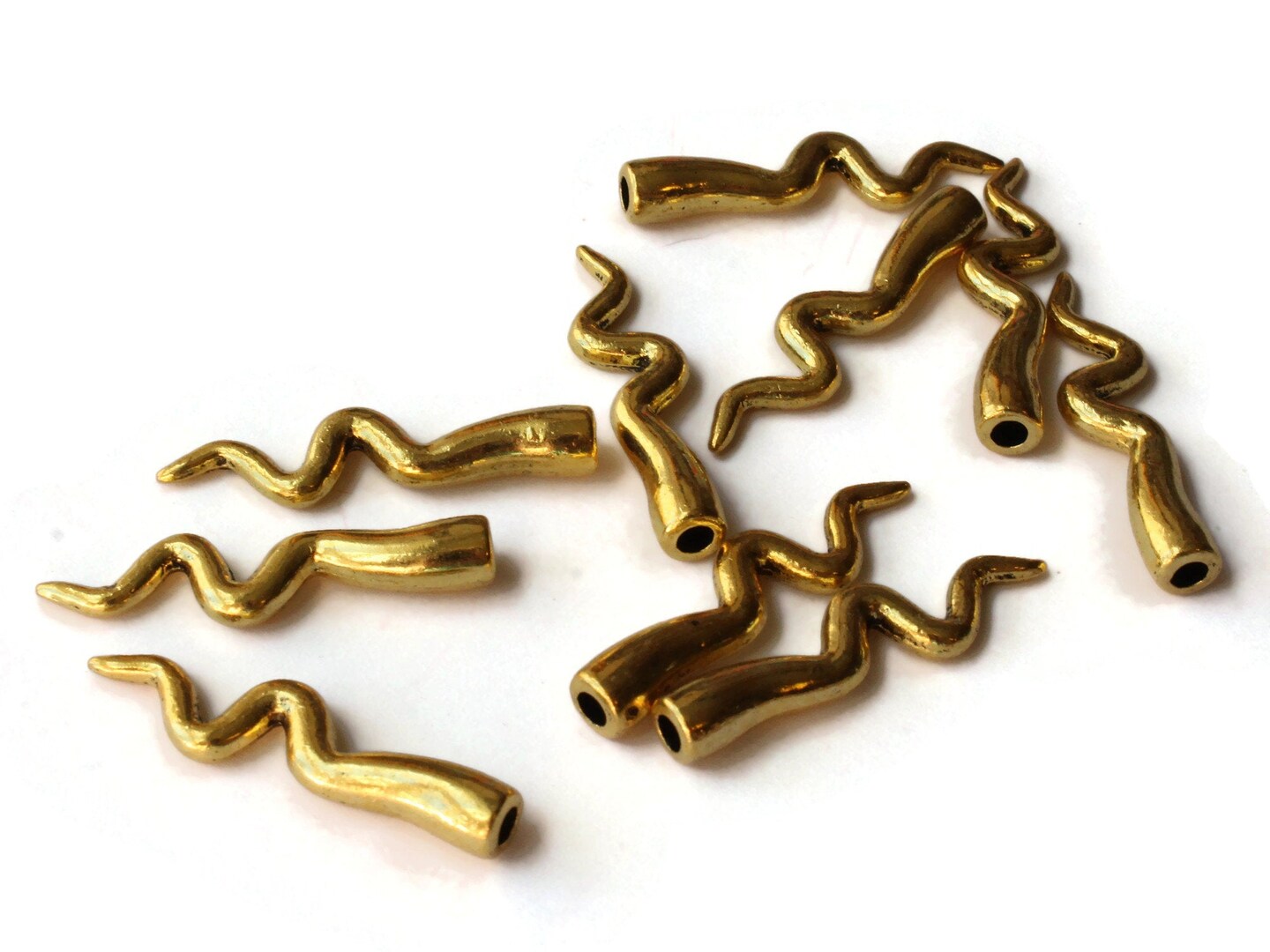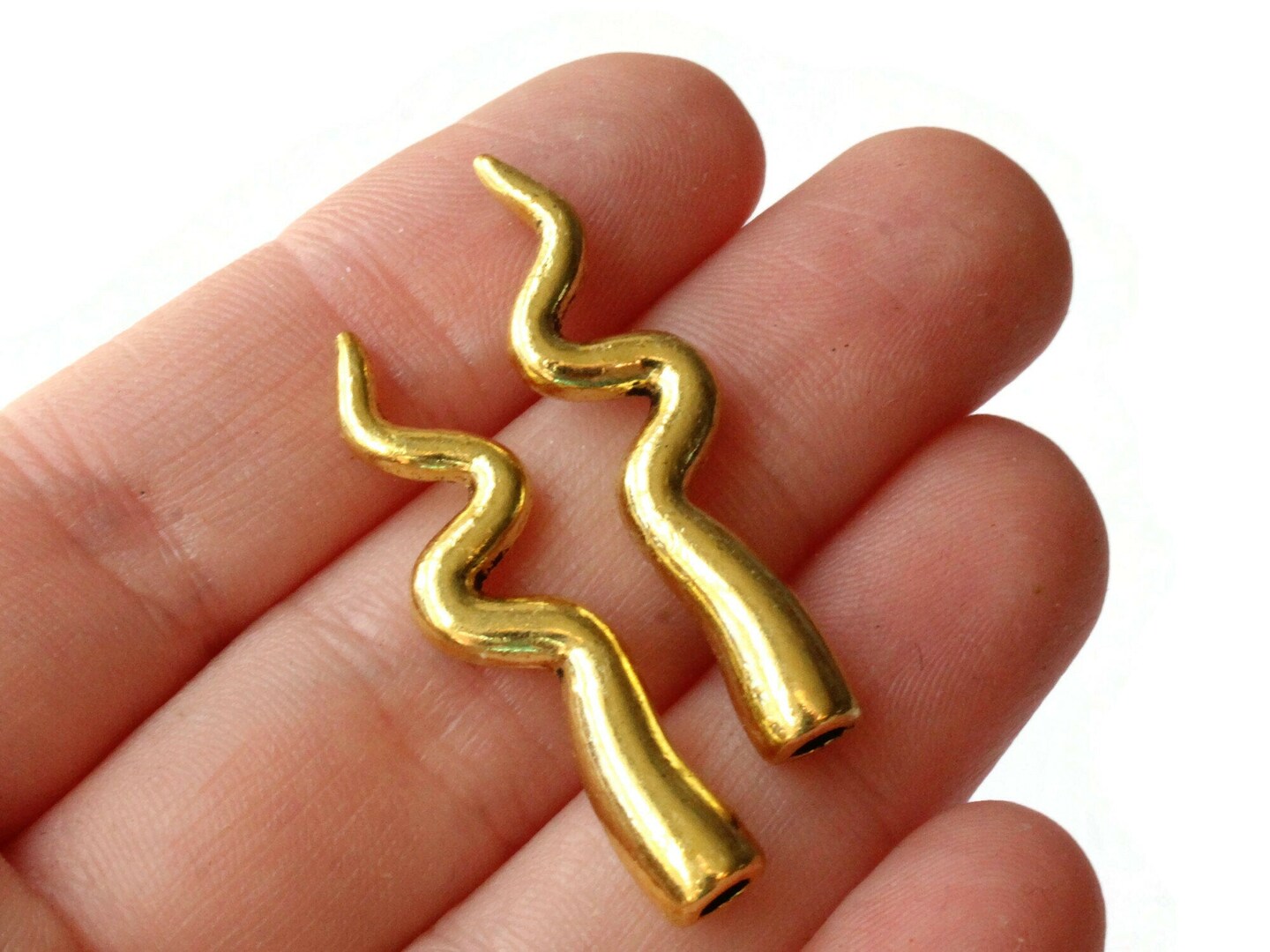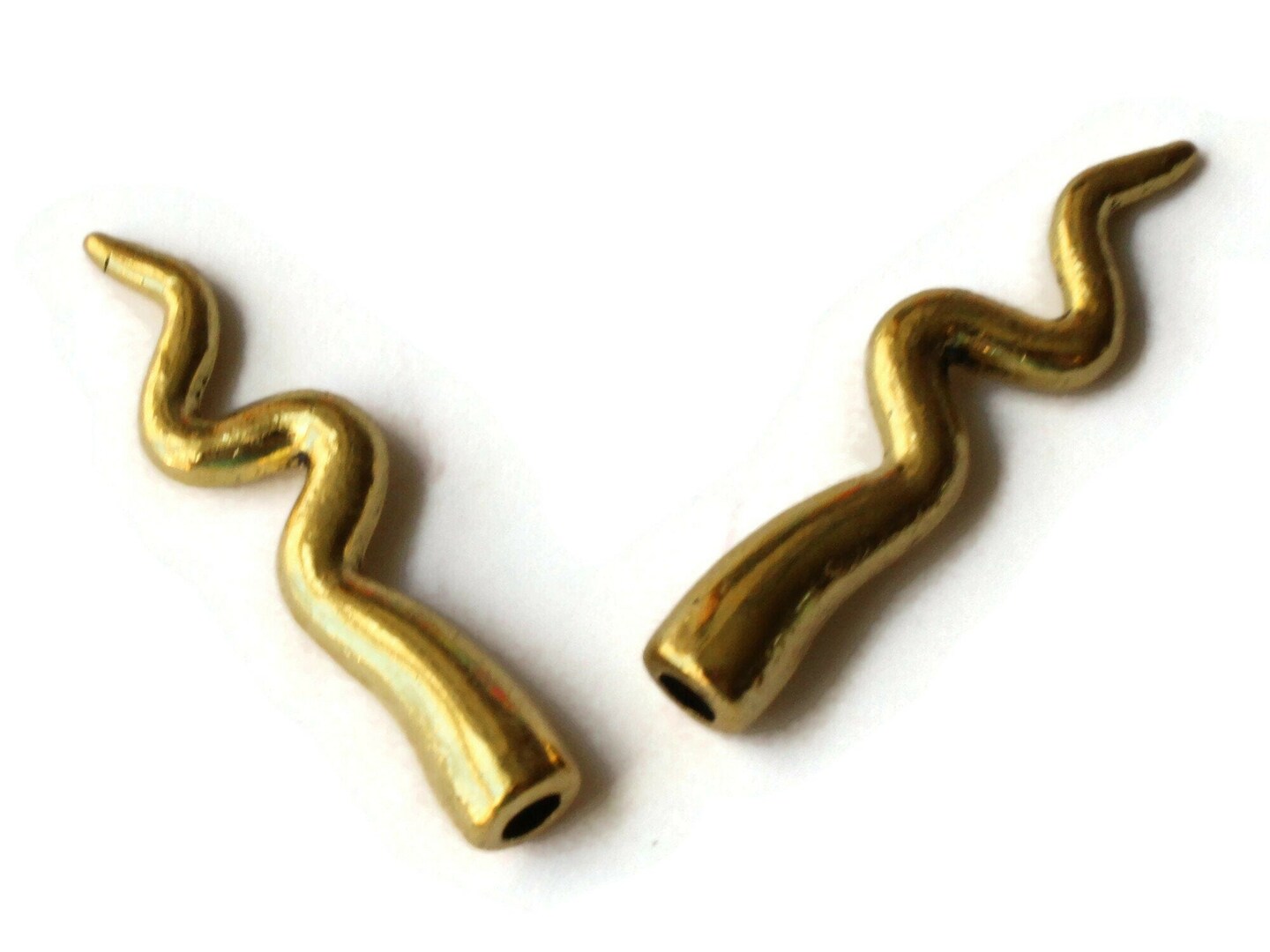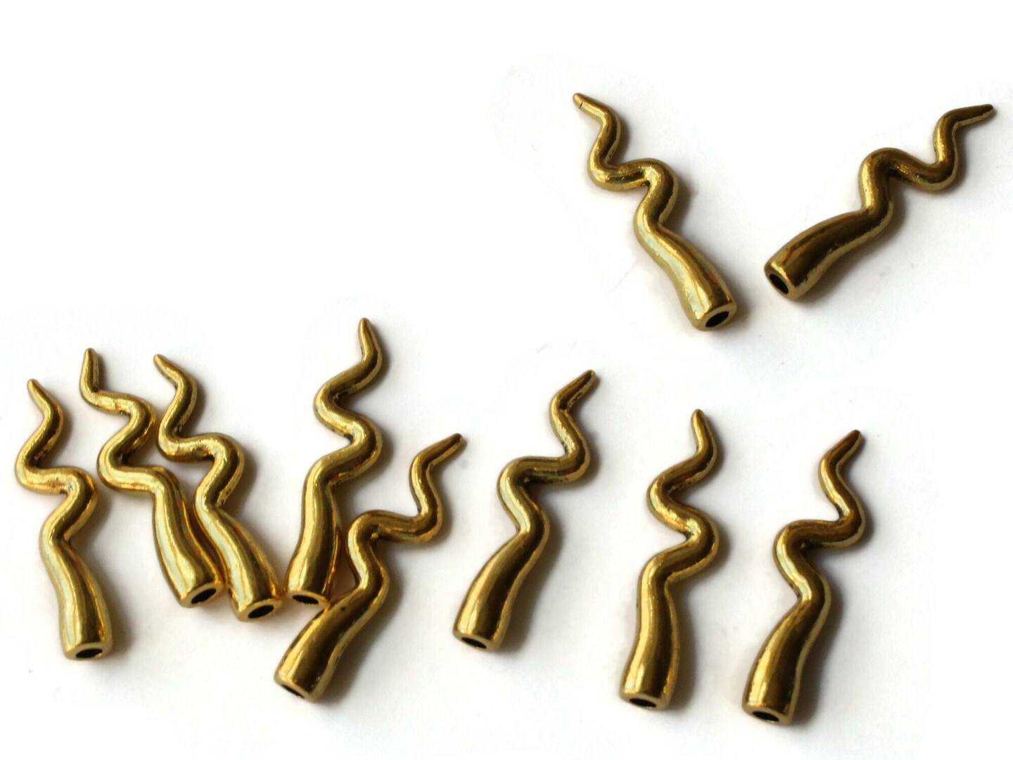10 35mm Golden Half Drilled Horn or Antler Beads Spike Beads