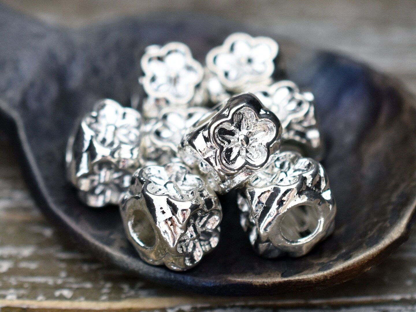 *10* 8x7mm Platinum Silver Large Hole Floral Cube Beads