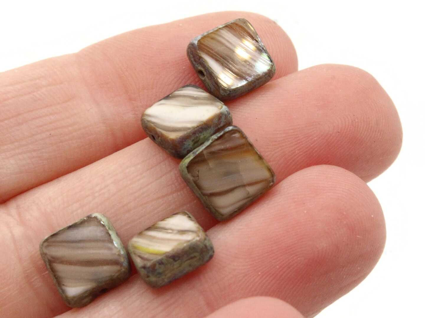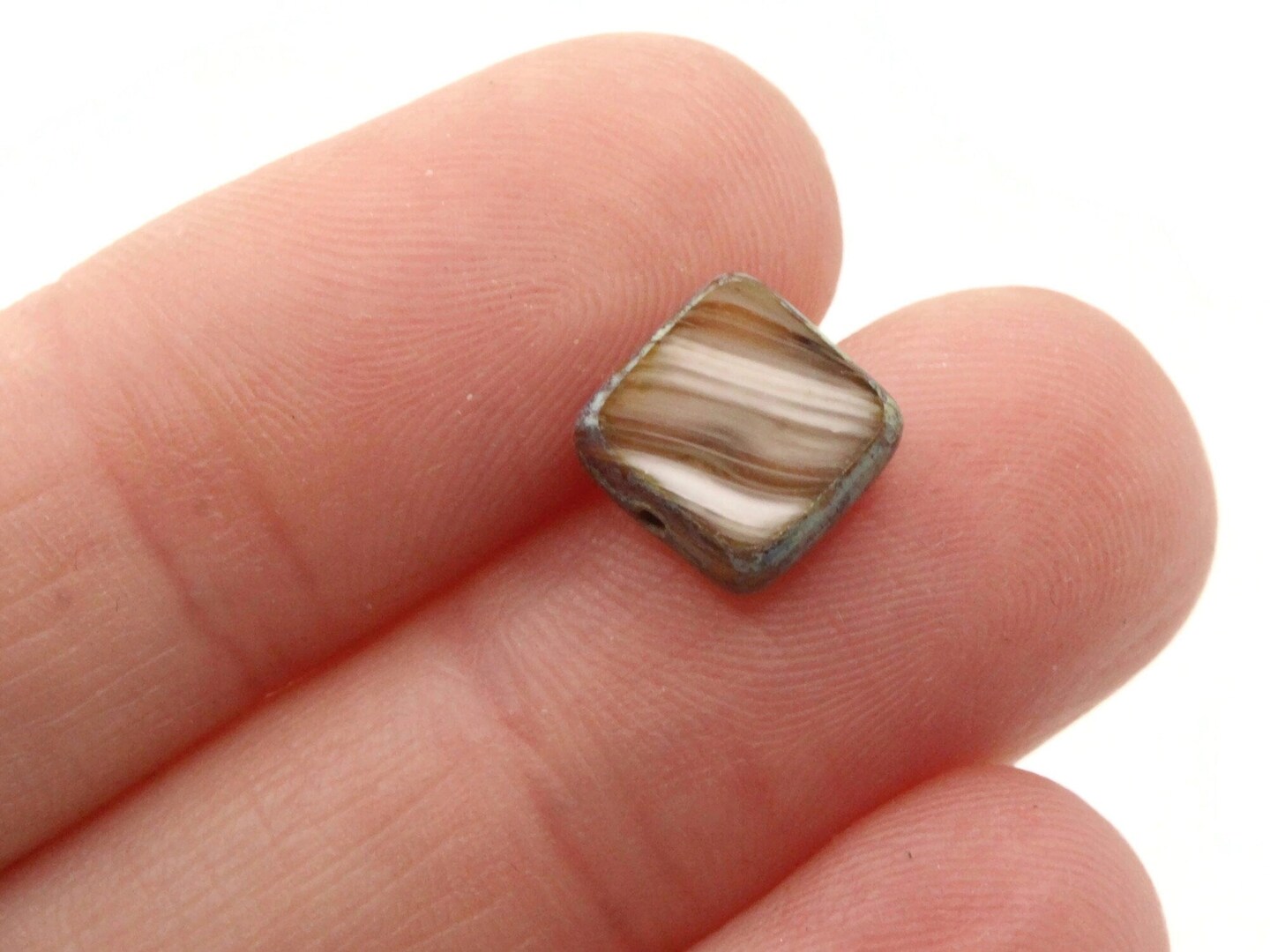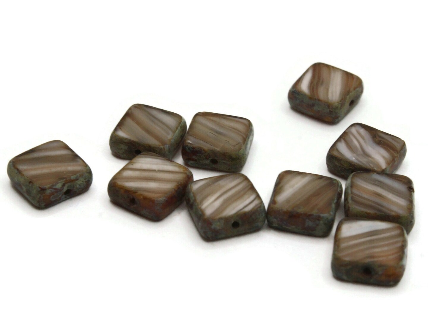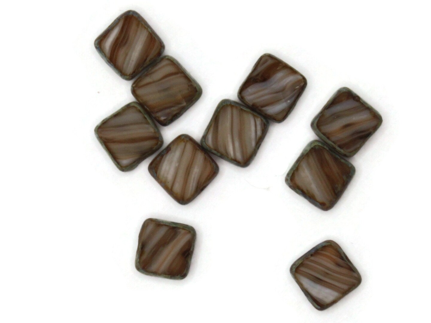 10 9mm Brown Striped Square Glass Beads
