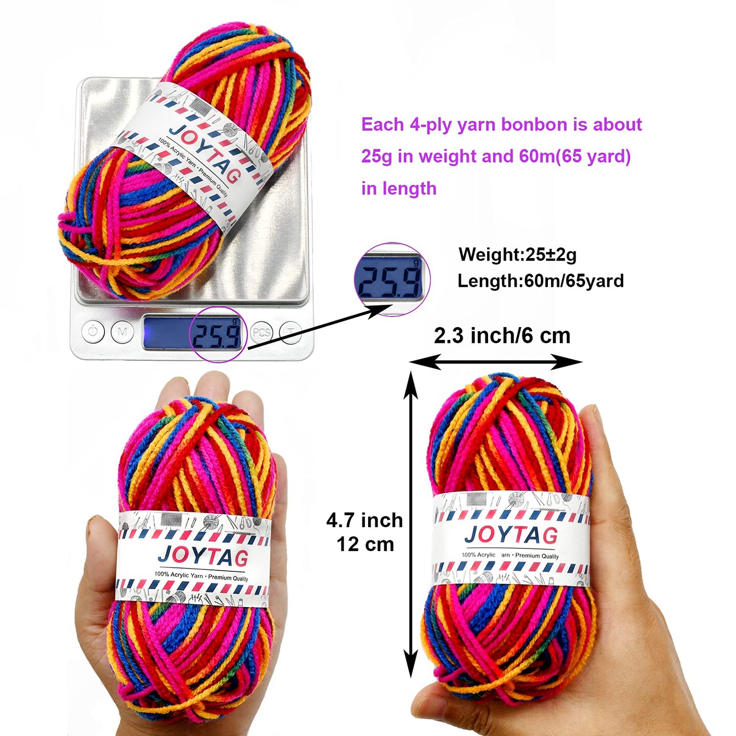 10 Acrylic Yarn Skeins,Multicolor Crochet Craft for Crocheting and Knitting,with Hooks Knitting Needles Stitch Markers,Crochet Starter Kit Beginners(650 Yard/250g)