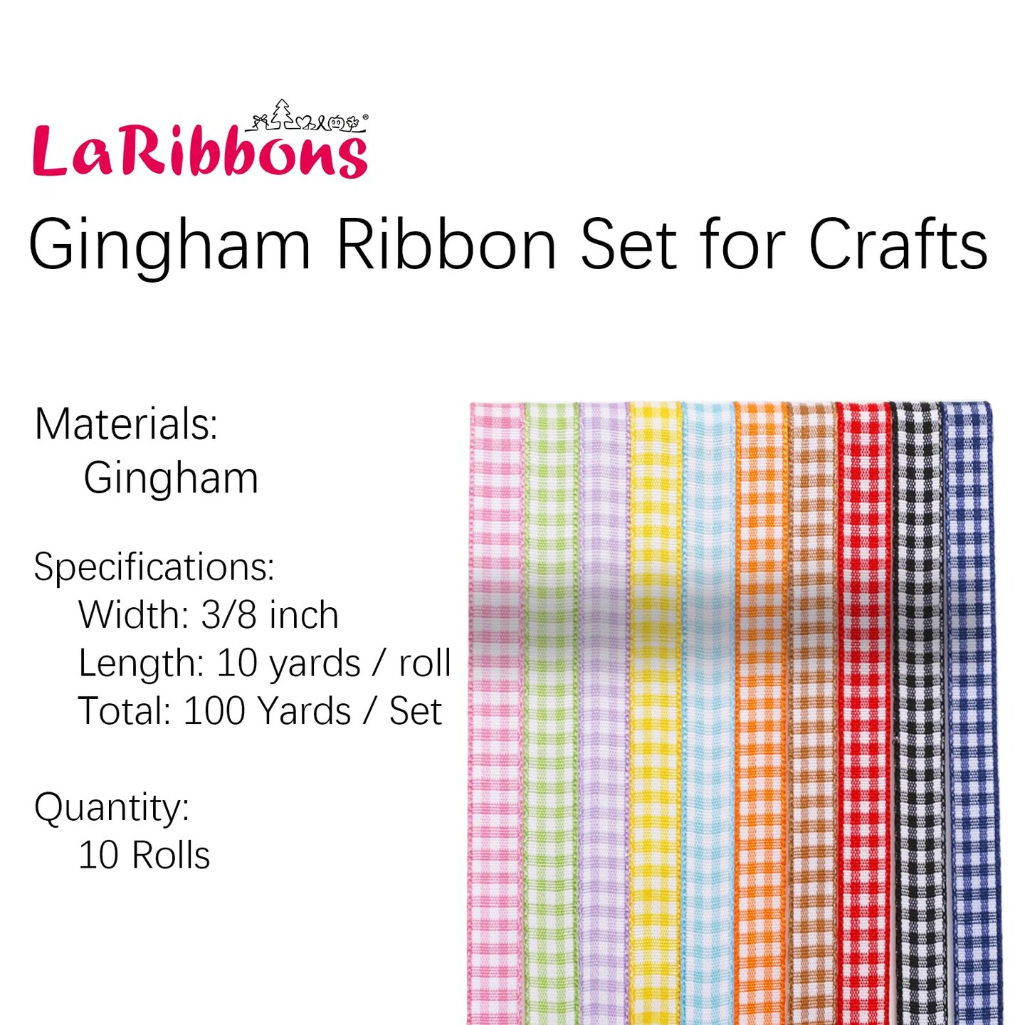 10 Color 100 Yards Gingham Ribbon Variety Pack, 3/8" X 10 Yards/Roll Assorted Spring Easter Plaid Ribbon for Crafts, Gift Wrapping, Hair Bows, Birthday, Babyshower Decoration